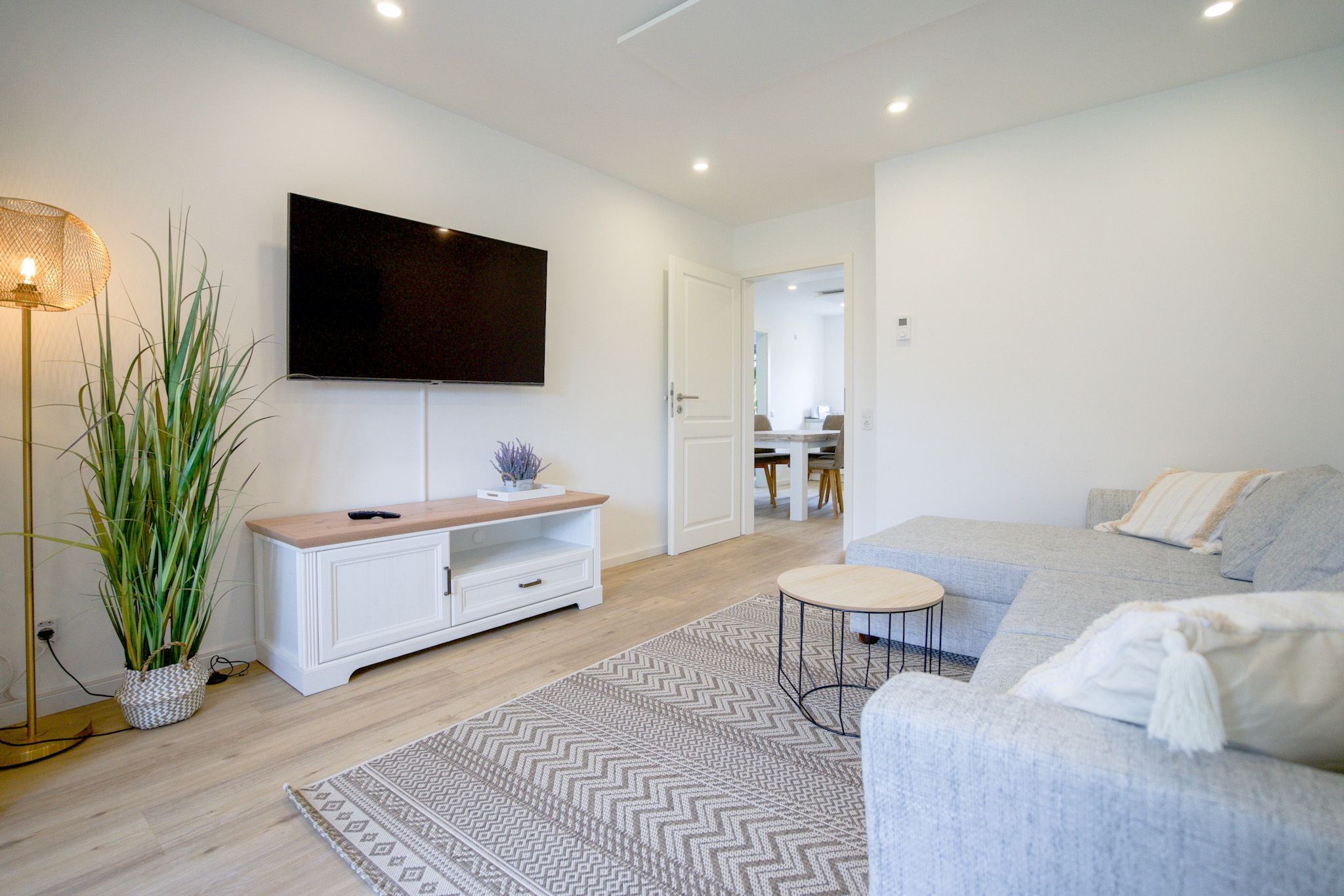 Im gemütlichen Wohnzimmer sorgt ein Flachbild-TV (SAT) für Ihre Unterhaltung.