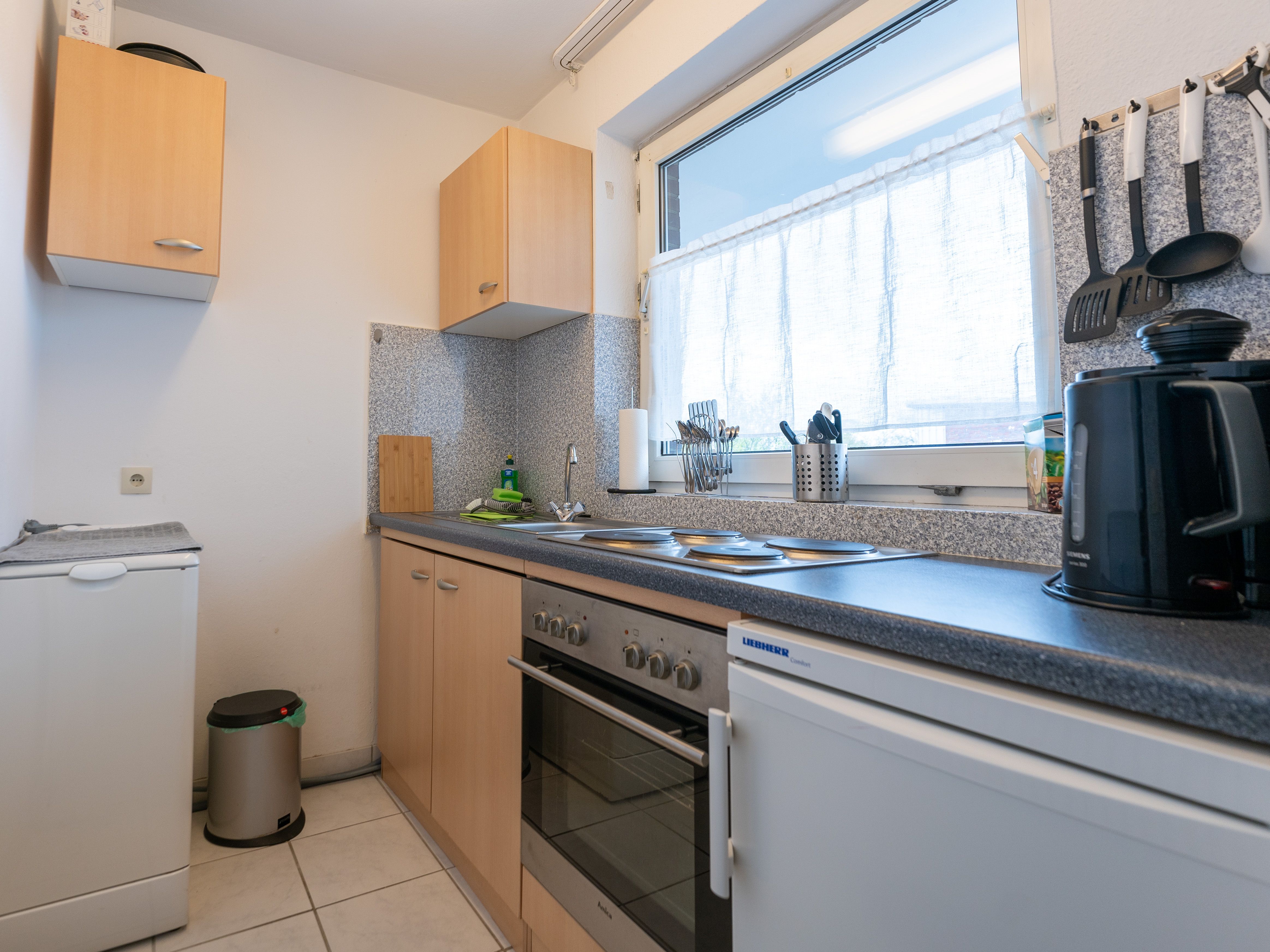 Gemütliches, geschmackvolles 1-Zimmer-Apartment mit Süd-Balkon und voll ausgestatteter Einbauküche, Duschbad, WLAN und Waschmaschine.