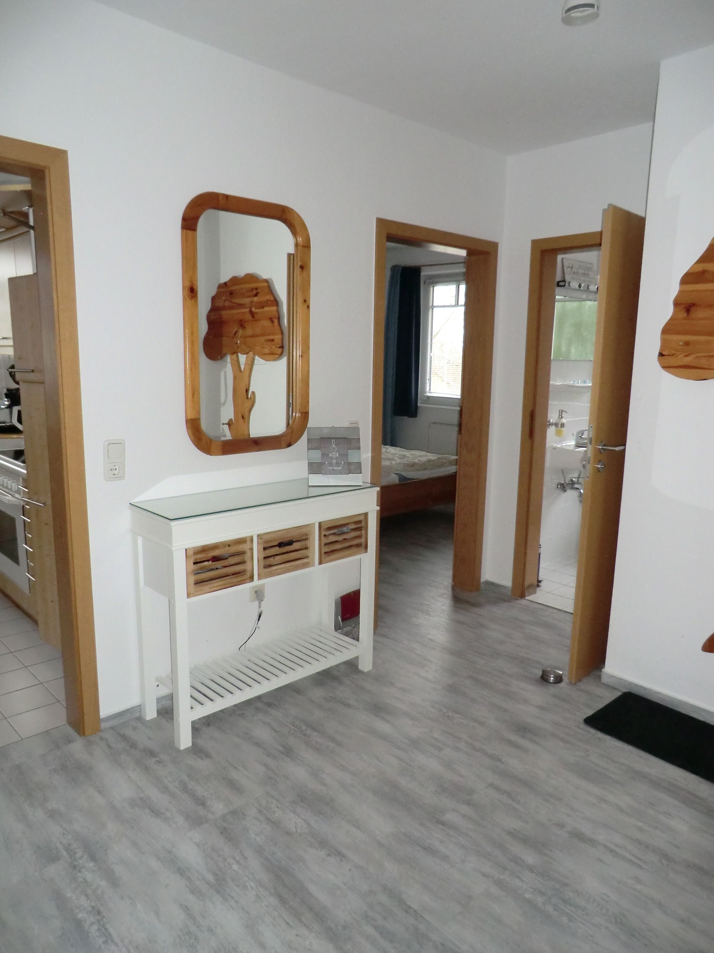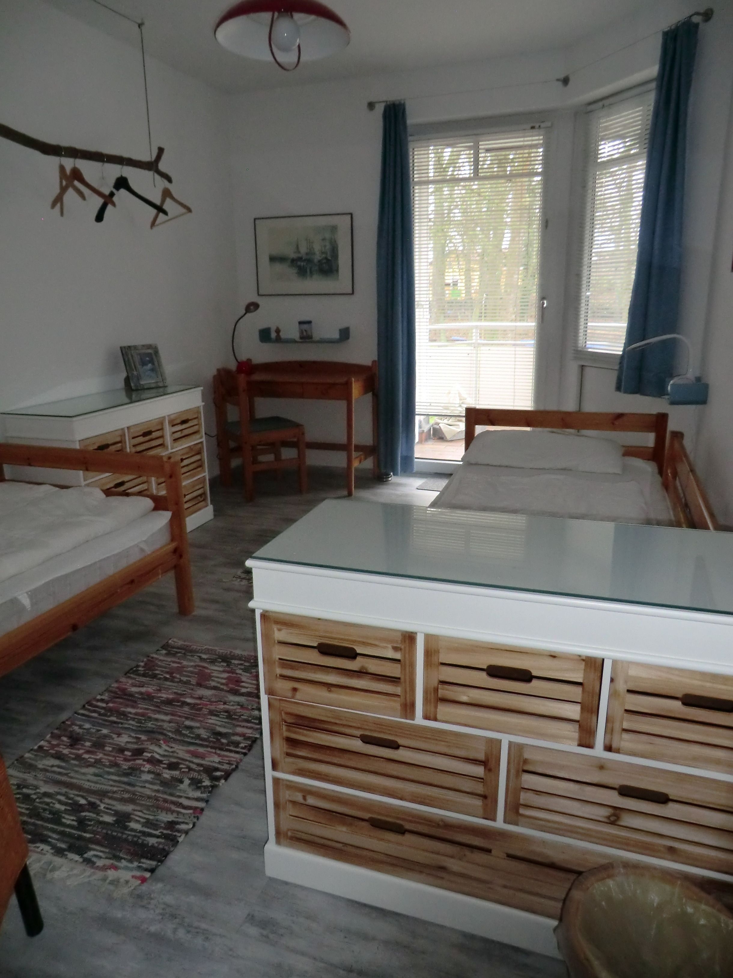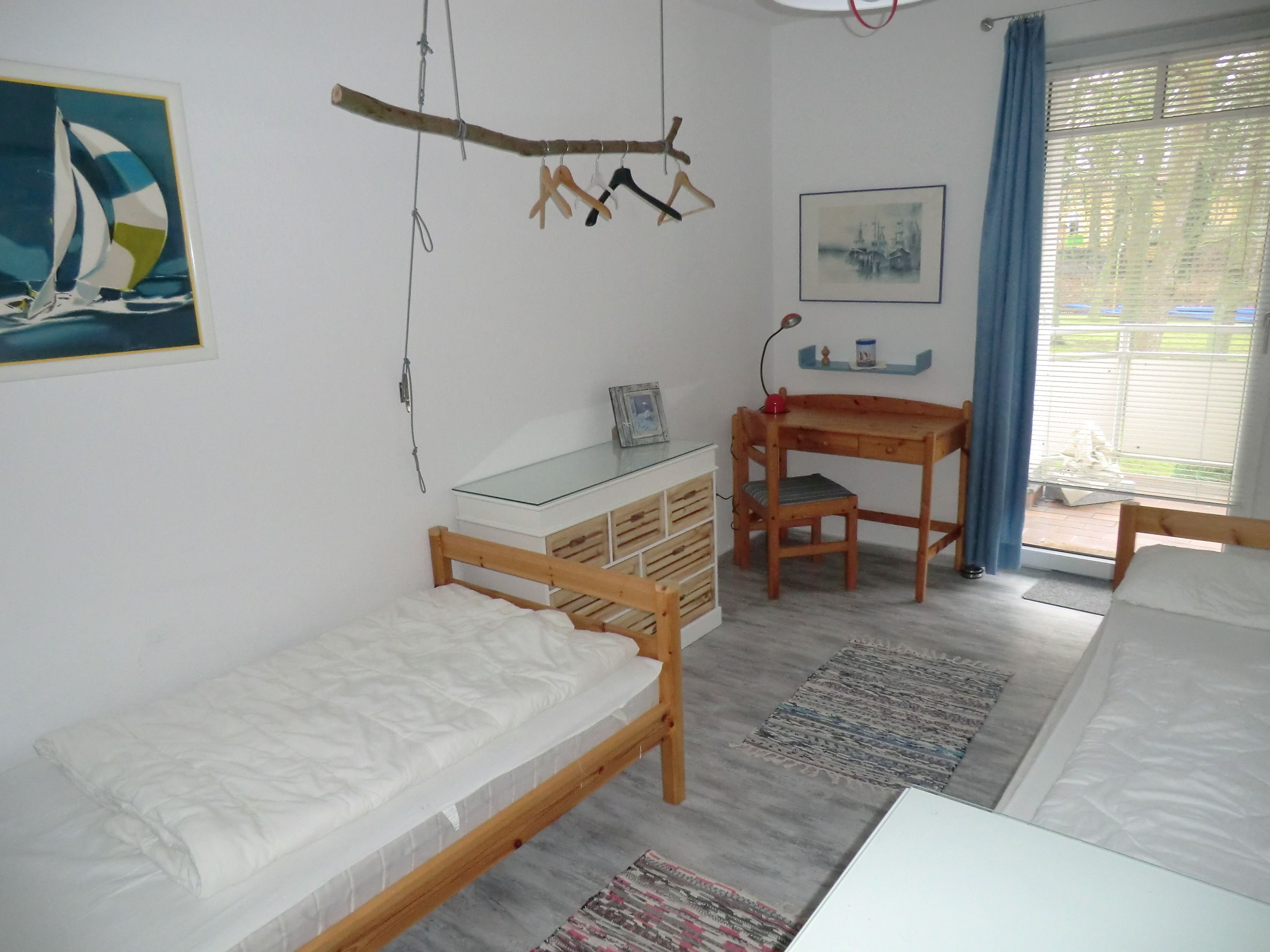 Die Fewo hat 2 Schlafräume( 1 Sr - 1 Doppelbett ( Boxspringbett), 2 Sr - 2 Einzelbetten) sowie ein Bad mit Dusche. W-LAN.