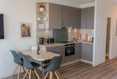 Die Wohnung liegt vollständig im 2. Obergeschoss und unterteilt sich in einen großzügigen Wohn- und Essbereich mit offener Küche, ein Schlafzimmer mit Doppelbett und ein Duschbad. Über den Wohnbereich gelangen Sie direkt auf den eigenen Balkon mit traumhaft schönem Meerblick.