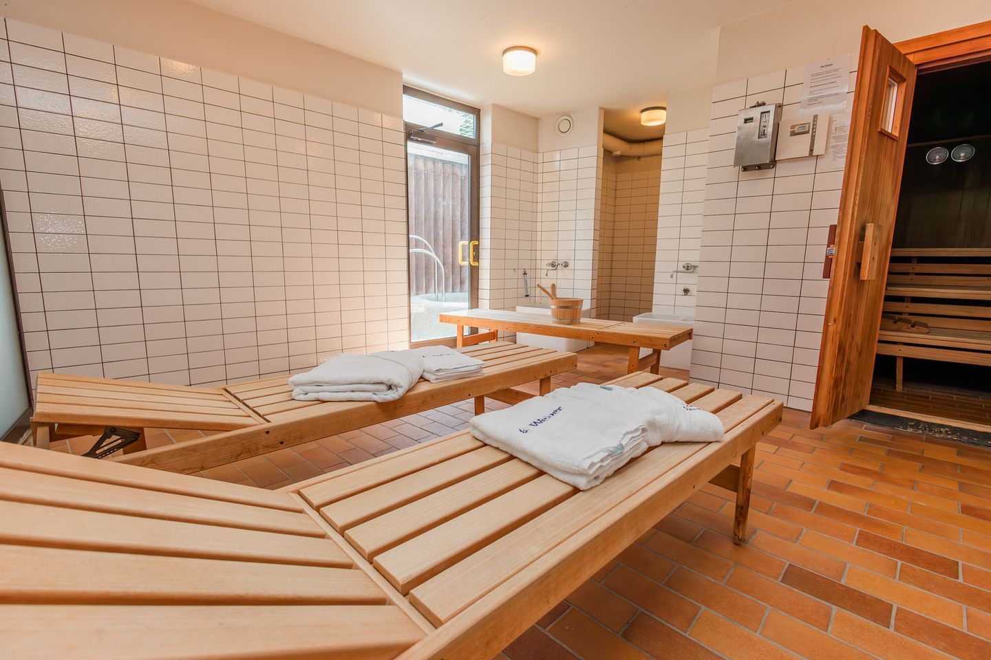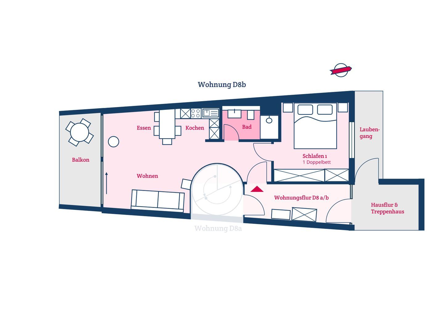 Die Gäste der Wohnungen D8a und D8b teilen sich einen gemeinsamen Hausflur. Zu den Gemeinschaftsbereichen zählen das Schwimmbad und die Sauna im Souterrain - ein echtes Highlight!