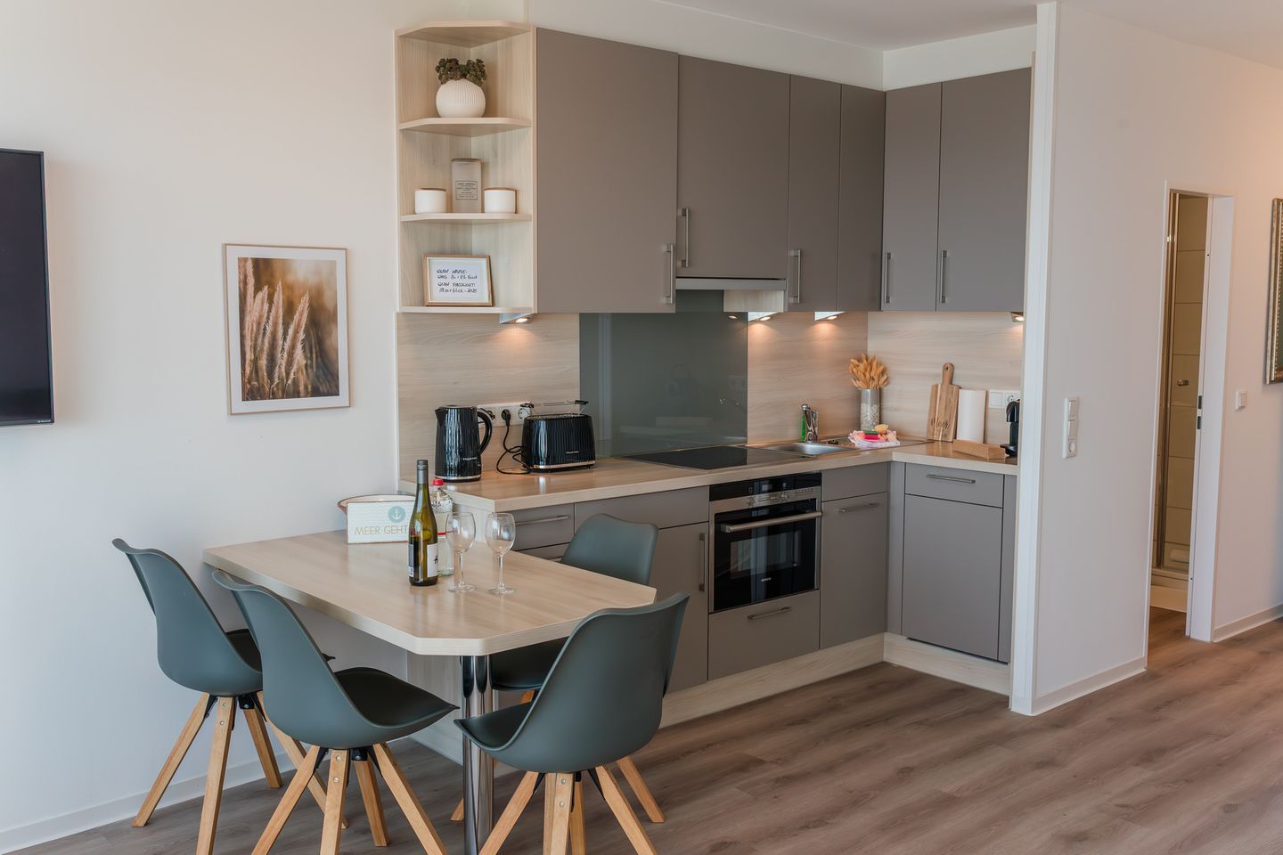 Die Ferienwohnung D8b im Haus Bi de Wyk, die im Jahr 2025 umfangreich renoviert wurde, verfügt über 1 Schlafzimmer und 1 Bad und bietet somit komfortabel Platz für bis zu 4 Personen zuzüglich einer Kleinkinderaufbettung. Auch bis zu 2 Hunde sind herzlich willkommen.