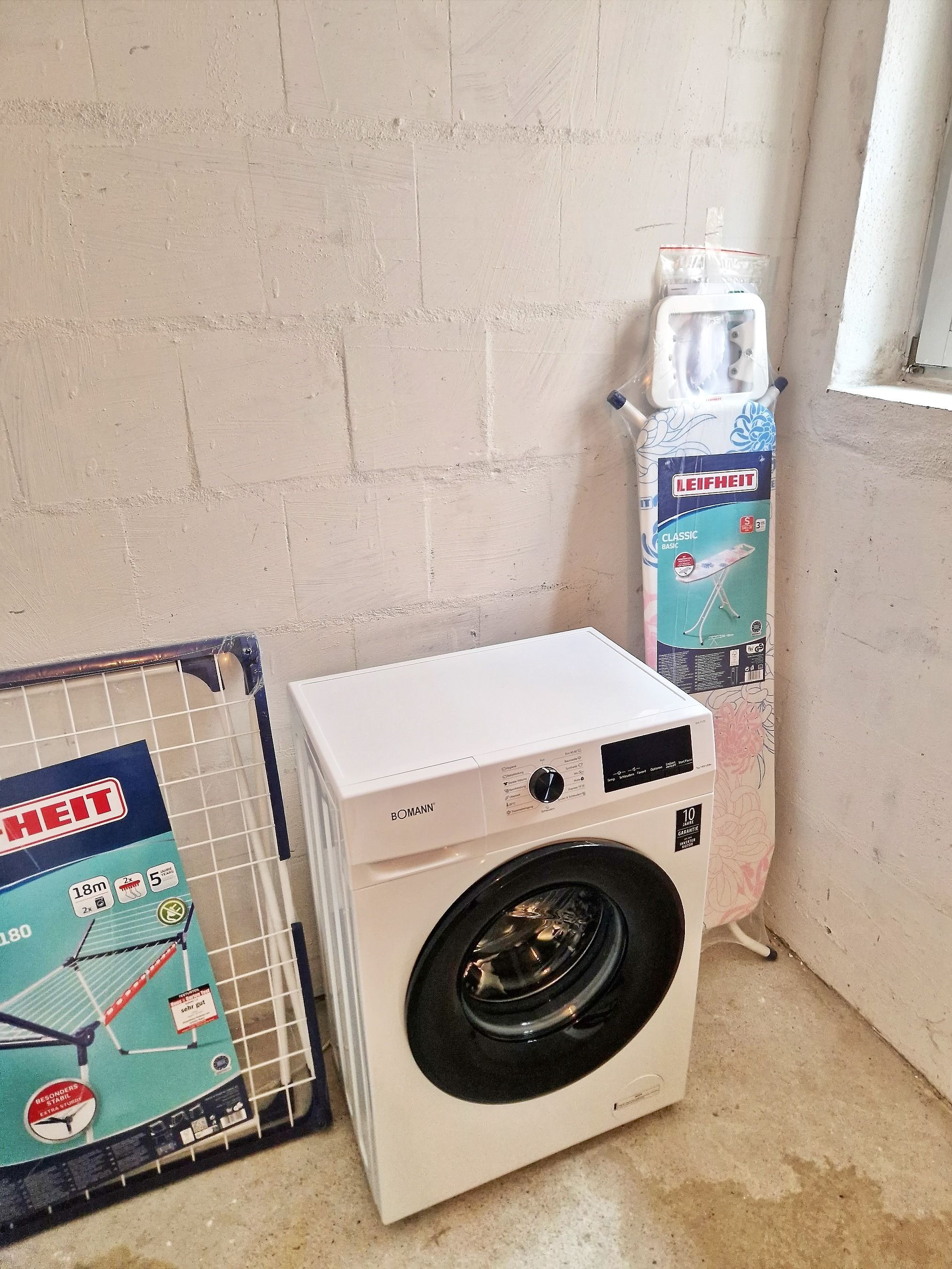 • Waschmaschine und Wäscheständer im Waschmaschinenraum