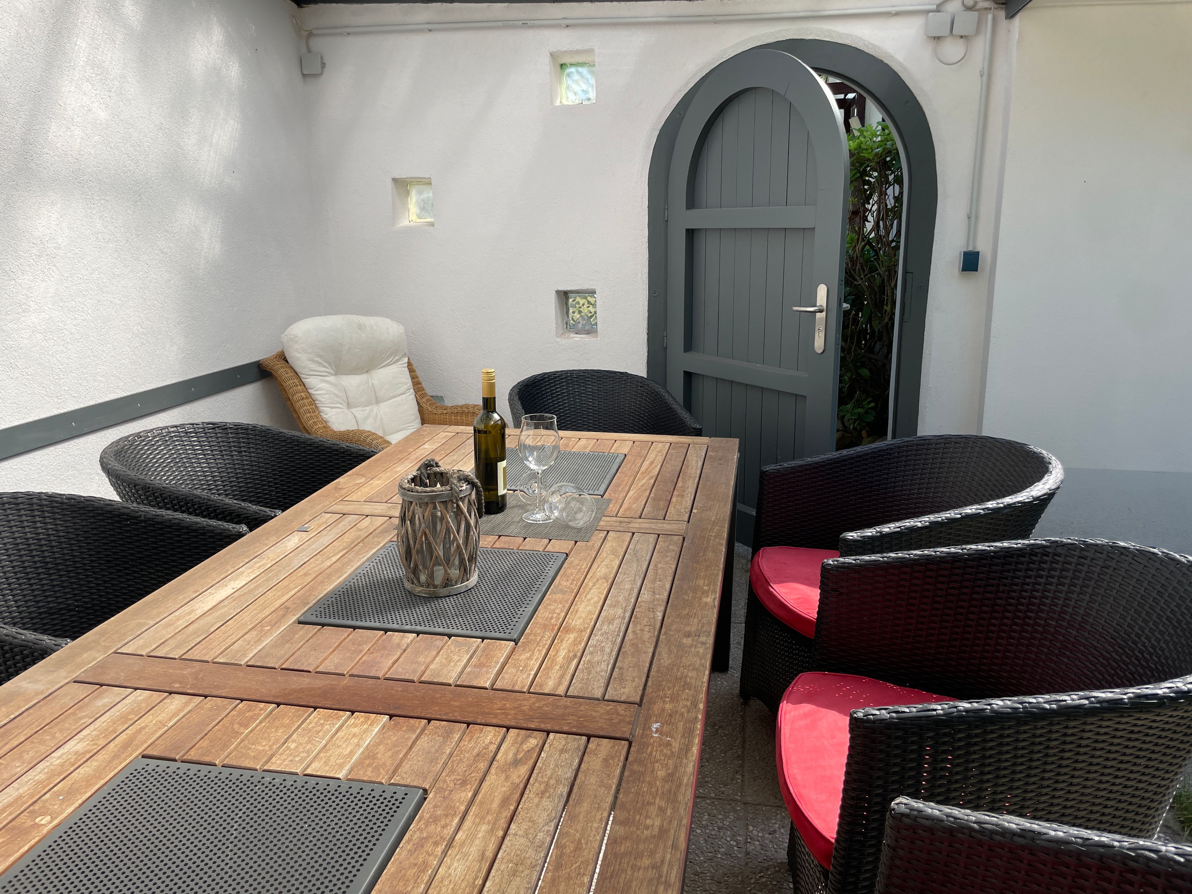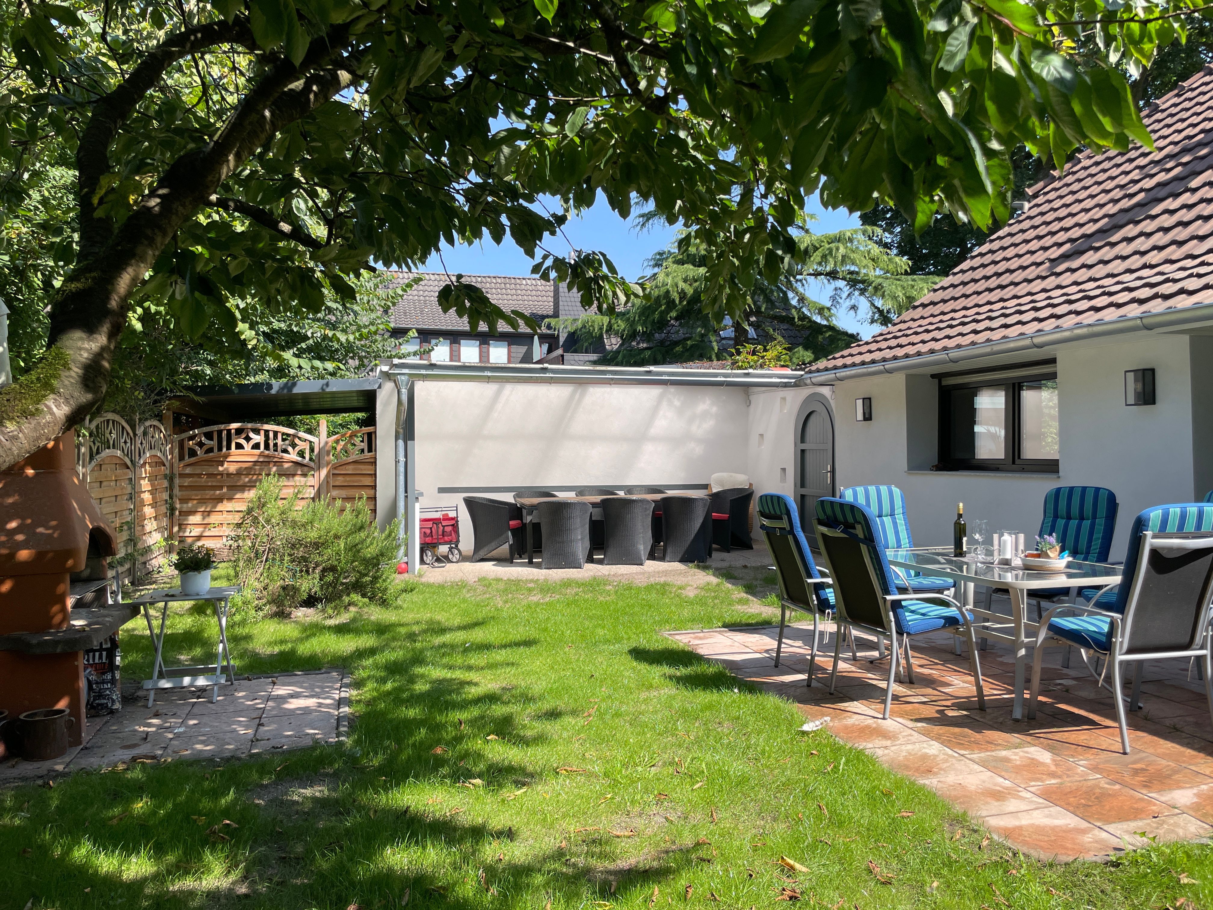 200m2 großer Garten mit 2 Terrassen - eine überdacht in Süd-/Westlage