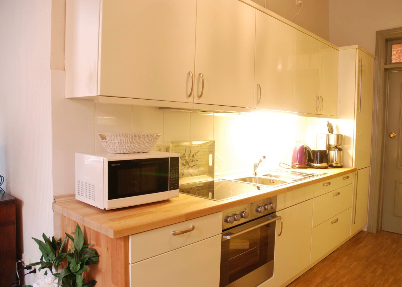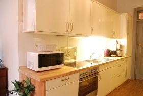 Es gibt dort fünf Ferienwohnungen auf drei Etagen, die im antiken und modernen Stil gemischt ausgestattet sind.