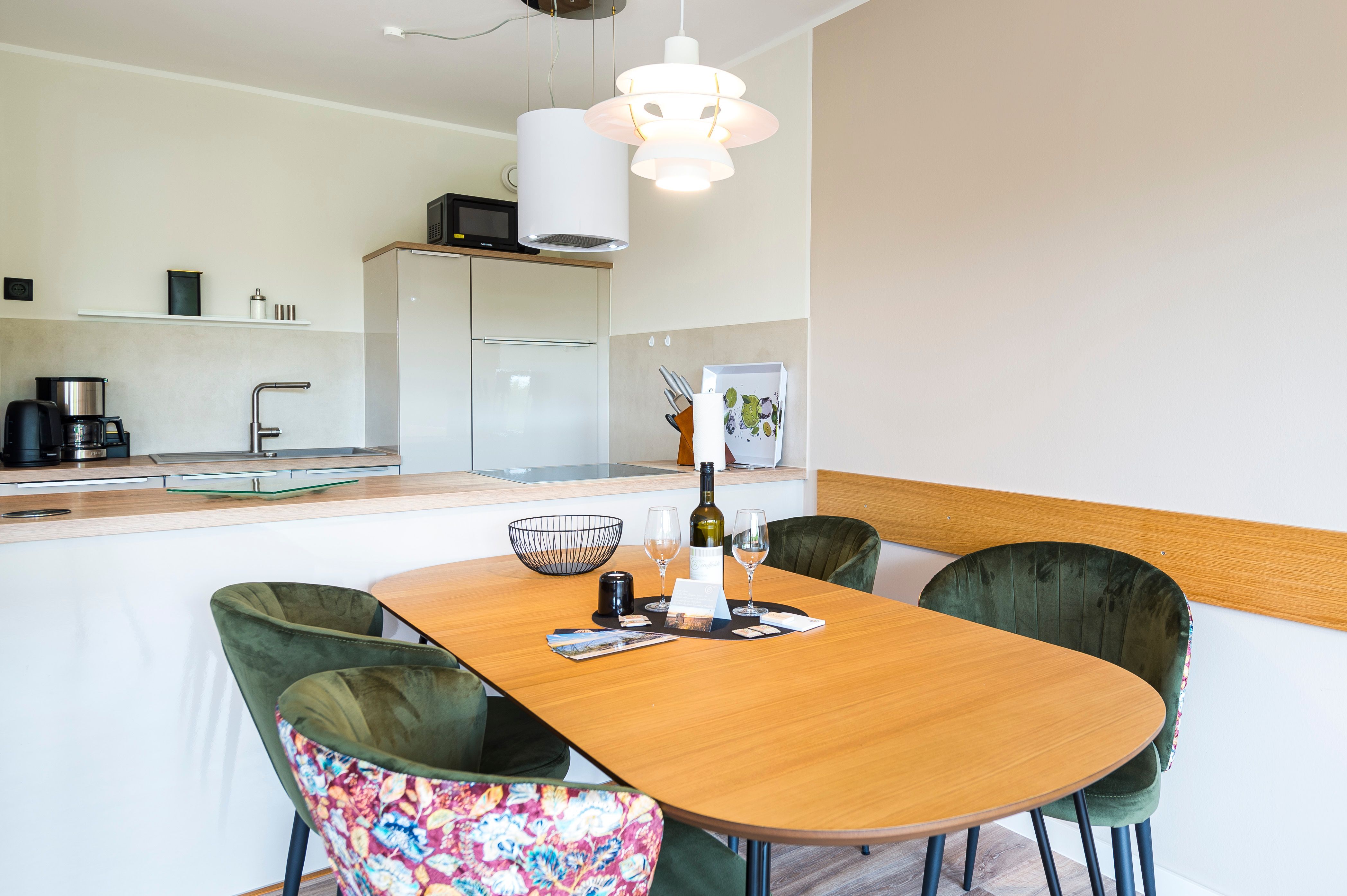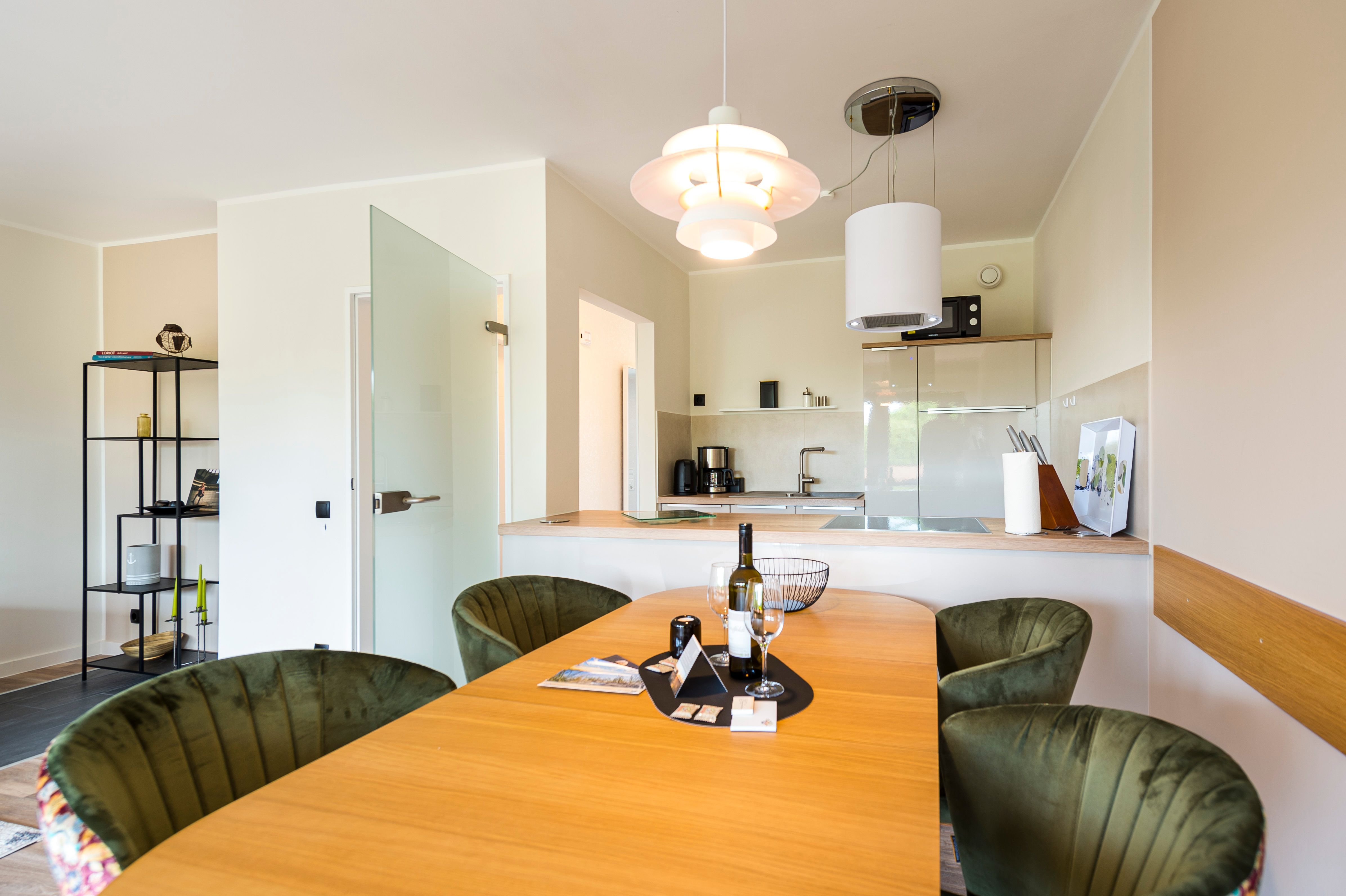 Ferienwohnung Düne 3 ist 2024 renoviert worden und liegt ebenerdig im Kortenkamp in Rettin. Es sind von dort nur 250 m Entfernung bis zum wunderschönen Rettiner Strand. Im lichtdurchflutetem Wohnzimmer und der offenen Küche lädt ein großes Sofa zum Entspannen ein. Die Wohnung verfügt über allerhand Annehmlichkeiten. Der 55 Zoll-TV ist mit Amazon-Stick ausgestattet, es gibt ein Soundsystem mit JBL Soundbar und ein 100 MB-WLAN. An heißen Tagen kann im Wohnzimmer eine Klimaanlage für nötige Abkühlung sorgen und im Winter für ein nachhaltiges Heizen. Das Badezimmer mit bodengleicher Regendusche und Fußbodenheizung wird Sie begeistern. Die Terrasse ist geräumig und mit elektrischer Markise ausgestattet. Zum leckeren Grillen kann ein Gasgrill genutzt werden - ein Eckplatz der Terrasse ist hierfür reserviert. Eine Waschmaschine und ein Trockner stehen im gemeinschaftlichen Wäschekeller (Kortenkamp 1, UG) gegen Gebühr zur Verfügung. Ein kostenloser PKW-Parkplatz steht Ihnen direkt vor der Tür zur Verfügung. In nur 350 m Entfernung kann eine öffentliche Elektrostation genutzt werden. Fahrräder können am Fahrrad-Ständer außen angeschlossen werden oder im Eigentümerkellervorraum, den Sie über 2 Treppen im Nachbarhaus (Nr. 1) erreichen. Kinder sind in der Wohnung besonders willkommen. Der nahe gelegene Hof Bauer Martin in Bliesdorf ist nur 4 km und bietet auch für Tagesgäste eine tolle Vielfalt für Kinder und ihre Begleitpersonen. Für kleinere Einkäufe kann der der Mini-Supermarkt in 250 m Entfernung zwischen Mai und September genutzt werden und es gibt sogar frische Brötchen.