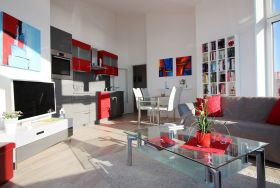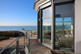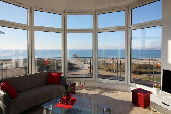 Hier wohnt man in erster Reihe am ganztägig sonnigen Südstrand von Pelzerhaken und hat von der 36qm großen Dachterrasse einen wunderbaren Blick über die gesamte Lübecker Bucht. Die Wohnung verfügt über insgesamt 3 Zimmer, davon 2 Schlafzimmer, eines davon mit einem gemütlichen Doppelbett und ein zweites mit Etagenbett. 2 bis 4 Personen können hier bequem ihren Urlaub verbringen. Der angegebene Preis bezieht sich immer auf 2 Erwachsene und 2 Kinder, extra Personen können ggf. auf Anfrage dazu gebucht werden. Der Wohnbereich begeistert durch die bis zu 5 Meter hohe Decke und lässt keine Wünsche offen. Ausgestattet mit einer gemütlichen Ledergarnitur, Flatscreen-TV, Radio und einer einladenden Essecke kann man hier herrlich entspannen. Die hochwertige Küchenzeile ist mit einem Geschirrspüler und Backofen ausgestattet. Das Badezimmer ist modern und großzügig gestaltet und verfügt über eine bodenebene Dusche, Handtuch- und Haartrockner. Im Keller des Hauses stehen den Gästen zwei Abstellräume zur Verfügung. Hier besteht die Möglichkeit, Ausrüstungen z.B. für den Wassersport oder Fahrräder zu lagern, auf Wunsch gibt es auch einen separaten Raum zur Alleinnutzung. Ein zum Penthouse zugehöriger PKW-Parkplatz befindet sich auf dem Innenhof. Haustiere sind in dieser Wohnung nicht erwünscht und es handelt sich um eine Nichtraucherwohnung.