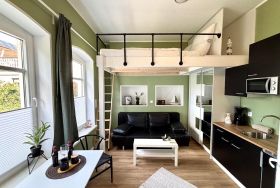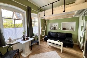 Verbringen Sie Ihren Urlaub in einem einzigartigen Tiny Apartment in Dahme, das durch einen kreativen und cleveren Grundriss überzeugt. Diese Wohnung zeigt, wie man mit minimalem Raum maximalen Komfort und Zufriedenheit erleben kann.
