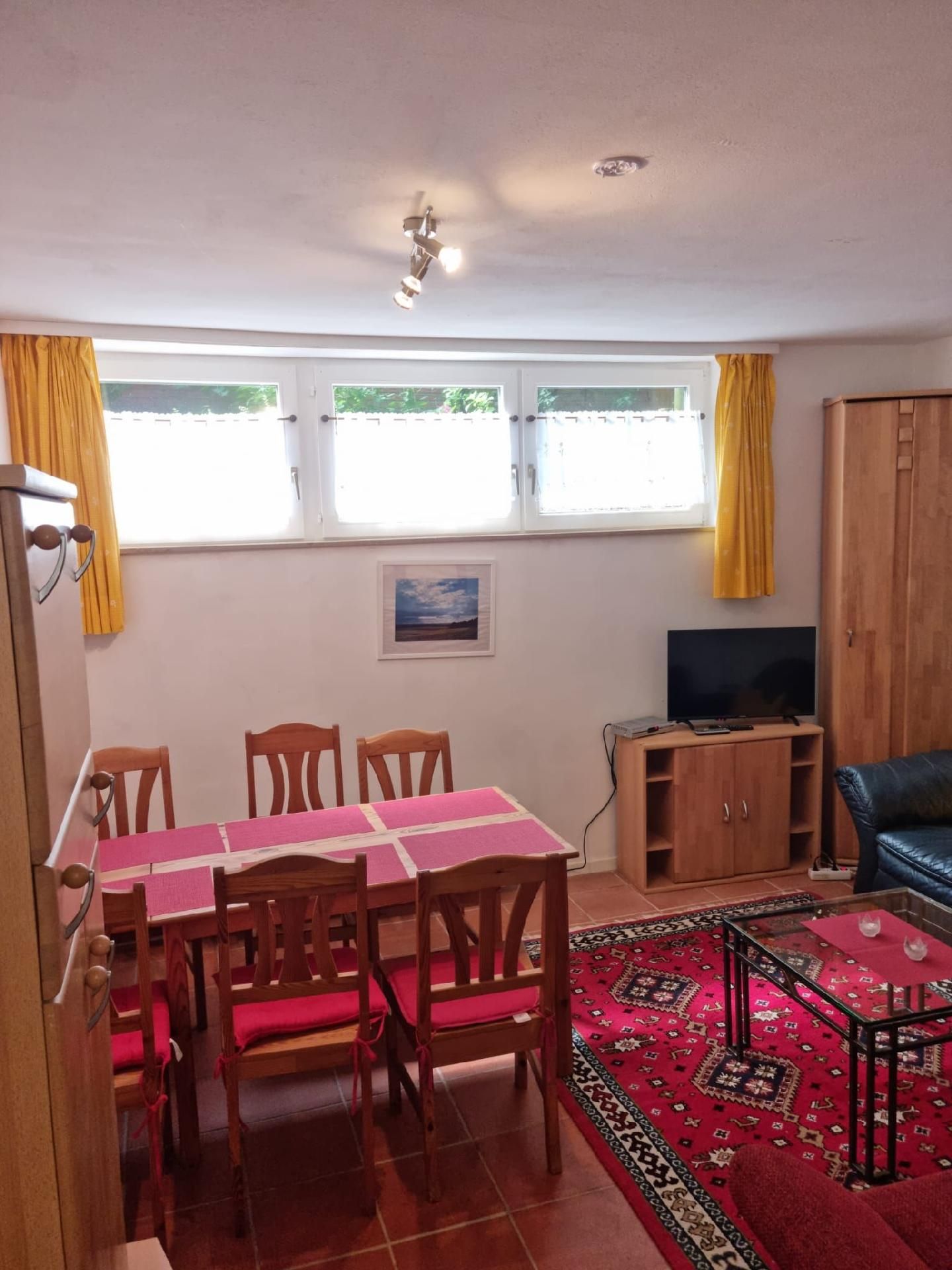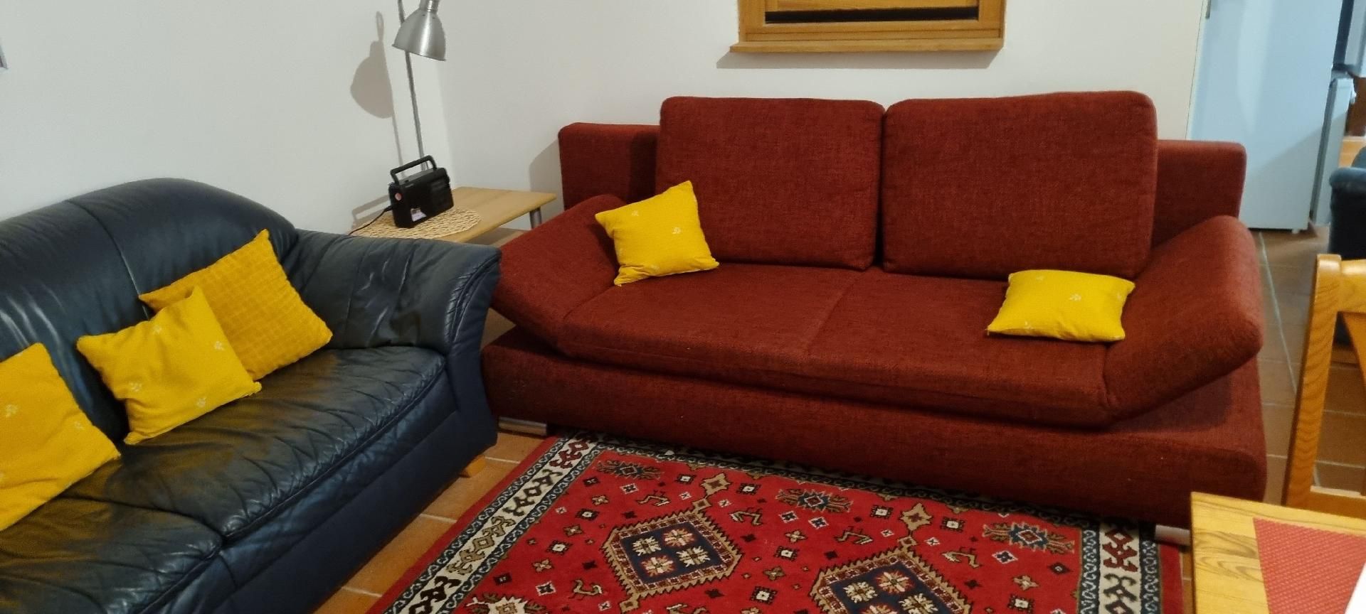 Wohnzimmer mit Doppelschlafcouch, großem Essplatz ,
