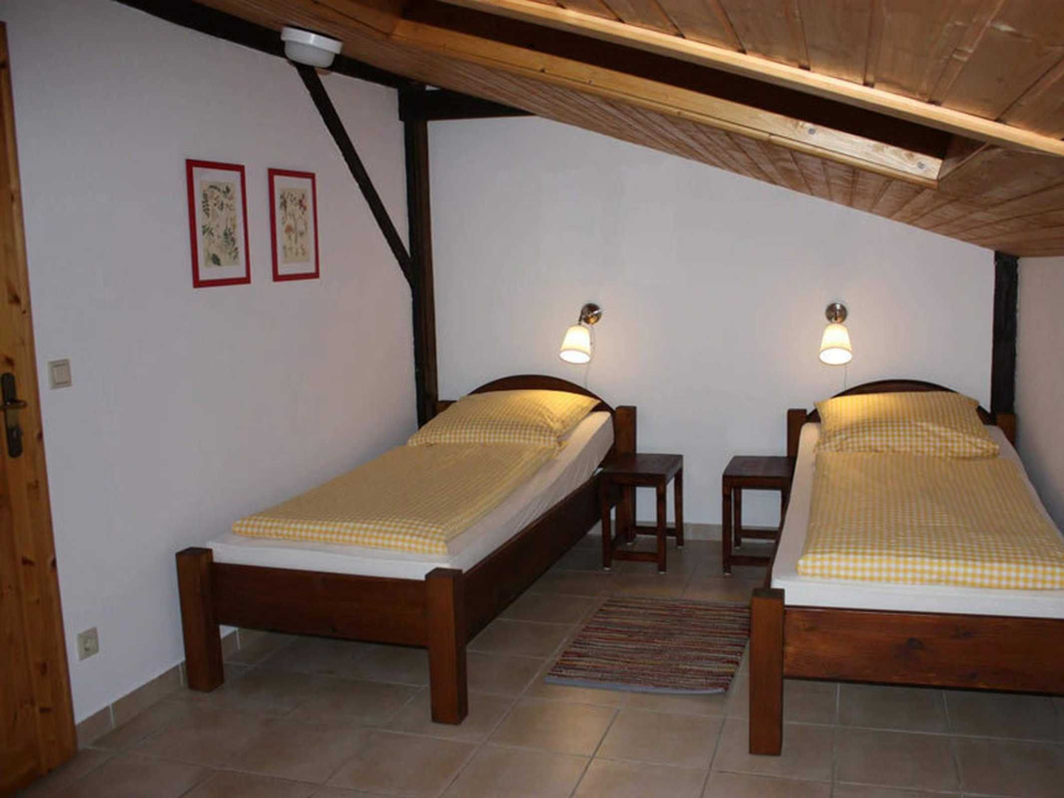 In zwei Schafzimmern befinden sich je zwei Betten, eine Aufbettung,  Kinderbett und Hochstuhl sind vorhanden. Das