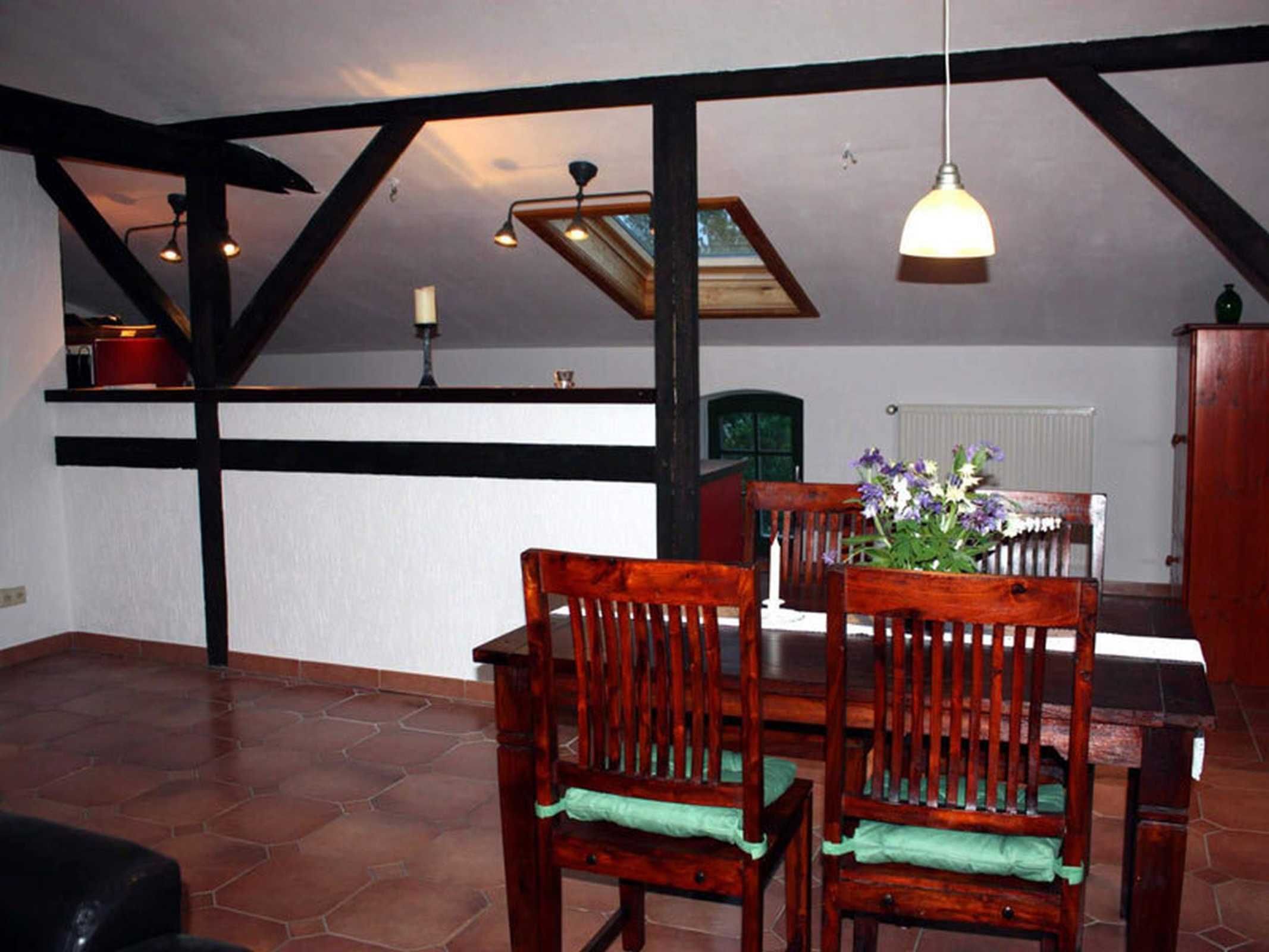 Urige Holzbalken, Dachschrägen, Holz- und Ledermöbel erzeugen Gemütlichkeit. Großzügig geschnitten mit gemütlichen Dachschrägen