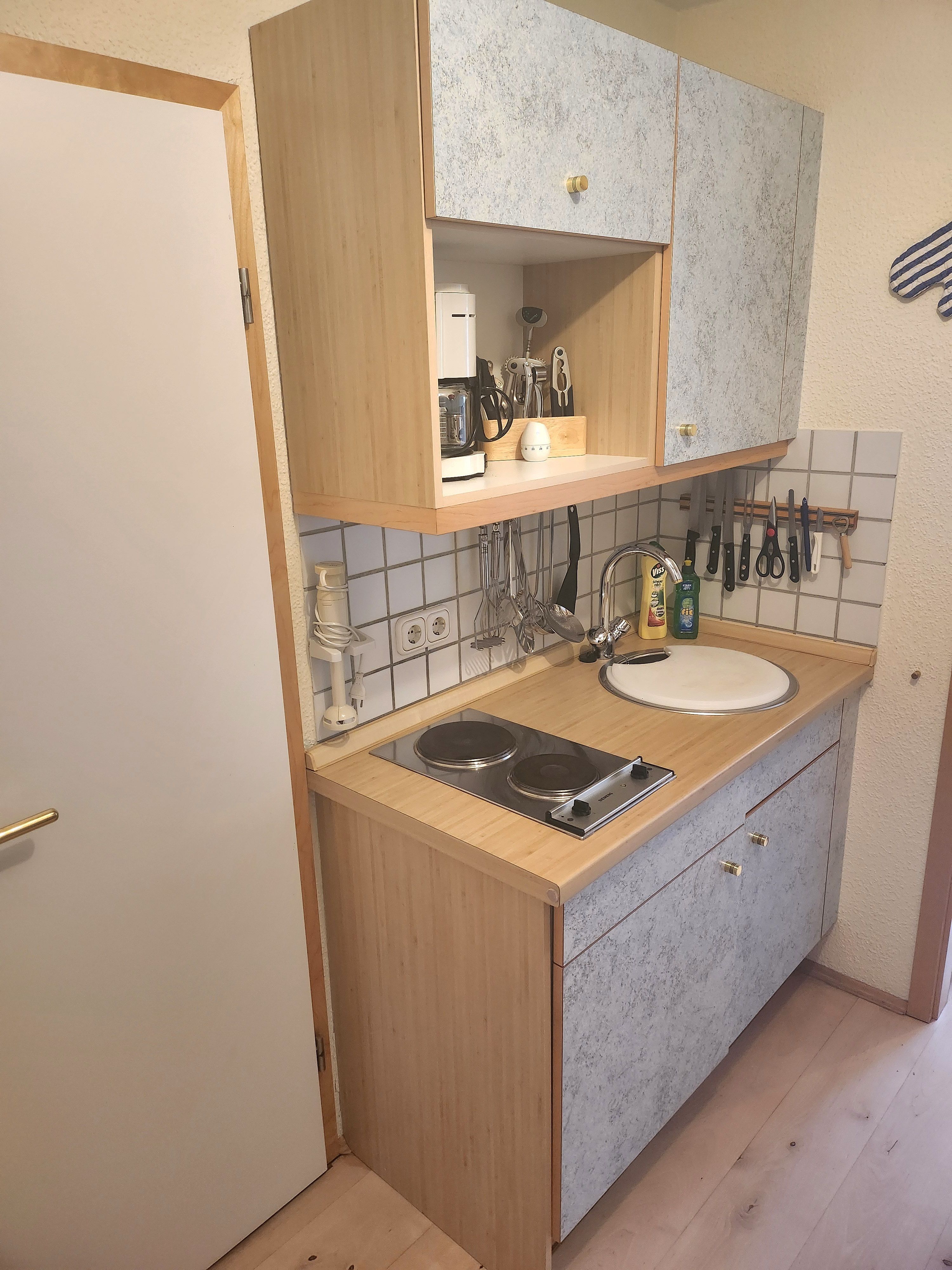 Eine kleine, aber funktionale Küchenzeile ist im Raum integriert ideal für die Zubereitung kleiner Mahlzeiten. Das Badezimmer verfügt über Dusche und WC und ist ebenfalls mit einer gemütlichen Dachschräge versehen.