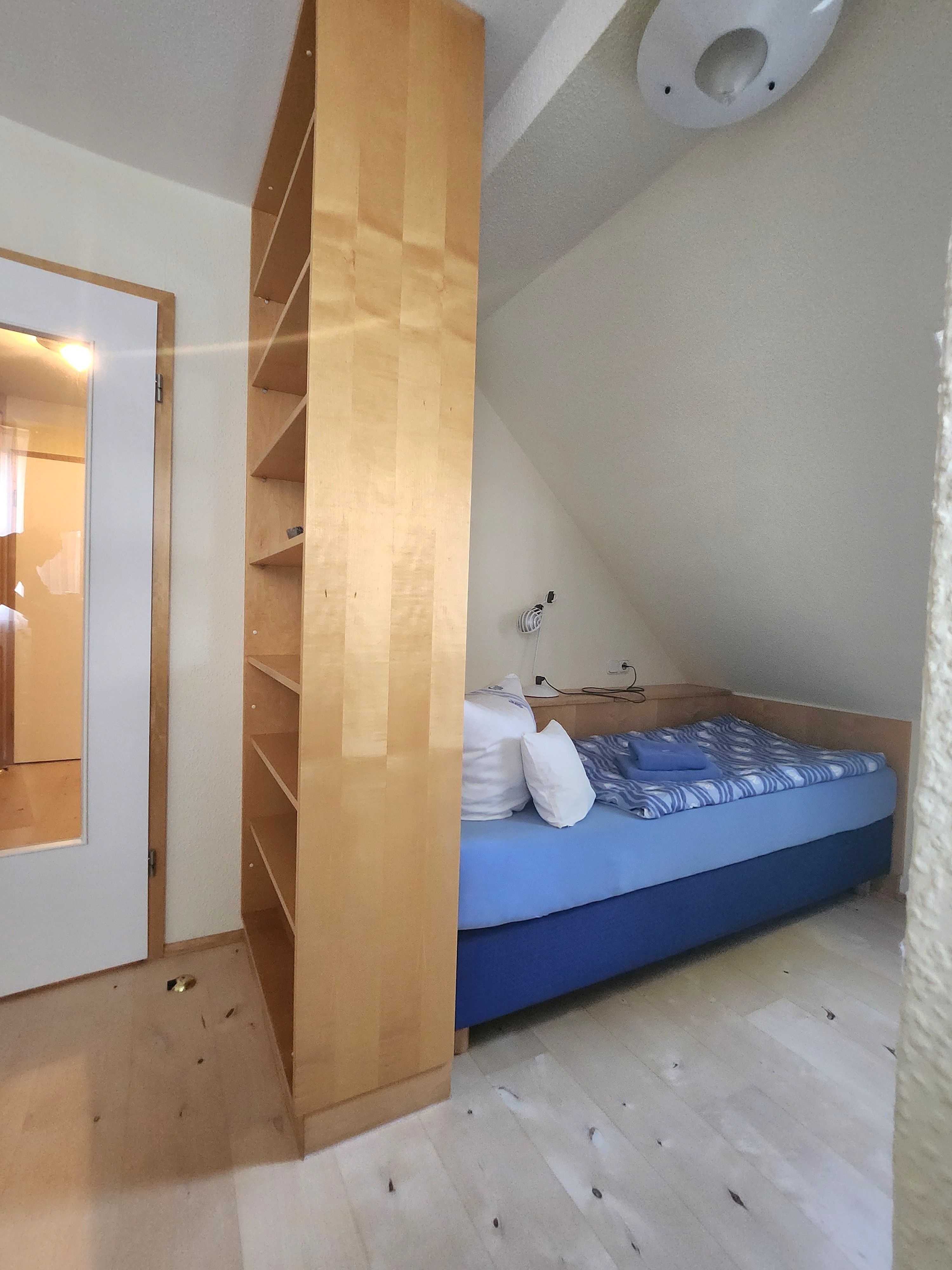 Das Apartment verfügt über getrennt stehende Betten und ist bewusst kompakter gestaltet ohne Balkon, aber mit viel Atmosphäre. Eine charmante Wahl für Gäste, die Wert auf eine ruhige und besondere Wohnsituation legen.