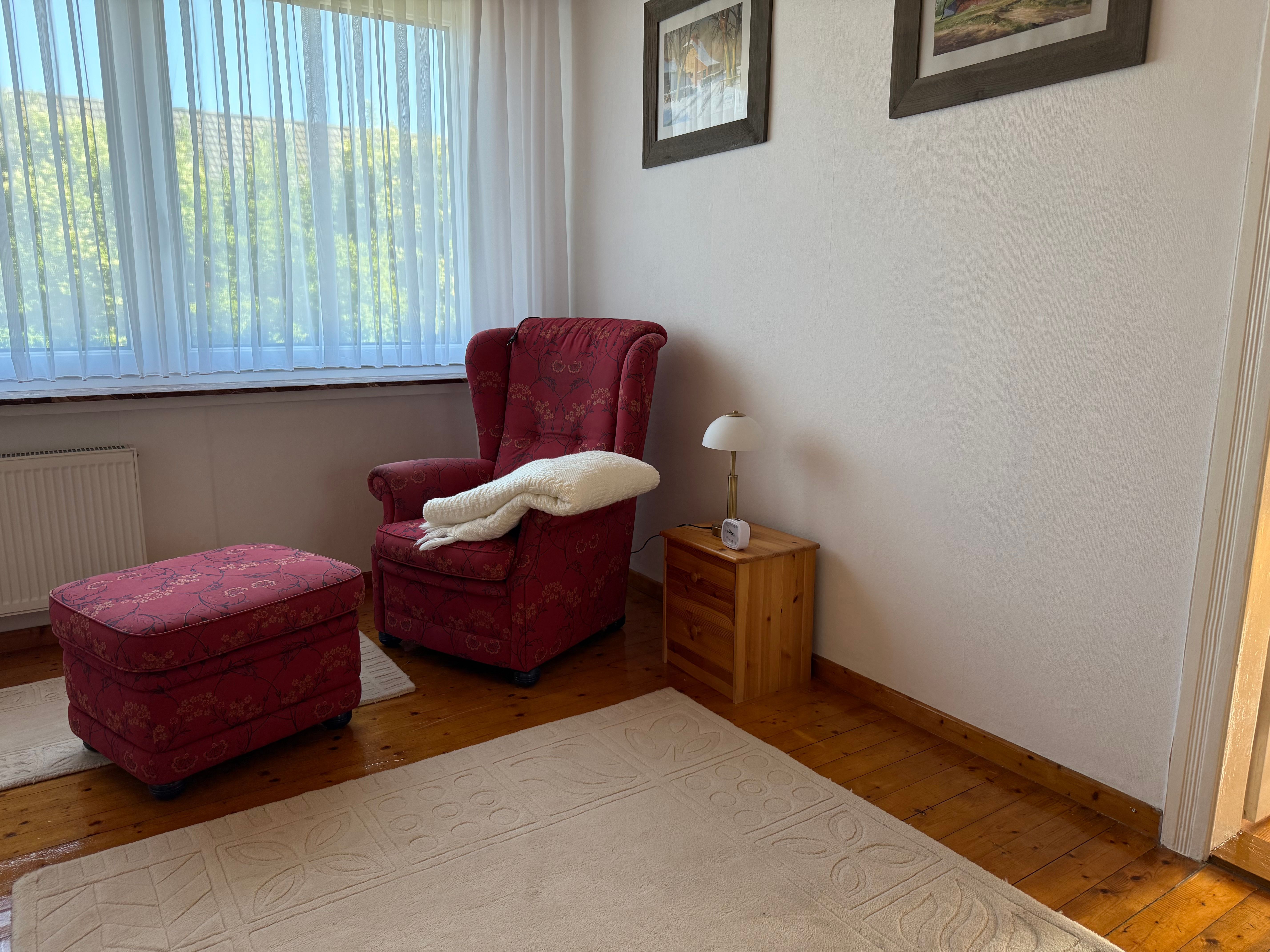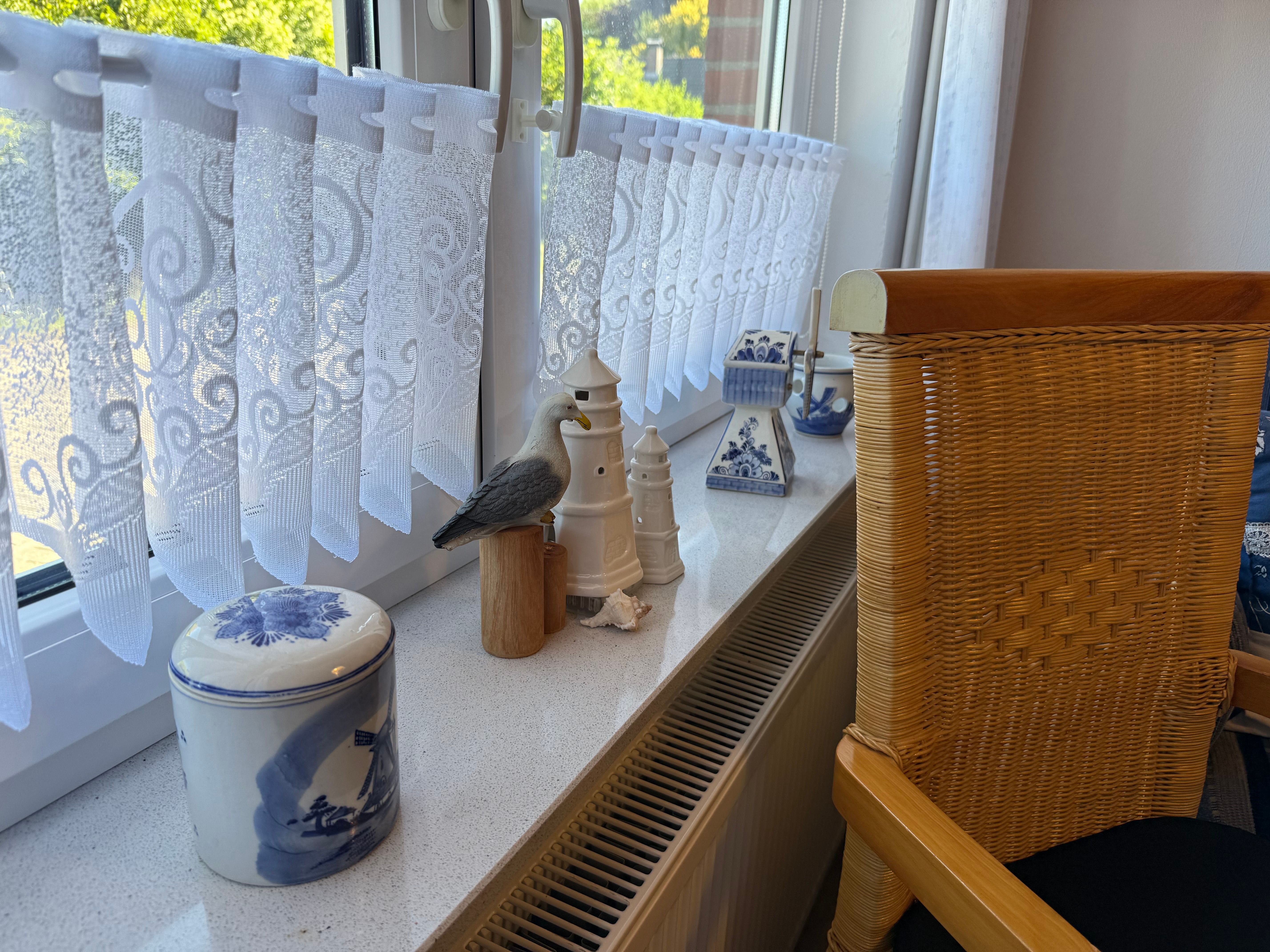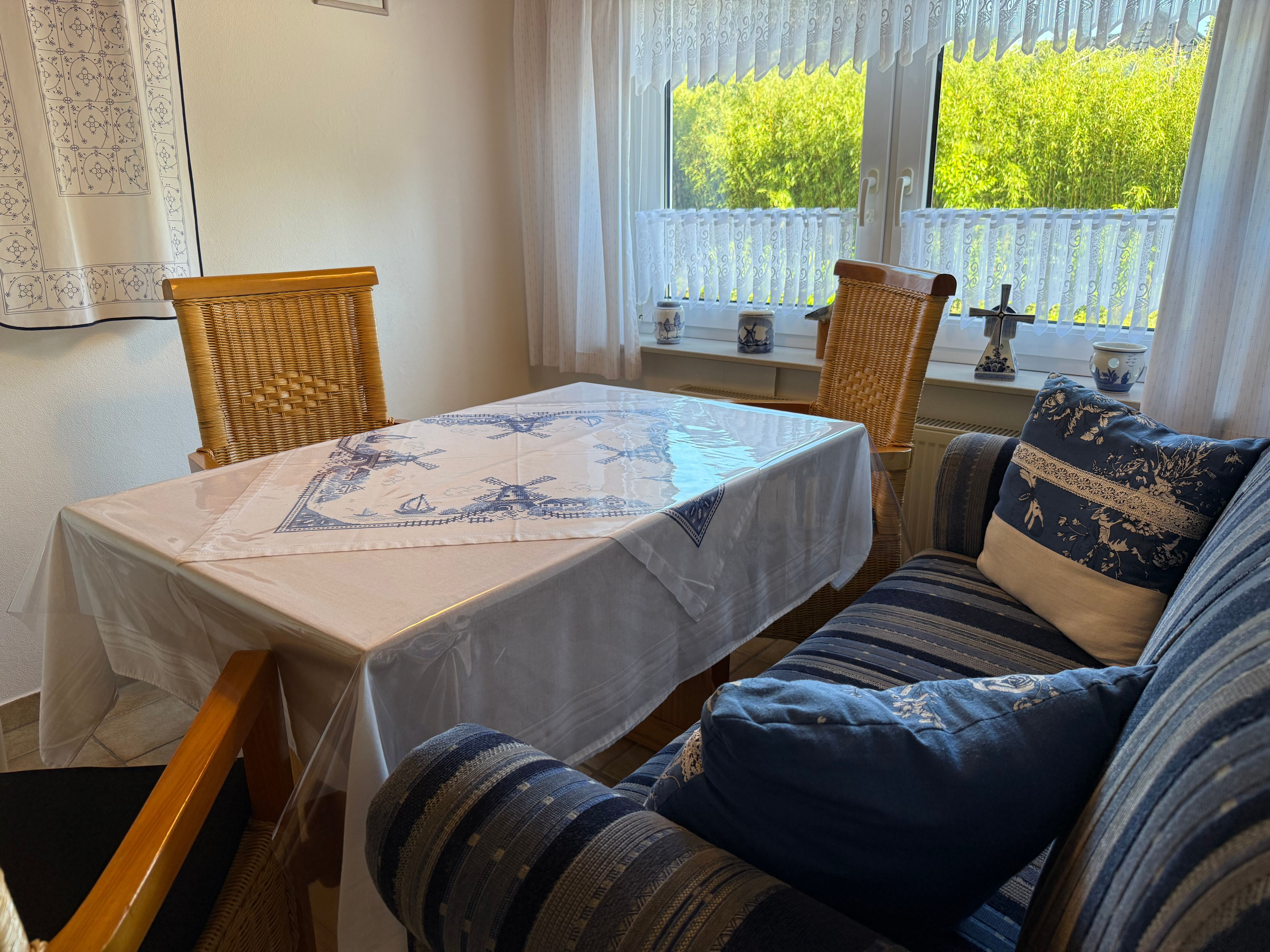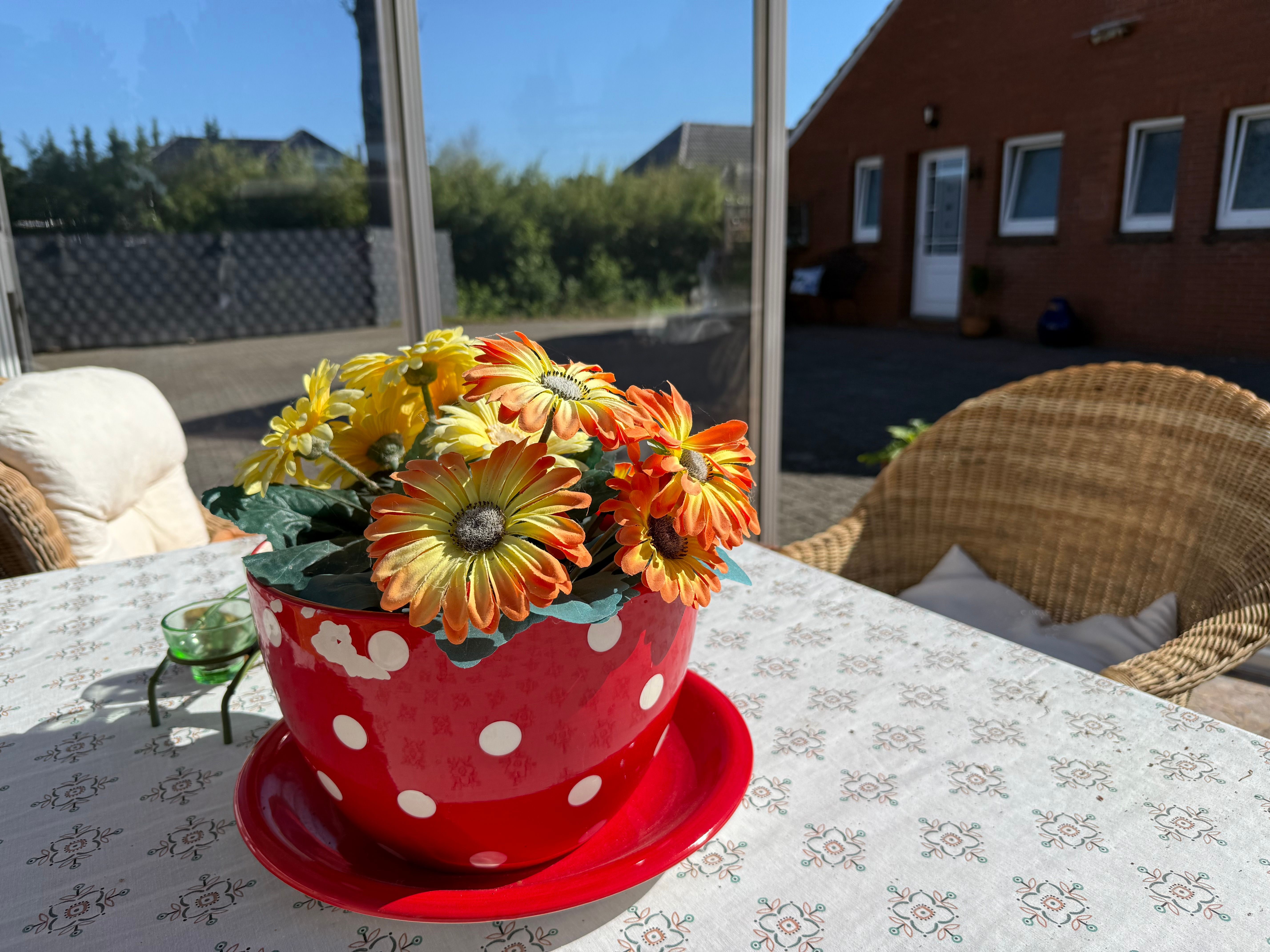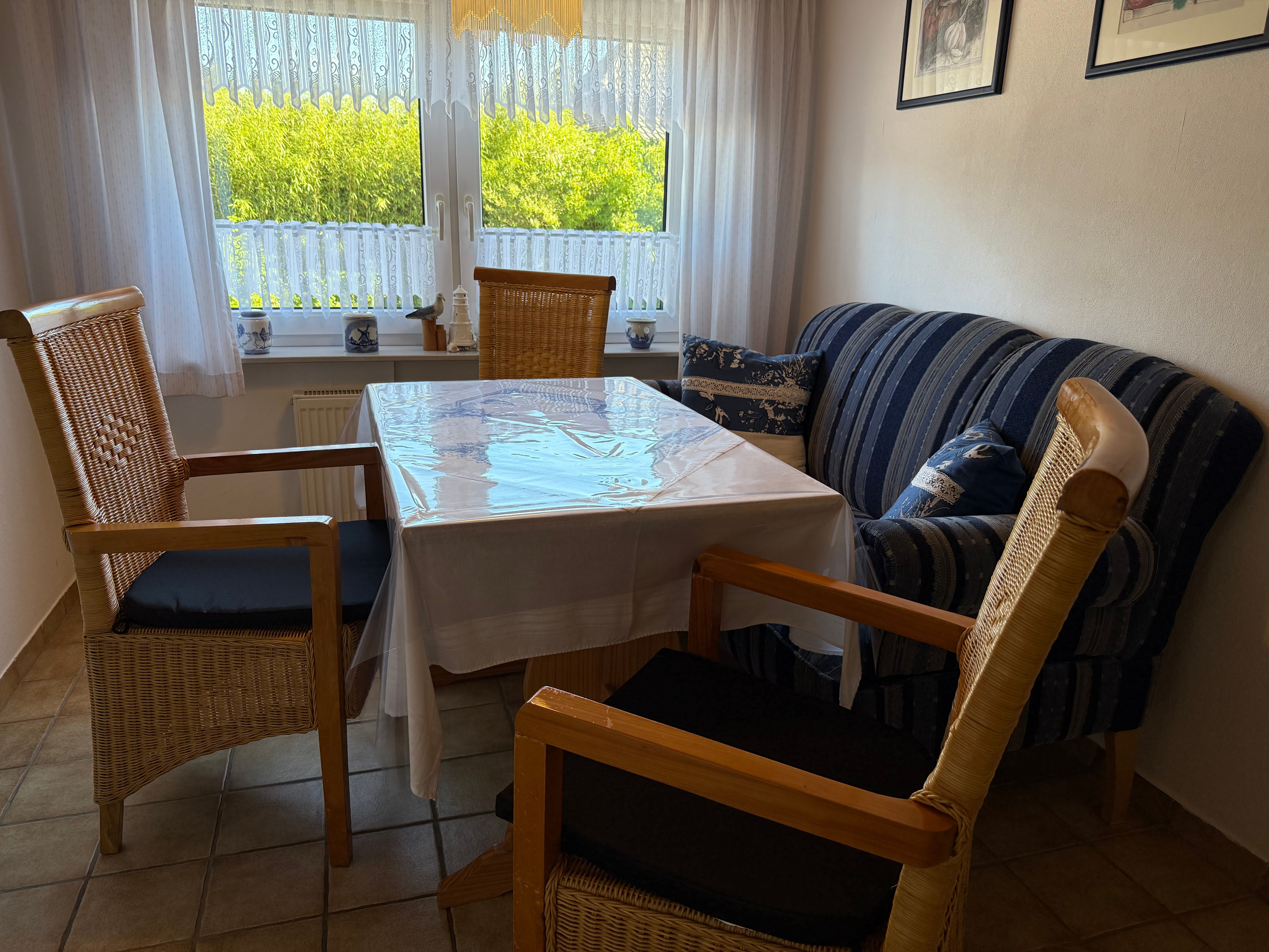 Fühlen Sie sich wohl in unserer komplett ausgestatteten Ferienwohnung im Erdgeschoss. Die Aufteilung der Ferienwohnung besteht aus einem gemütlichen Wohnzimmer, einer Einbauküche mit einem Ostfriesensofa, einem Doppelzimmer mit viel Stauraum und einem Durchgangseinzelzimmer. Dazu gehört noch ein ebenerdiges Badezimmer mit einer Dusche ohne Einstieg und ein WC. Ein separater Parkplatz steht Ihnen direkt am Haus zur Verfügung. Eine kleine Terrasse, ein Grill wie auch ein Pavillon aus Glas zum Verweilen tragen zu einem entspannten Urlaub bei.