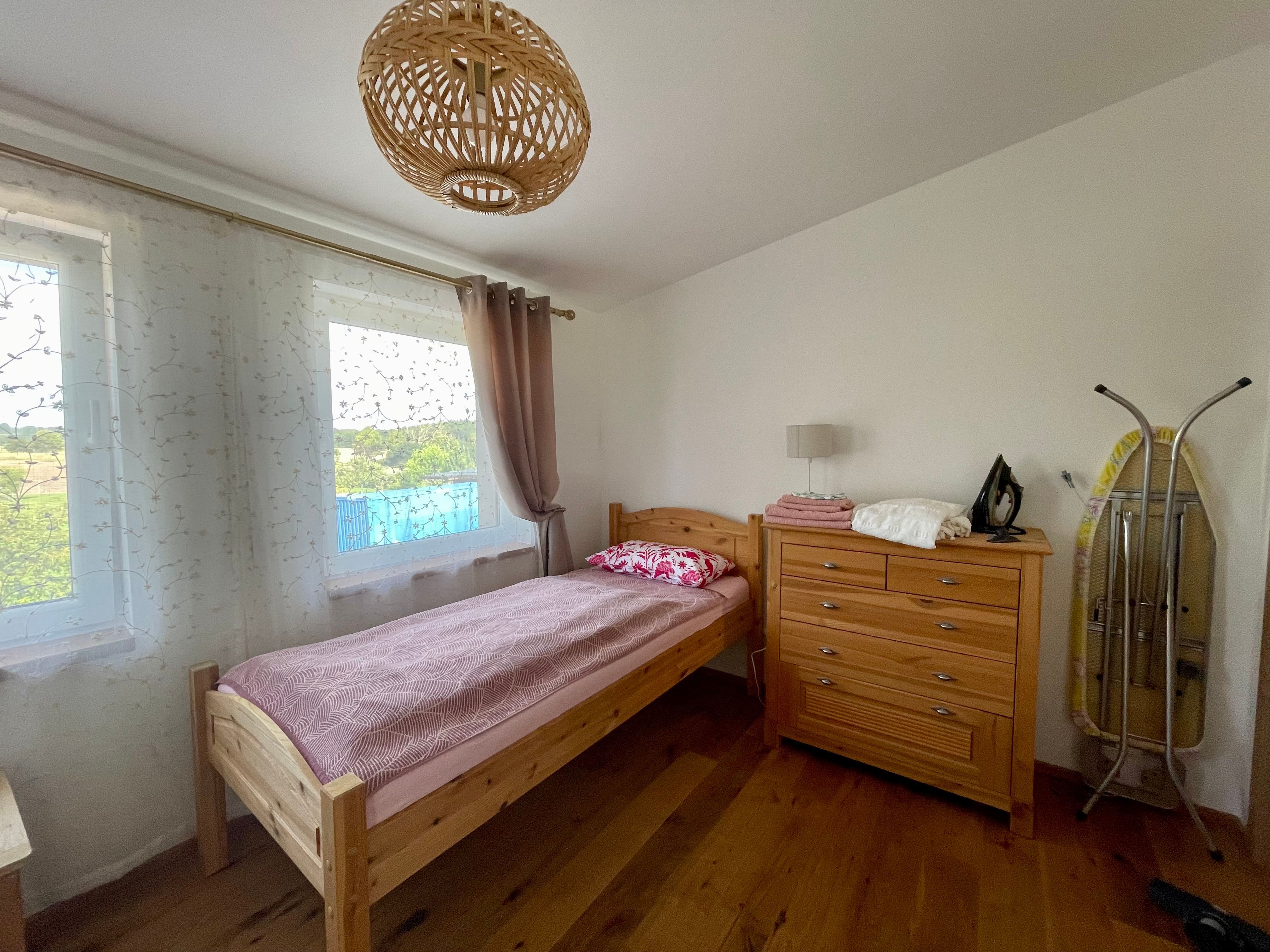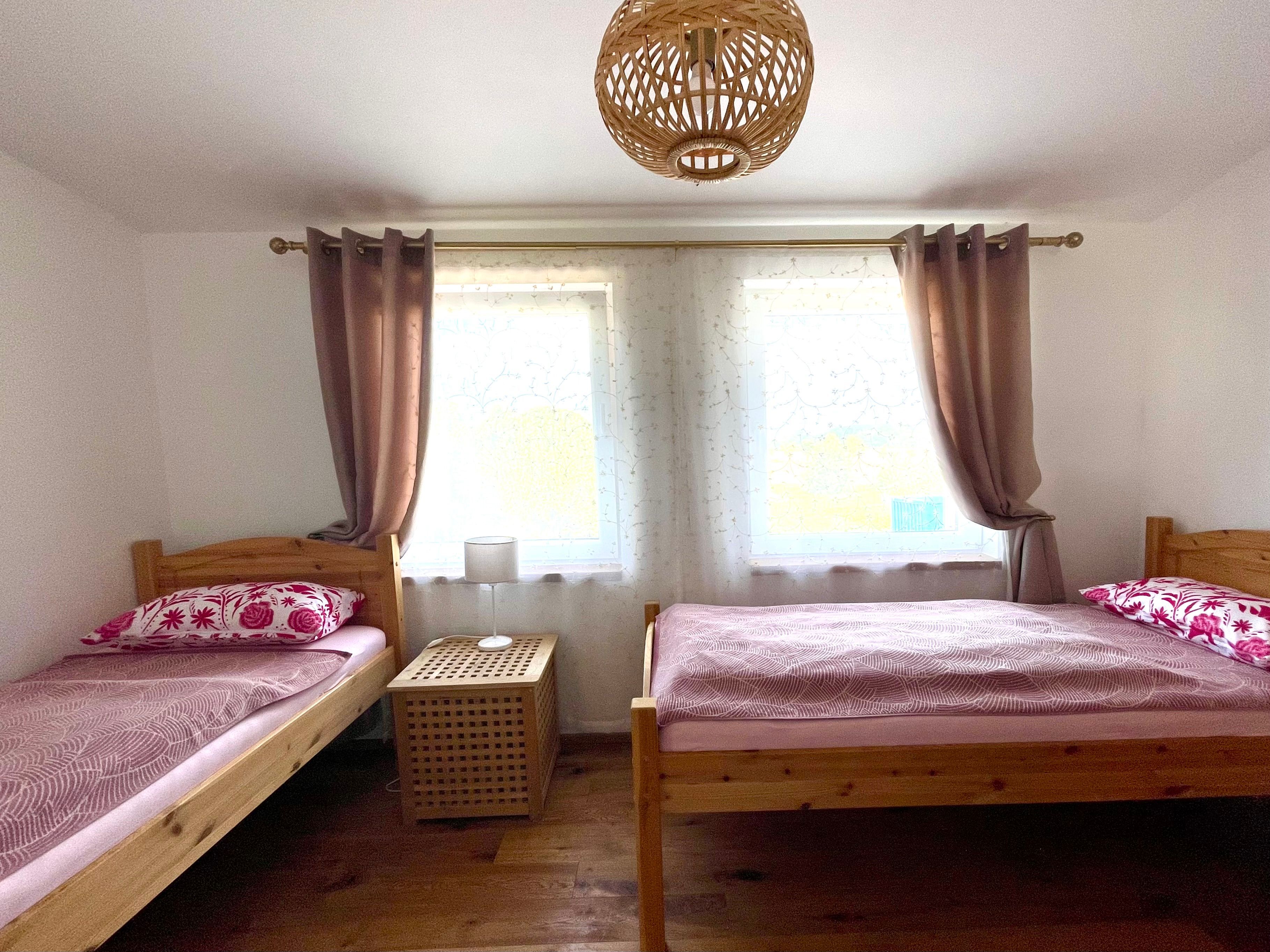 Gemütliche Ferienwohnung mit zwei Bädern im Obergeschoss mit Blick in den Garten und in die Natur.