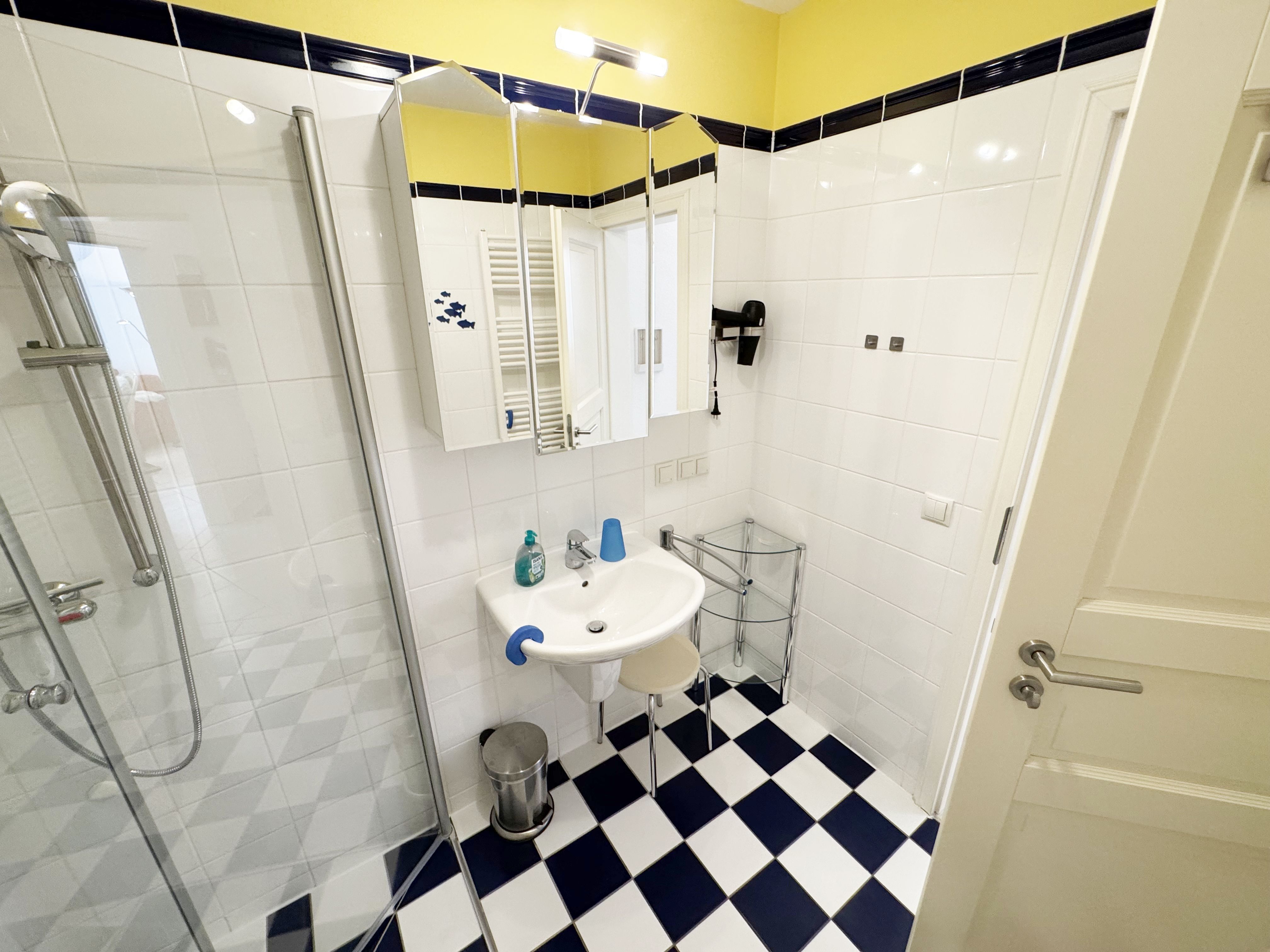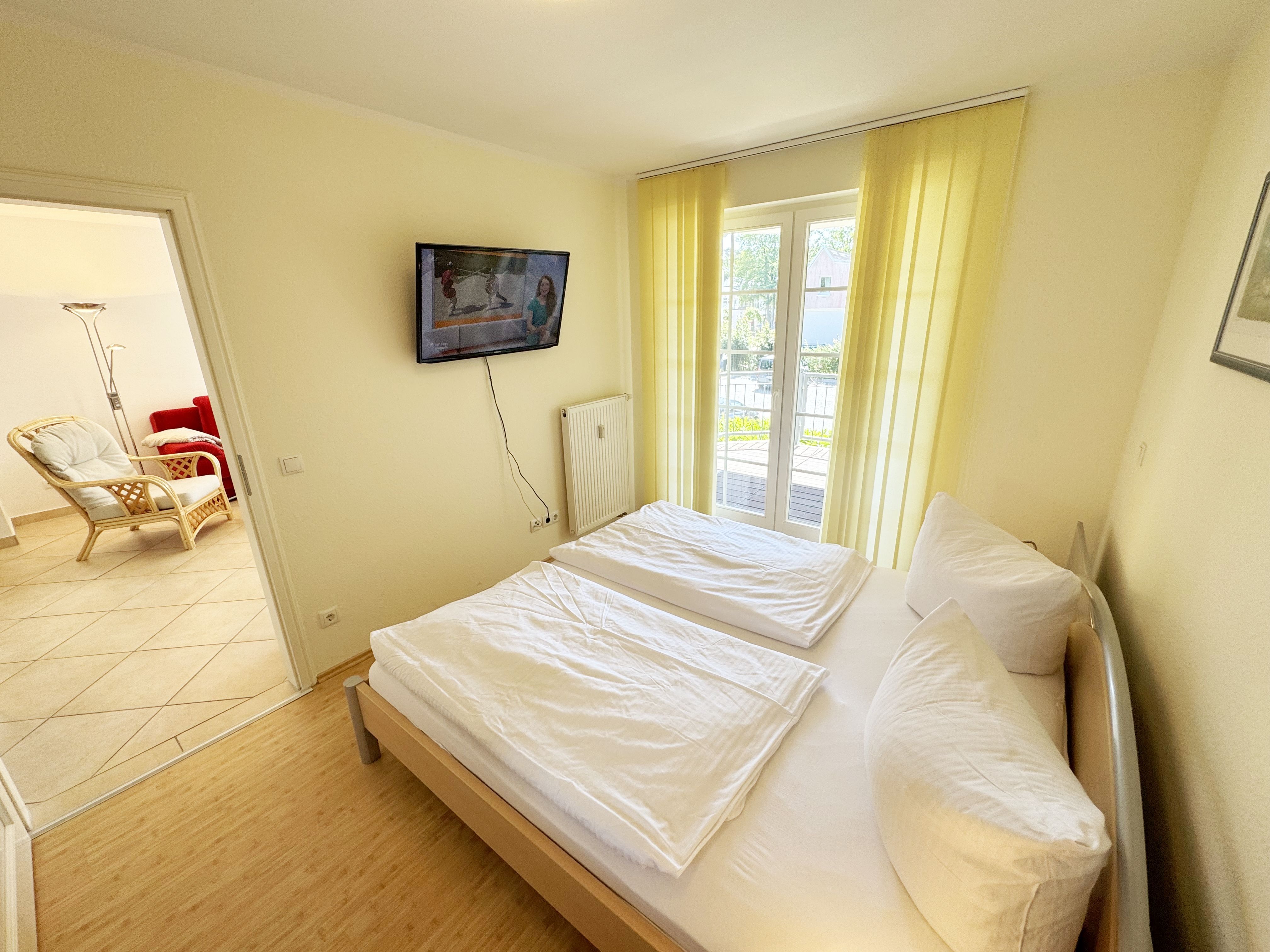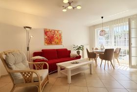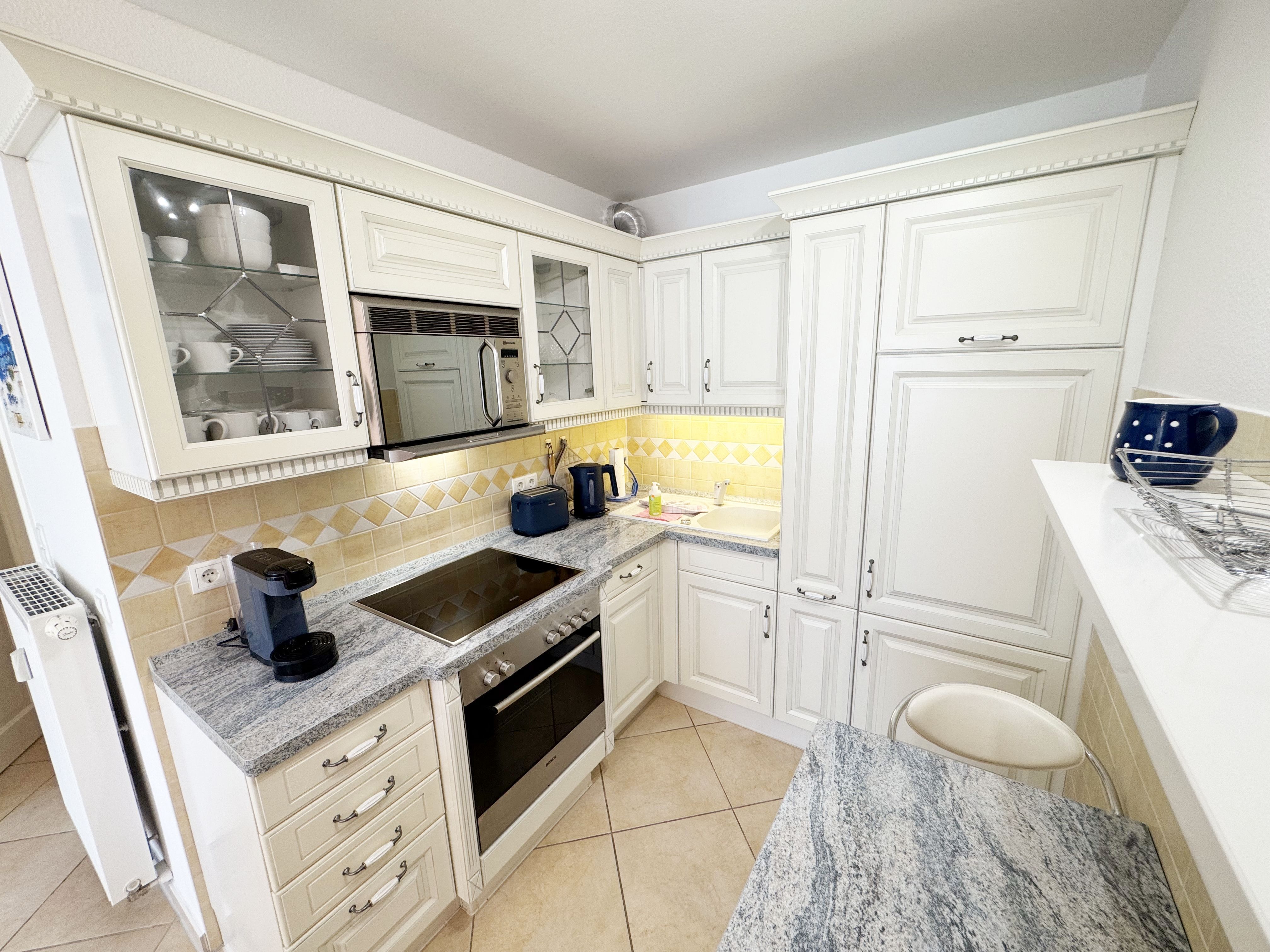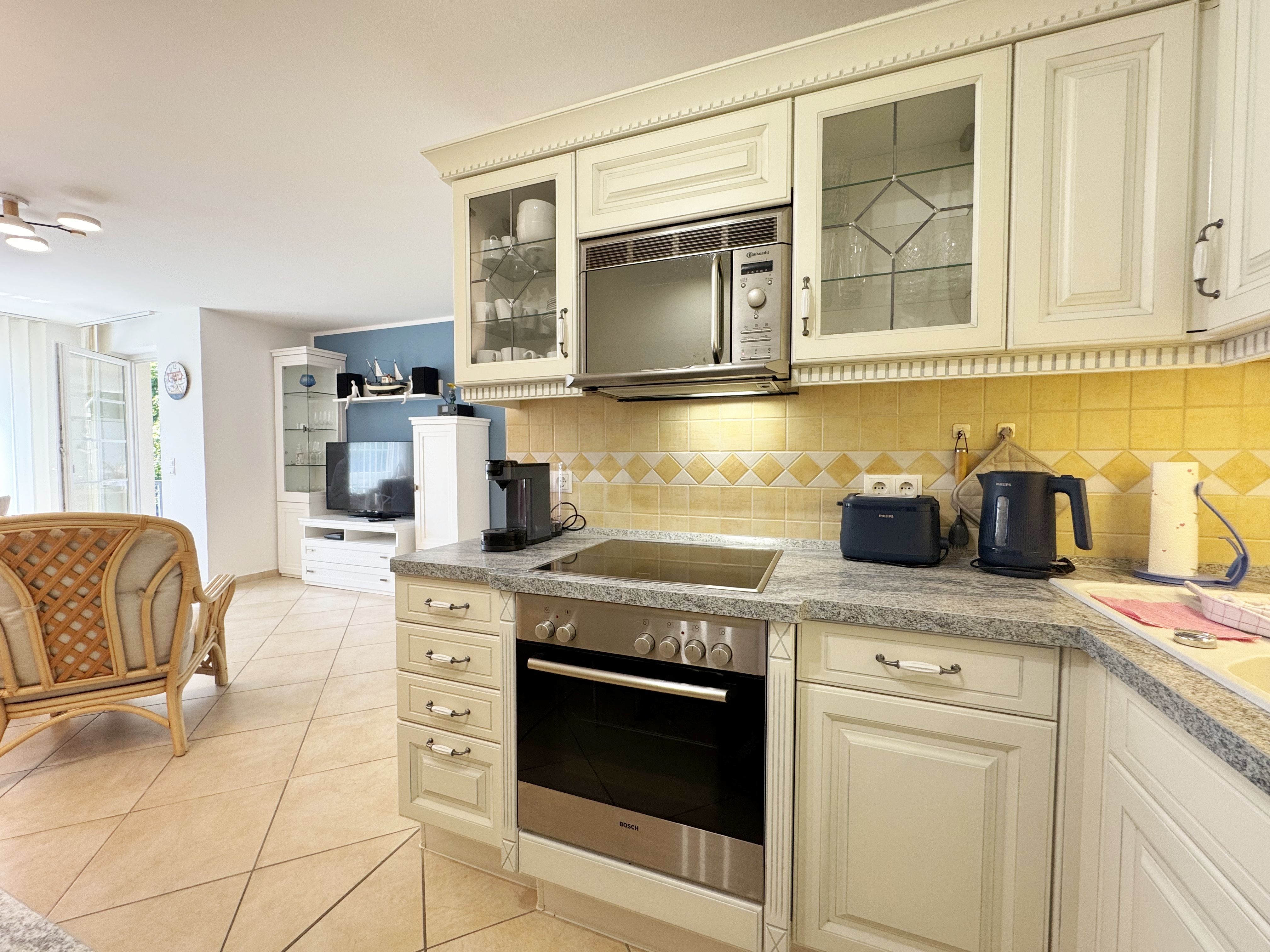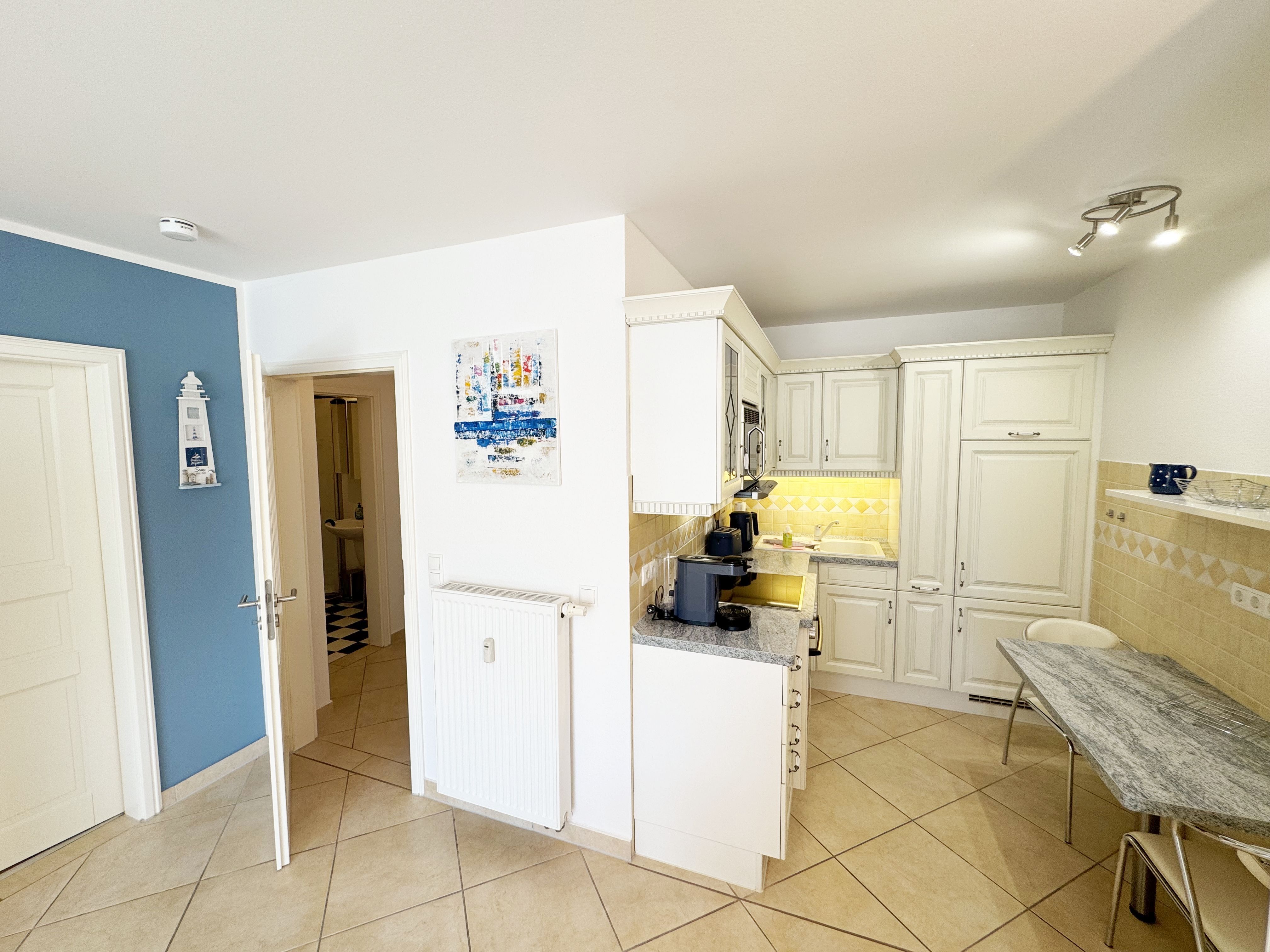 Herzlich Willkommen in unserer liebevoll eingerichteten 2-Zimmer-Wohnung (Nr.06) mit überdachtem Balkon im ersten Obergeschoß des modernen Apartmenthauses Villa Mara im schönen Ostseebad Baabe! Mit ca. 52 qm bietet die lichtdurchflutete Nichtraucherwohnung eine angenehme Atmosphäre und ist perfekt für max. 2 - 3 Personen. Der Wohnbereich ist mit einer Schlafcouch (Aufbettungsmöglichkeit 3. Person, 1,56m x 2,00m), einem Couchtisch, einem Sessel, einer Leselampe, einer Anrichte mit einem Smart-TV und einer Internet/DAB-Stereo-Anlage ausgestattet. Mit einer kleinen Auswahl an Gesellschaftsspielen und spannenden Büchern können Sie auch hier entspannte Stunden verbringen. Abgerundet wird der Bereich mit einem Essplatz am Fenster. Die angrenzende offene Wohnküchenzeile verfügt über einen kleinen Esstisch, ein Cerankochfeld, einen Backofen, eine Mikrowelle, einen Kühlschrank mit Gefrierfach, einen Geschirrspüler, einen Pürierstab, eine kombinierte Kaffeefilter/Senseo-Pad-Maschine mit Thermoskanne, einen Wasserkocher und einen Toaster. Ebenso sind die nötigen Küchenutensilien vorhanden, sodass Sie hier bequem selbst kochen können. Der sonnige und bestuhlte Südbalkon ist sowohl vom Wohnbereich als auch vom Schlafzimmer zugänglich und lädt zum Frühstücken ein oder um gemütliche Abende ausklingen zu lassen und gleichzeitig die frischen Ostseeluft in vollen Zügen zu genießen. Das Schlafzimmer bietet Ihnen ein bequemes Doppelbett (1,80m x 2,00m), verstellbare Lattenroste, Nachttischablagen mit Beleuchtung, Kleiderablage, einen geräumigen Kleiderschrank und einen Smart-TV. Das geräumige innenliegende Badezimmer ist komfortabel mit einer Fußbodenheizung, einem WC, einem Fön, einem Kosmetikspiegel und einer ebenerdigen Dusche ausgestattet. Haustiere sind in der Wohnung nicht erlaubt. Im vorhandenen Abstellraum welcher sich zusätzlich in der Wohnung befindet, finden Sie unteranderem Reinigungsutensilien ein Bügelbrett, ein Bügeleisen und ein Kinderreisebett für unsere kleinen Gäste. Der weitläufige Außenbereich mit altem Baumbestand und Grillplatz lädt zum Verweilen an der frischer Ostseeluft ein. Dort befindet sich auch eine geschützte Unterstellmöglichkeit für Ihre mitgebrachten Fahrräder. Ein PKW-Stellplatz (Nr.06) befindet sich direkt hinter dem Haus. Die Erstausstattung eines Wäschepaketes (komplette Bettwäsche, 1 Duschhandtuch, 1 kleines Handtuch) können Sie bis 14 Tage vor Anreise gegen Aufpreis dazu buchen oder durch eigene ergänzen. Ab 2 gebuchten Paketen erhalten Sie einmalig 1 Geschirrhandtuch und 1 Duschvorleger dazu. Wir wünschen Ihnen eine erholsame Zeit im Ostseebad Baabe und würden uns freuen, Sie wieder als Gäste begrüßen zu dürfen.