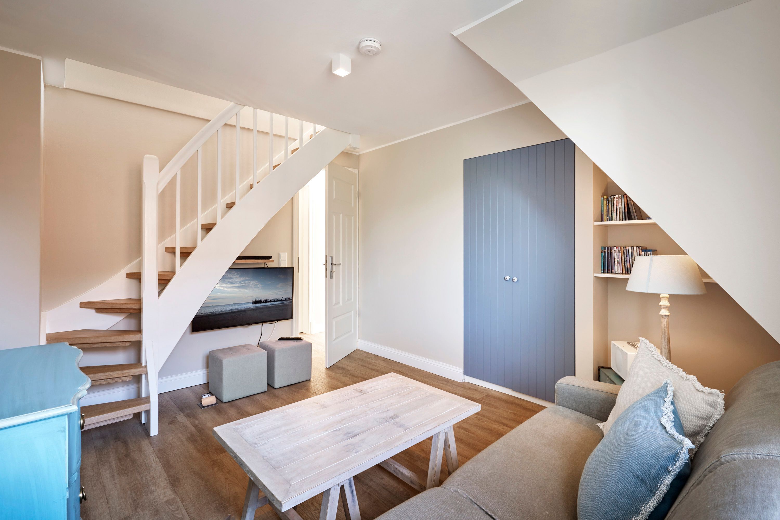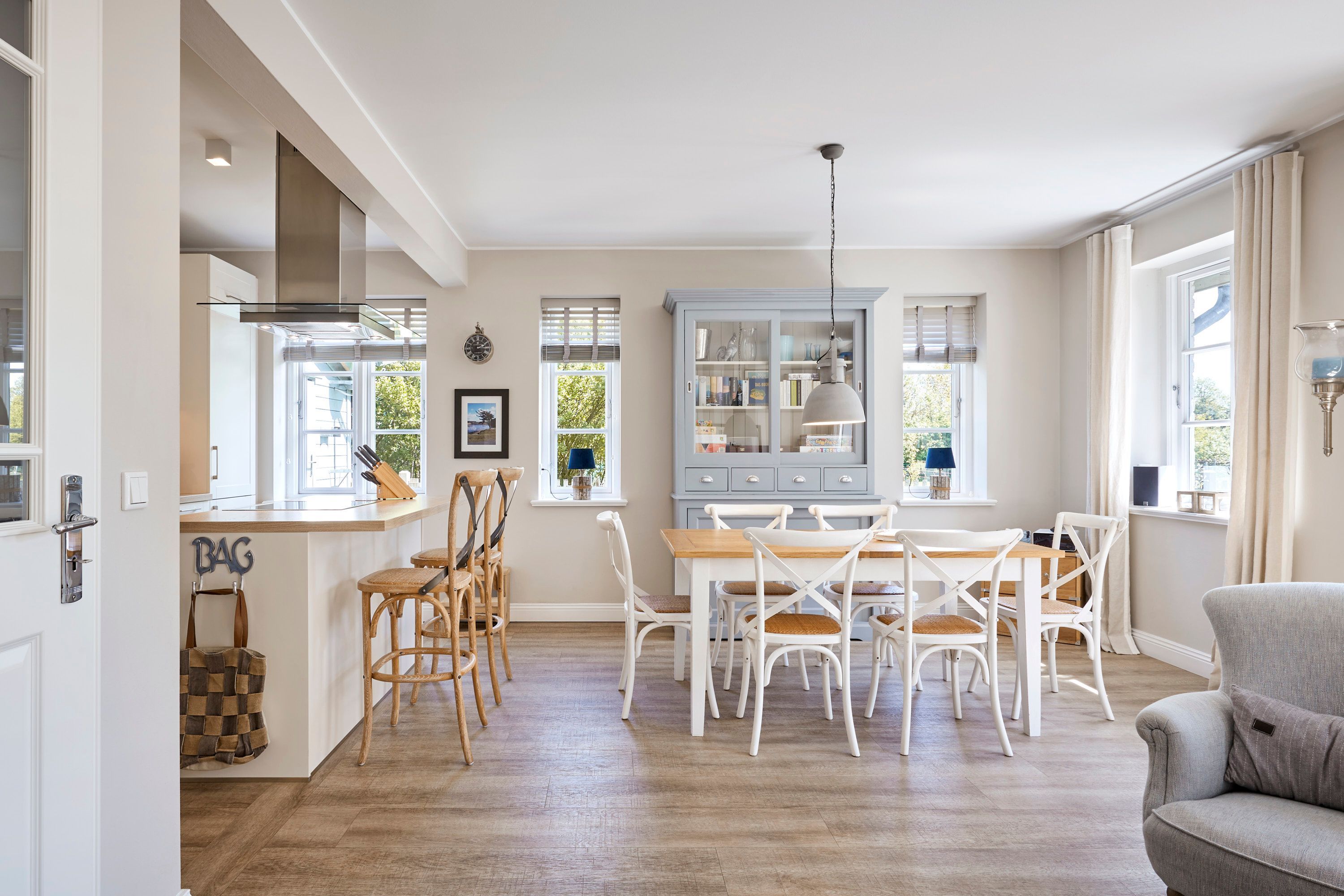 Das Ferienhaus Uast Winj hat im Erdgeschoss einen großen Wohn-Essbereich mit einer offenen Küche. Die Küche lässt keine Wünsche offen. Der Hobby-Koch findet hier alles was er braucht. Ein Induktionsfeld ist mit Küchenblock, viele große Schubladen und Auszüge fürs bequeme wegstauen, ein Backofen auf Augenhöhe, sowie viele elektrische Küchengeräte wie Pürierstab, Handmixer etc, ausreichend Töpfe und Pfannen, gute Messer, Schneidebretter und Rührschüsseln, neben Wasserkocher und Toaster gibt es auch eine Nespresso Kaffee Maschine. Der Wohnbereich hat ein bequemes Sofa mit einem Filzbezug. Couchtisch und einem Sessel. Außerdem befinden sich im Wohnbereich ein Kamin-Ofen und ein TV (40-Zoll) Standgerät und eine Stereoanlage mit Dockingstation. Im Untergeschoss befinden sich Waschmaschine und Trockner.