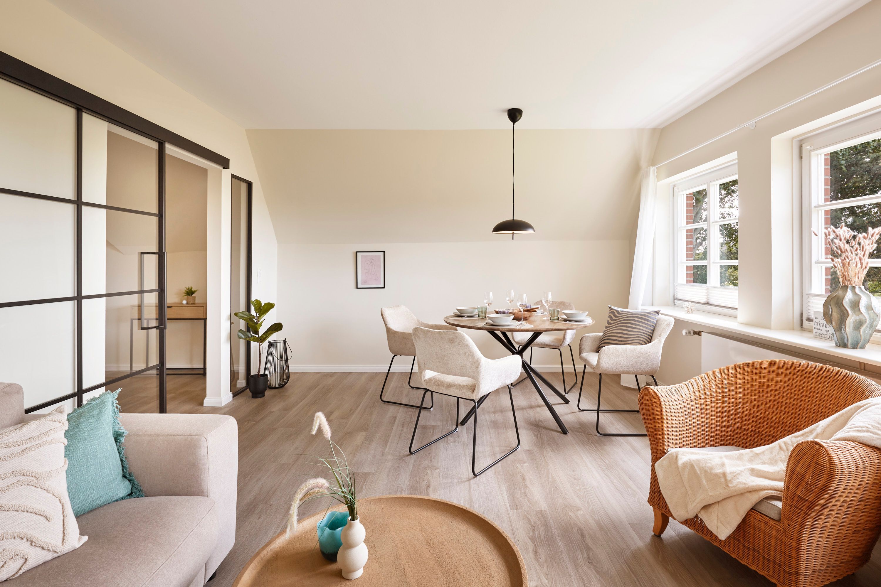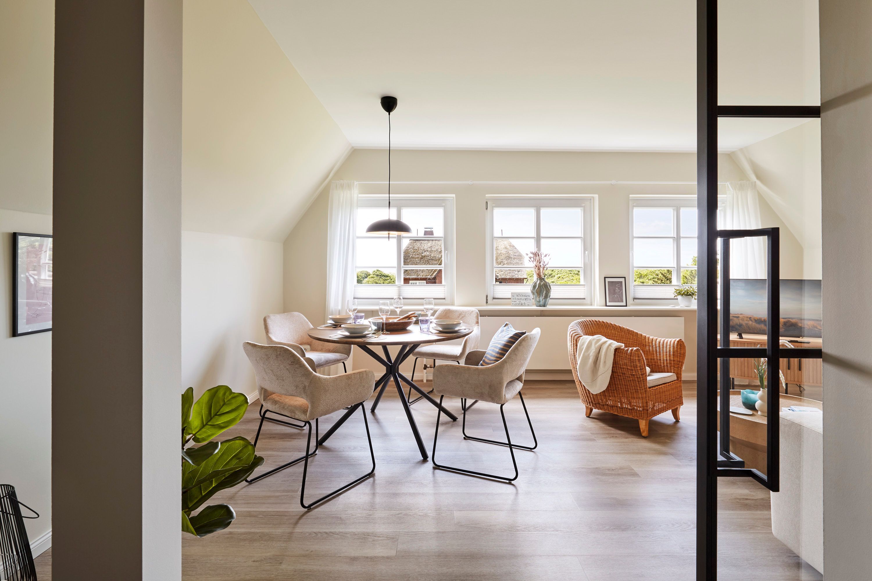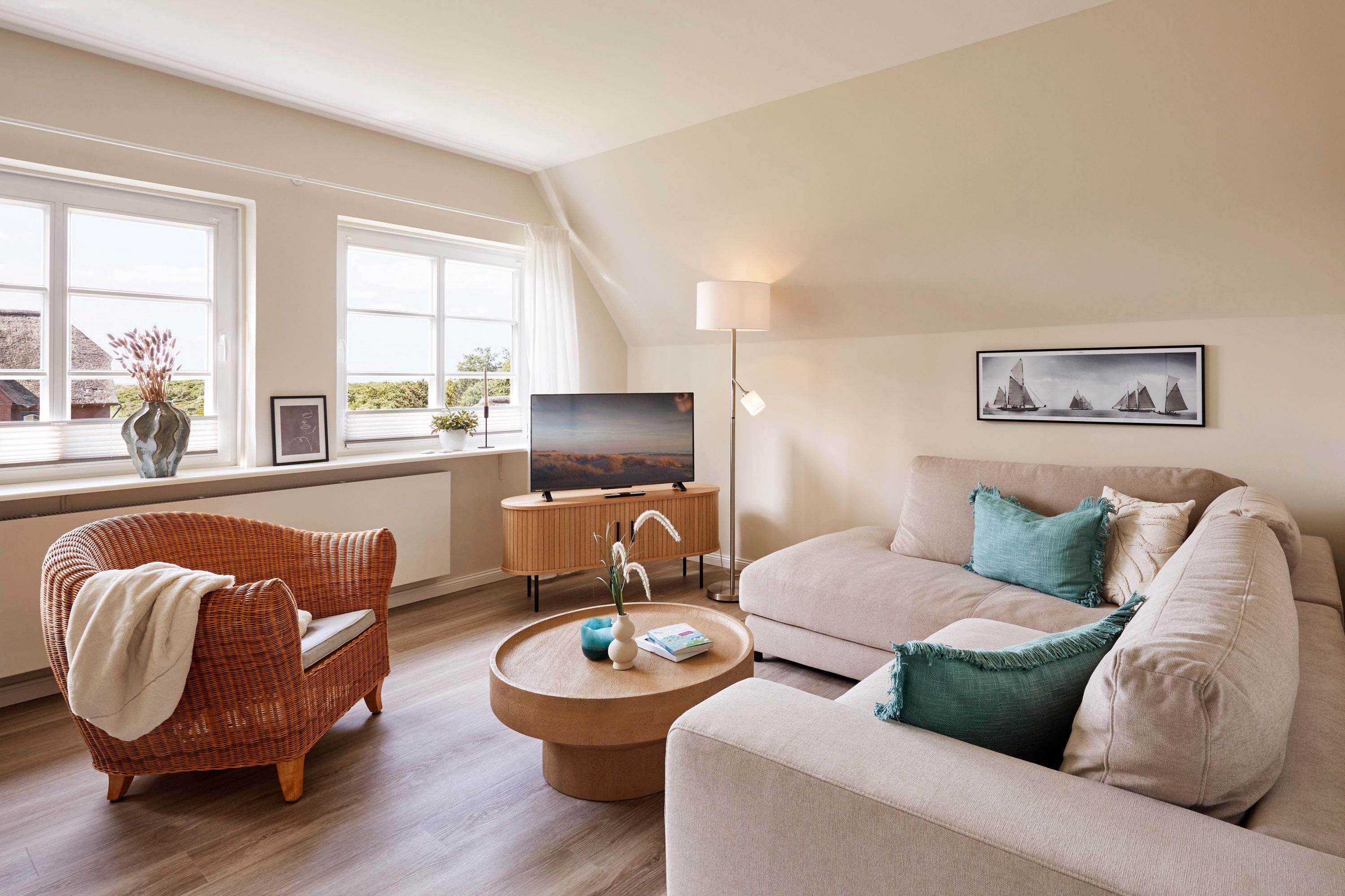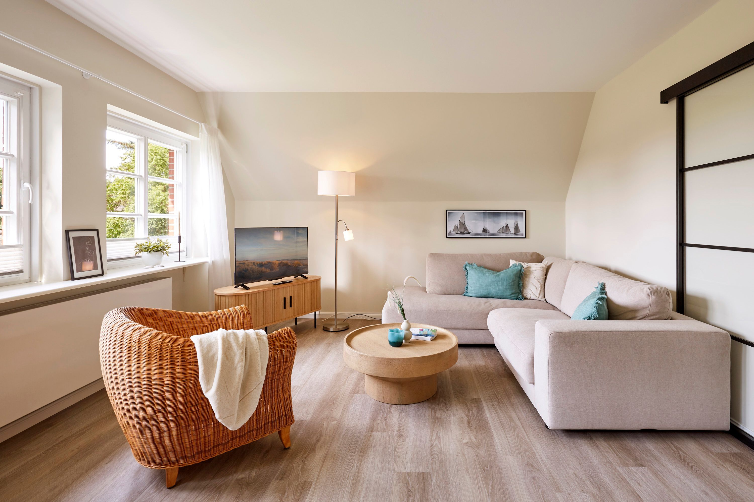 Die Wohnung ist im Bredland, in einer ruhigen Straße mit Reetdachhäusern, gelegen. Sie besticht durch eine komfortable, stilvolle Einrichtung und bietet alles für einen unbeschwerten Urlaub. Direkt zwischen Wyk und dem malerischen Nieblum, sind sowohl Einkaufsmöglichkeiten, Restaurants und Cafés mit dem Fahrrad oder dem Auto bequem in kurzer Zeit erreichbar.
