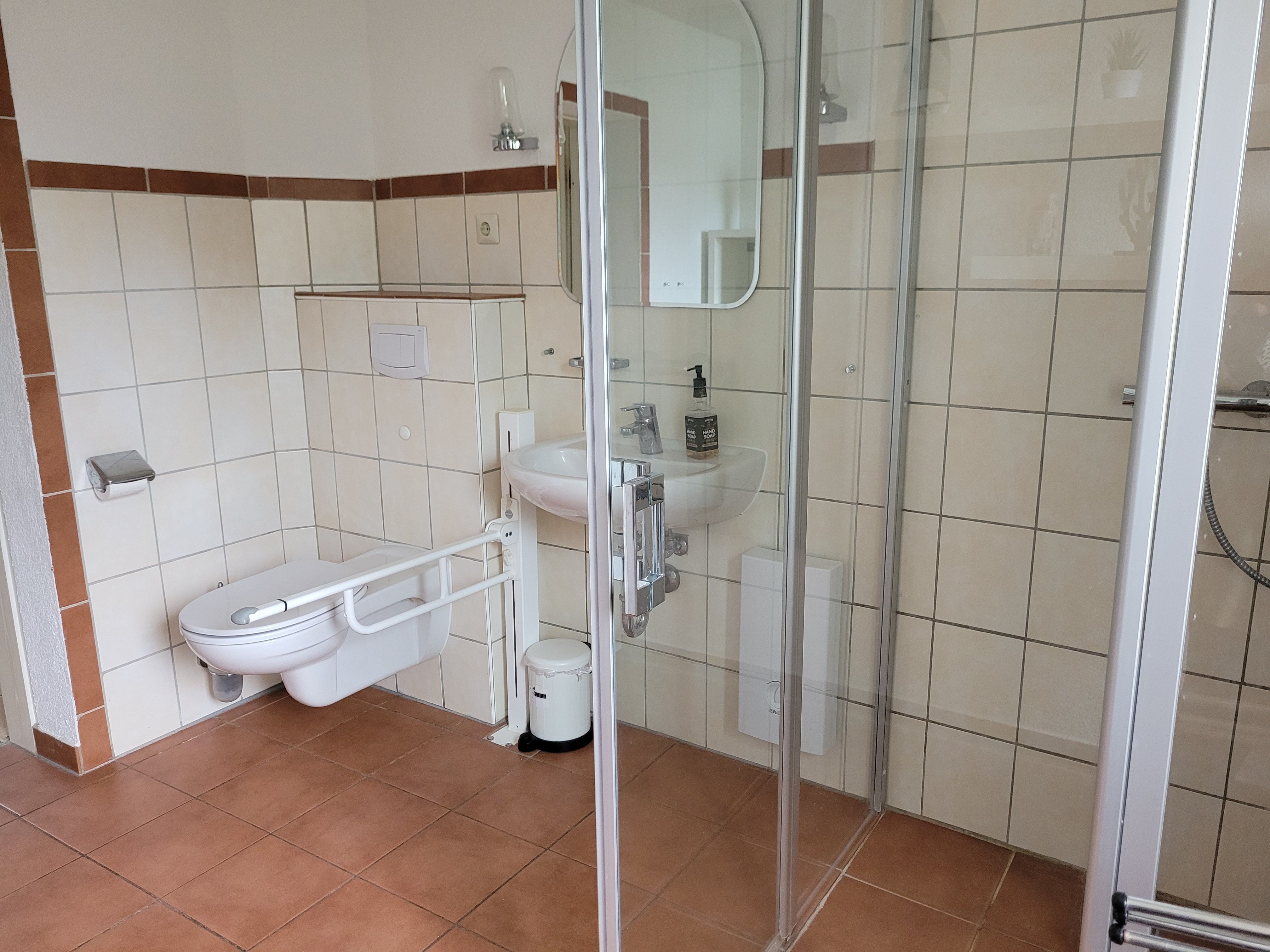 - einem seniorengerechten Badezimmer (ebenerdige Dusche, verstellbarer Griff beim WC, ausreichend Ablagefächer)