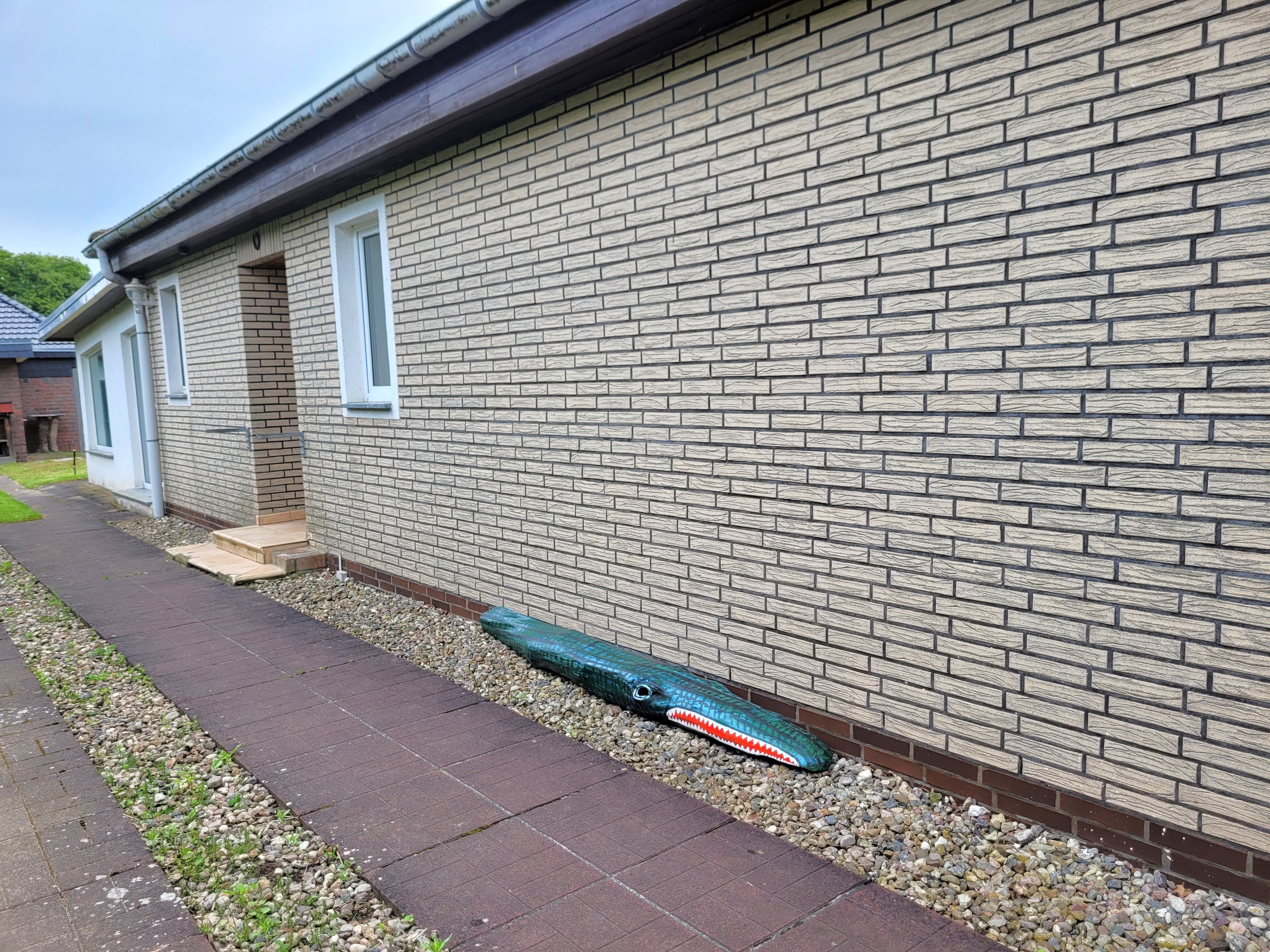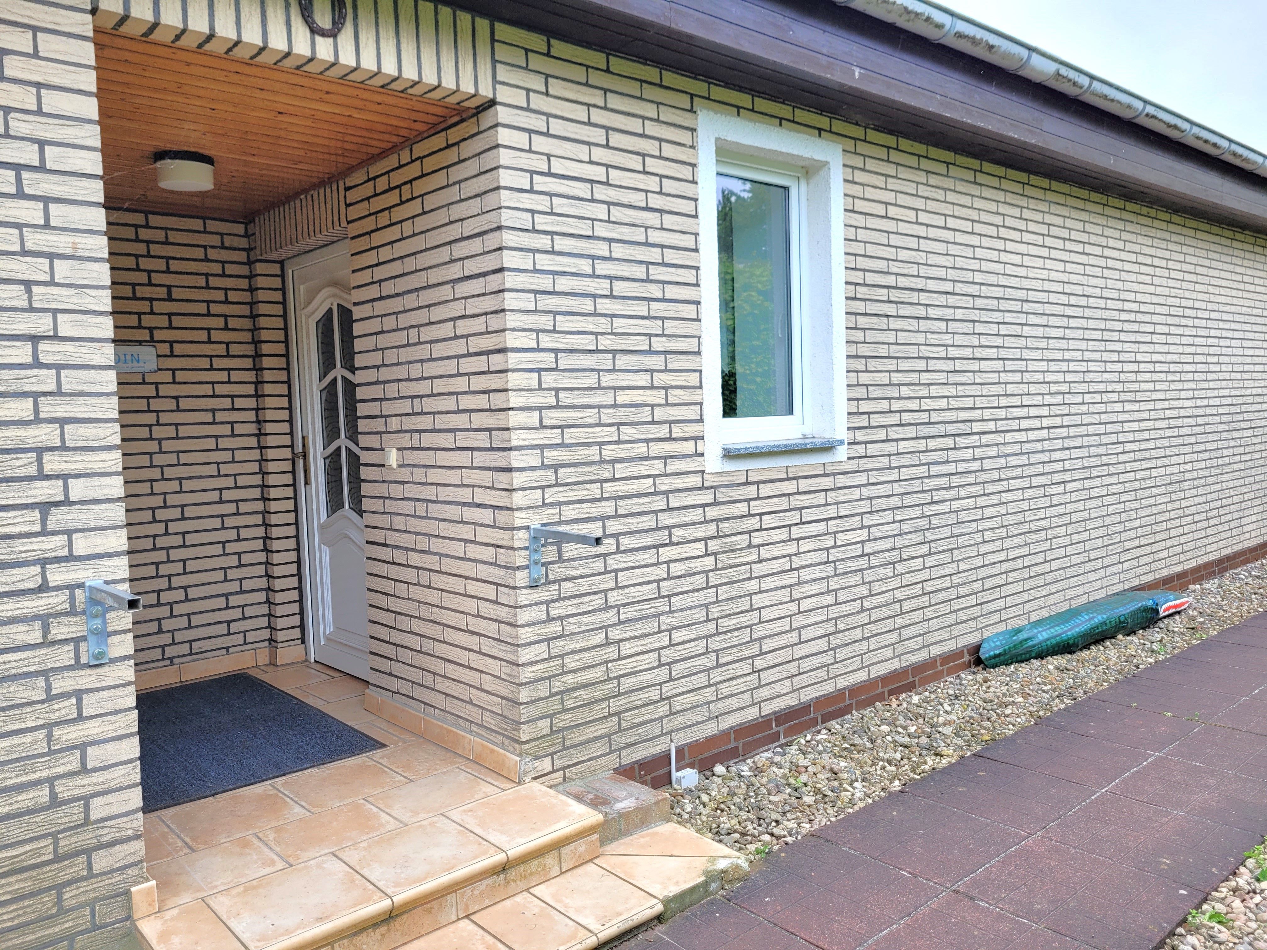 Das Ferienhaus ist circa 80qm² groß und befindet sich auf dem Grundstück des Vermieters. Vor dem Eingang befindet sich eine Stufe sowie eine kleine Schwelle vom Wintergarten zur Terrasse. Alle weiteren Räumlichkeiten sind ebenerdig und somit sehr seniorenfreundlich.