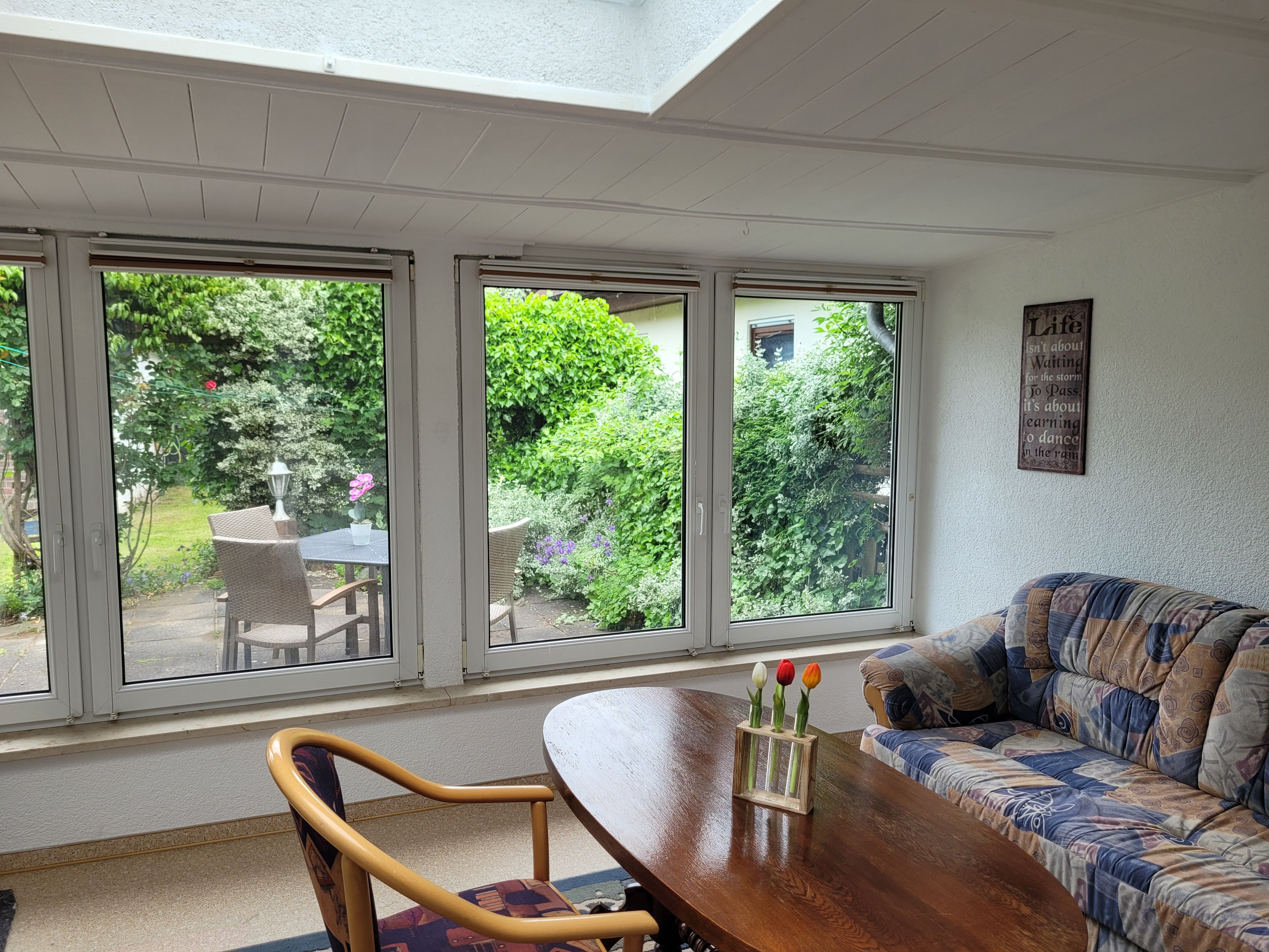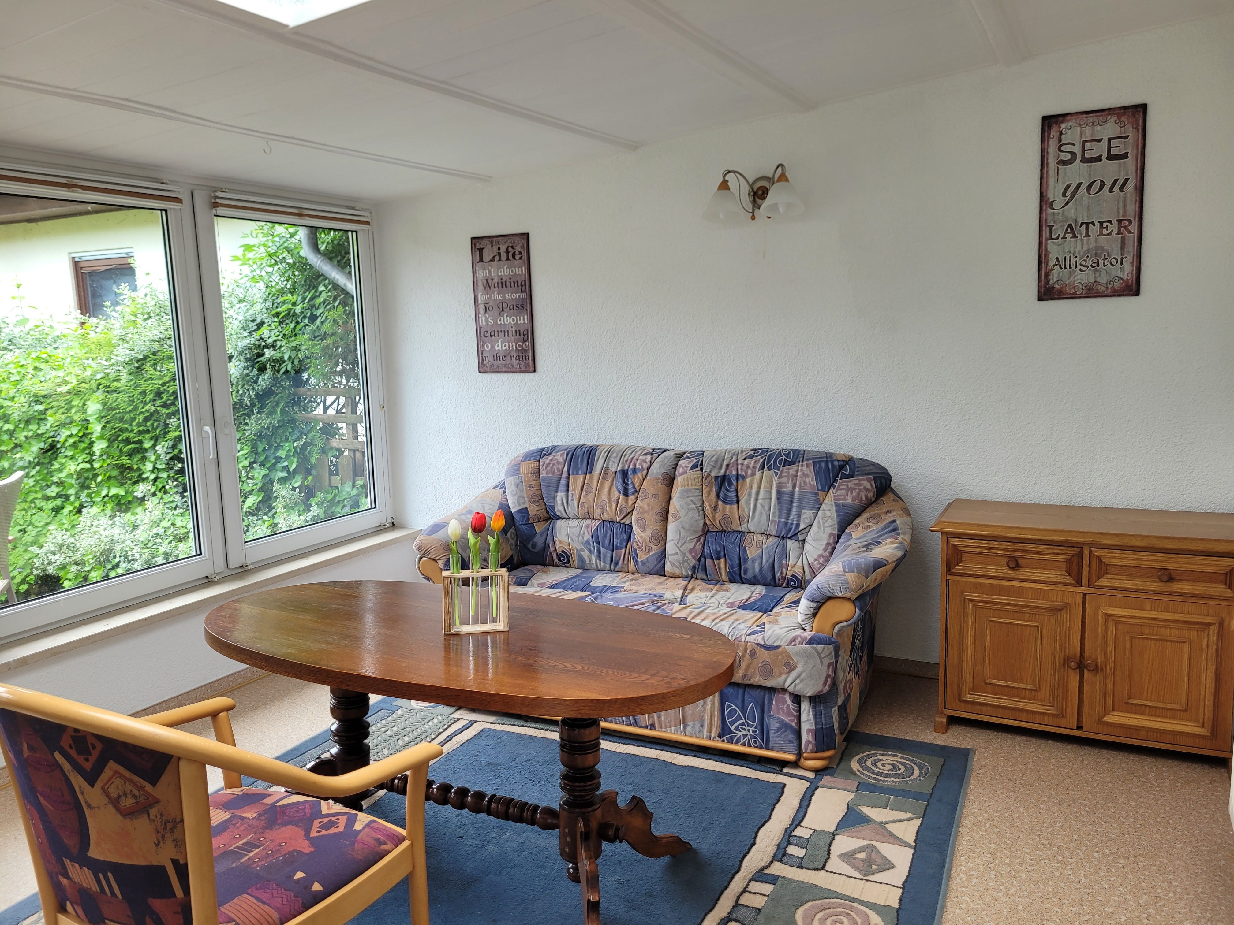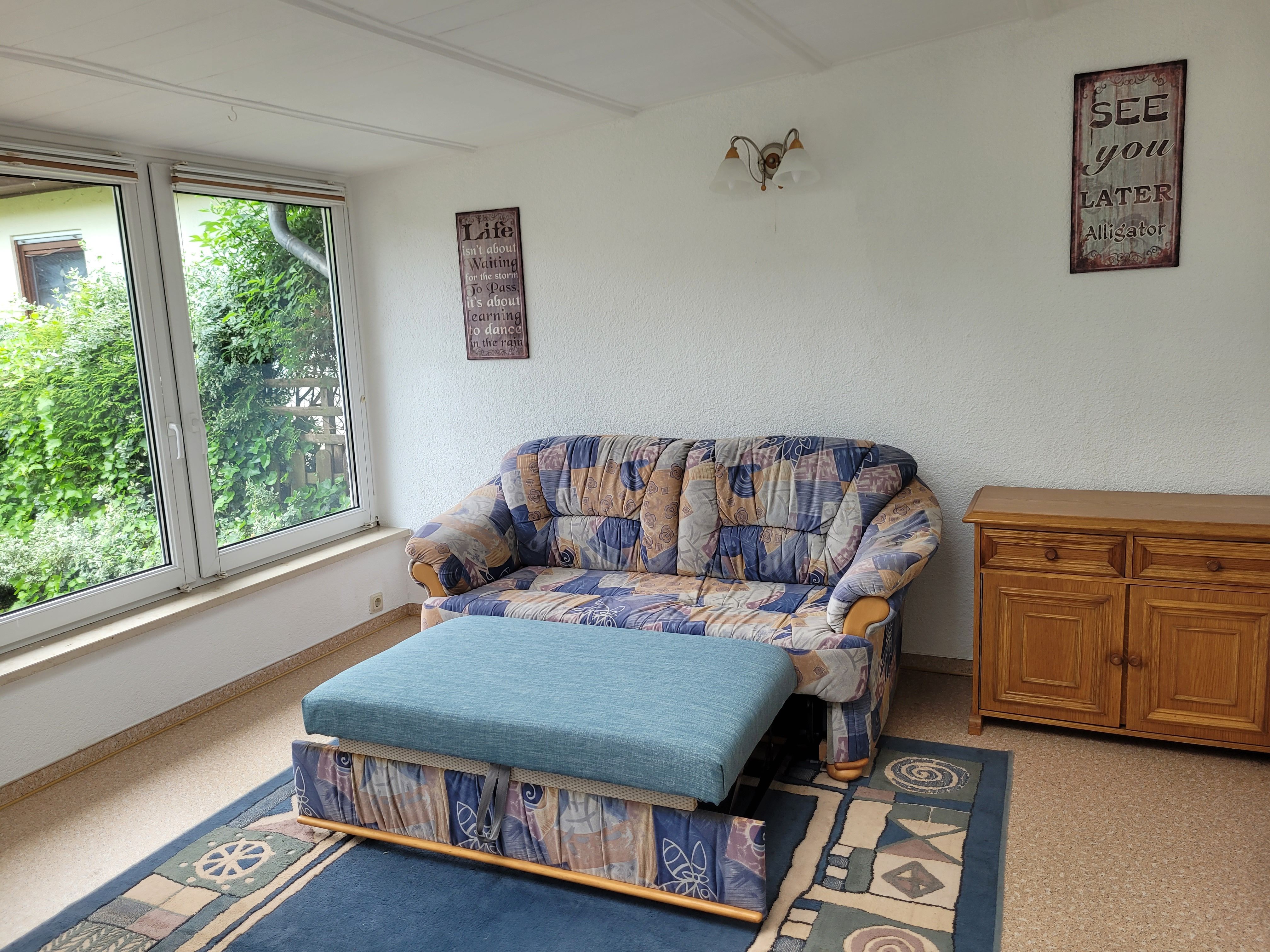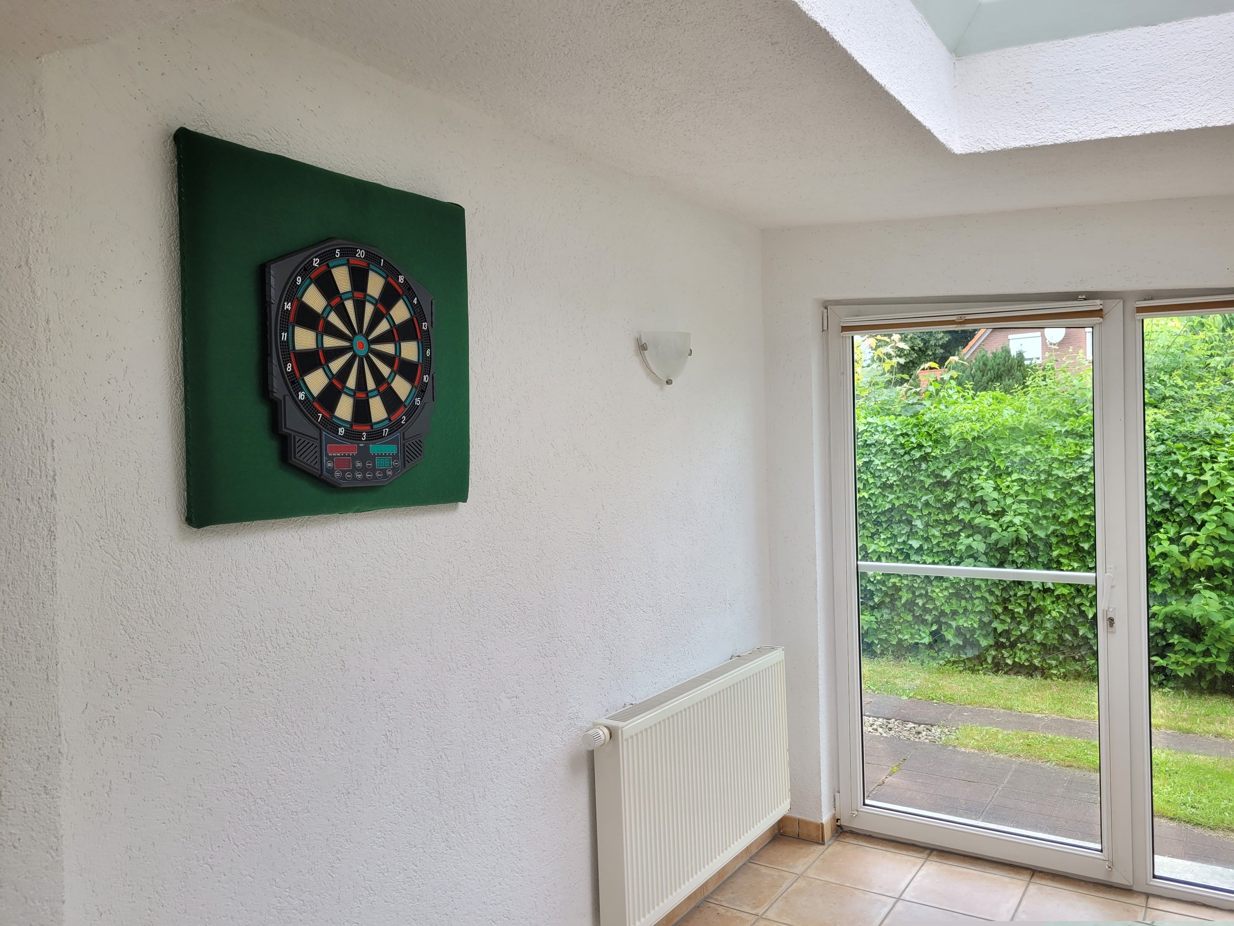 - einem großen Wintergarten (Sitzecke, Schlafcouch, Dartscheibe)