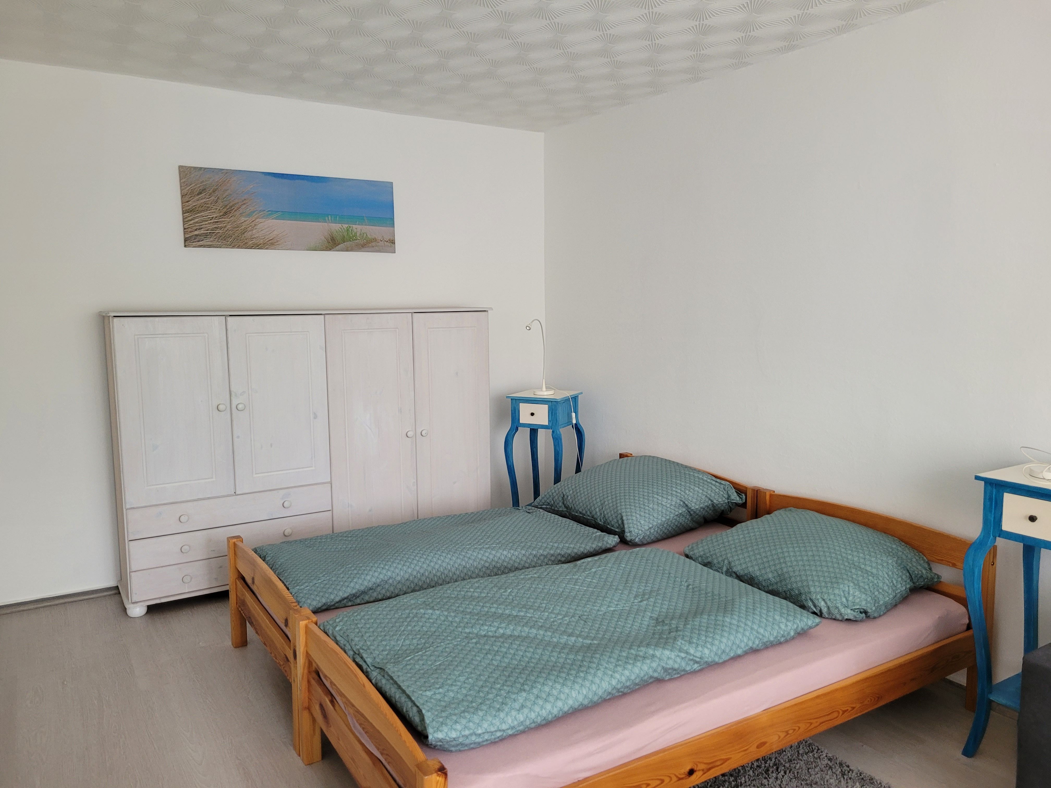 - einem separaten Schlafzimmer (2 Einzelbetten, Kleiderschrank, Sitzecke)