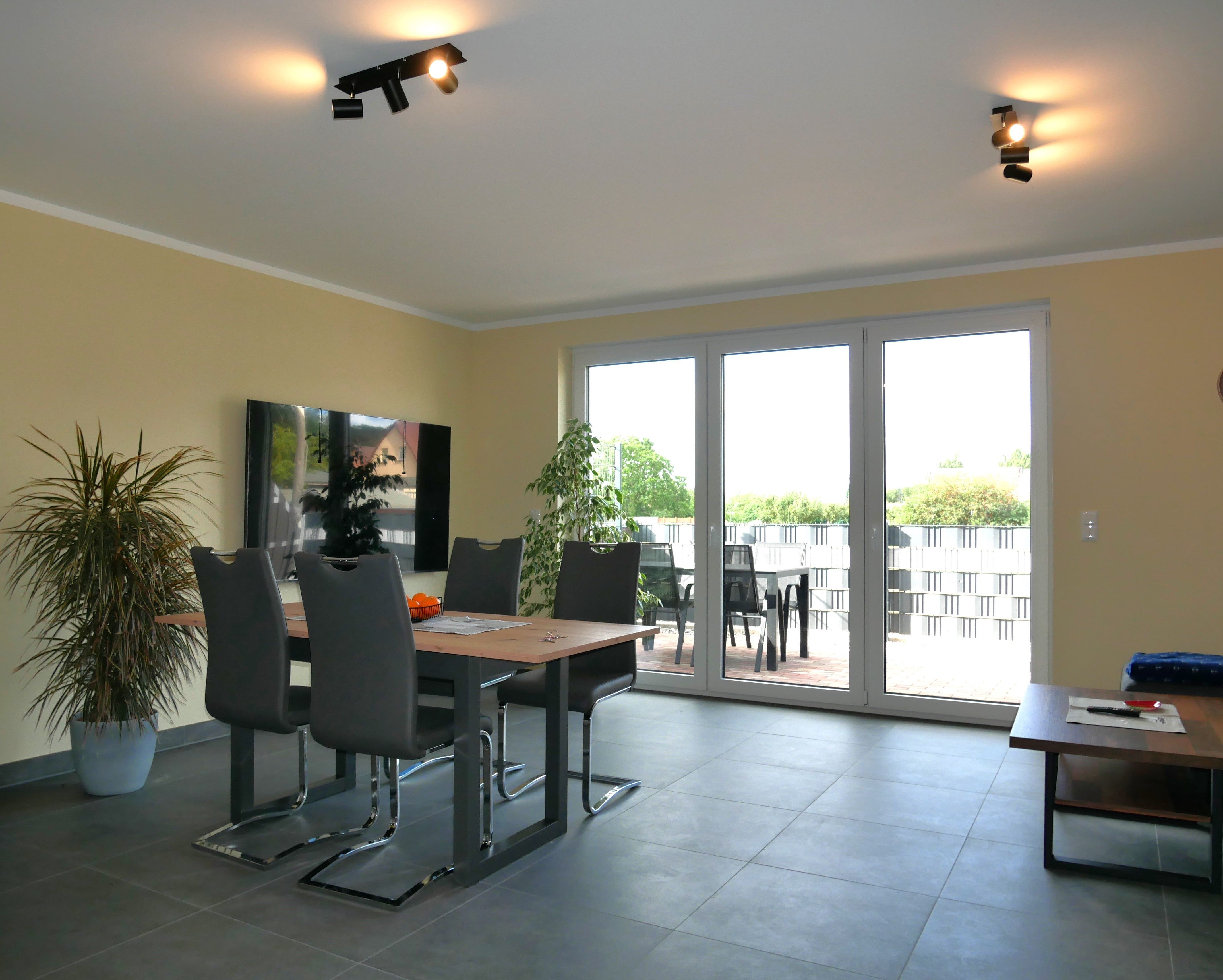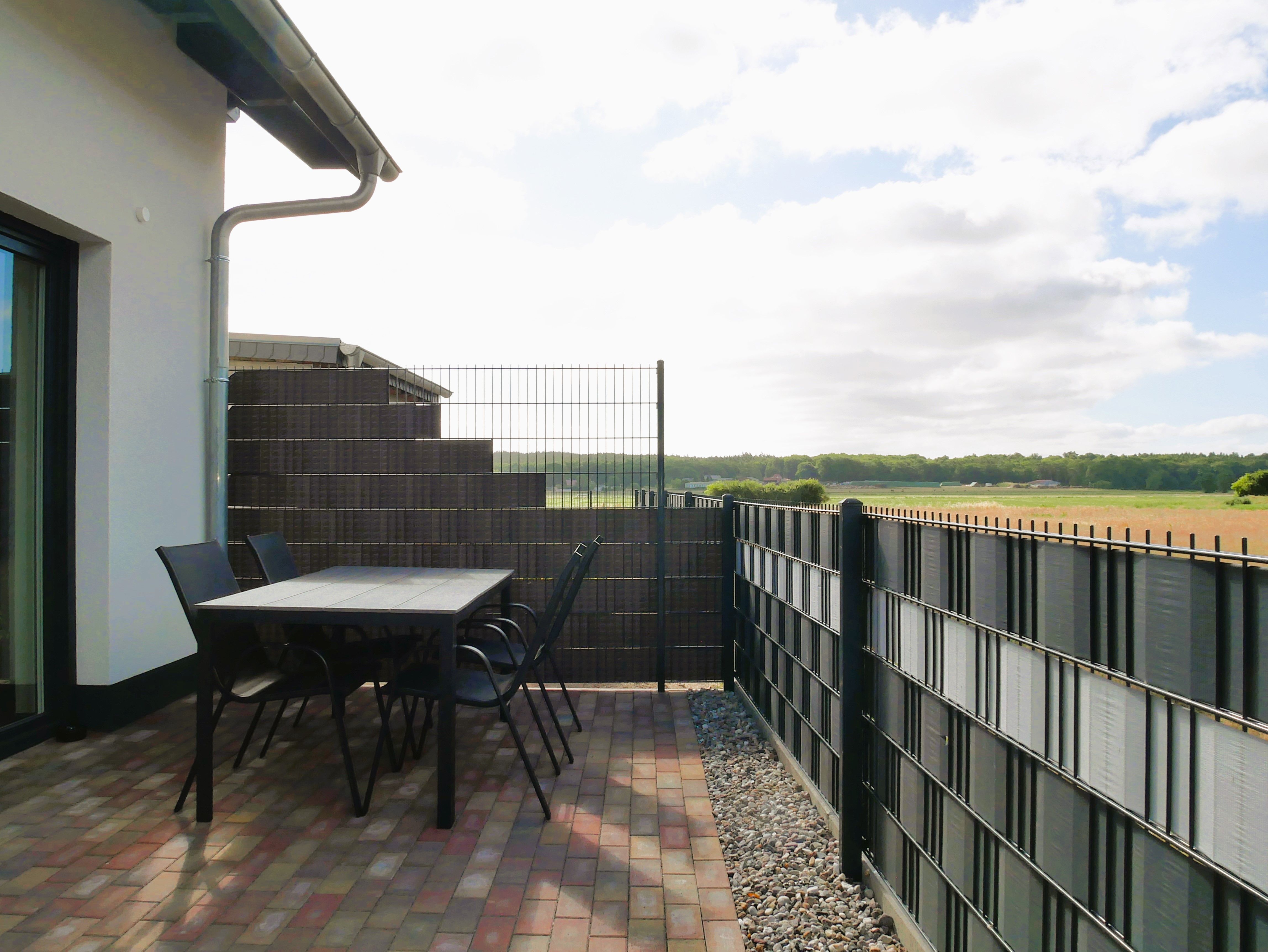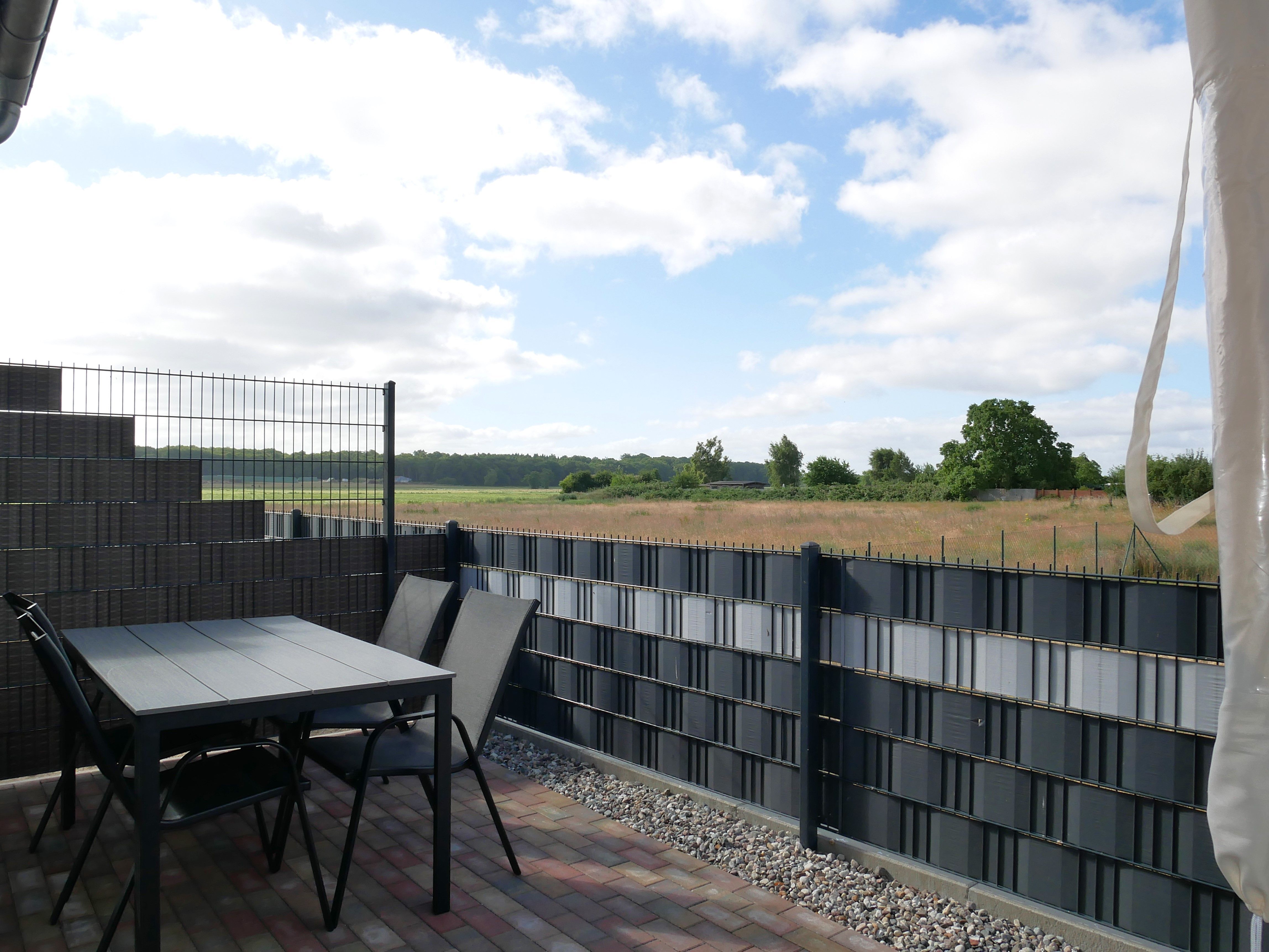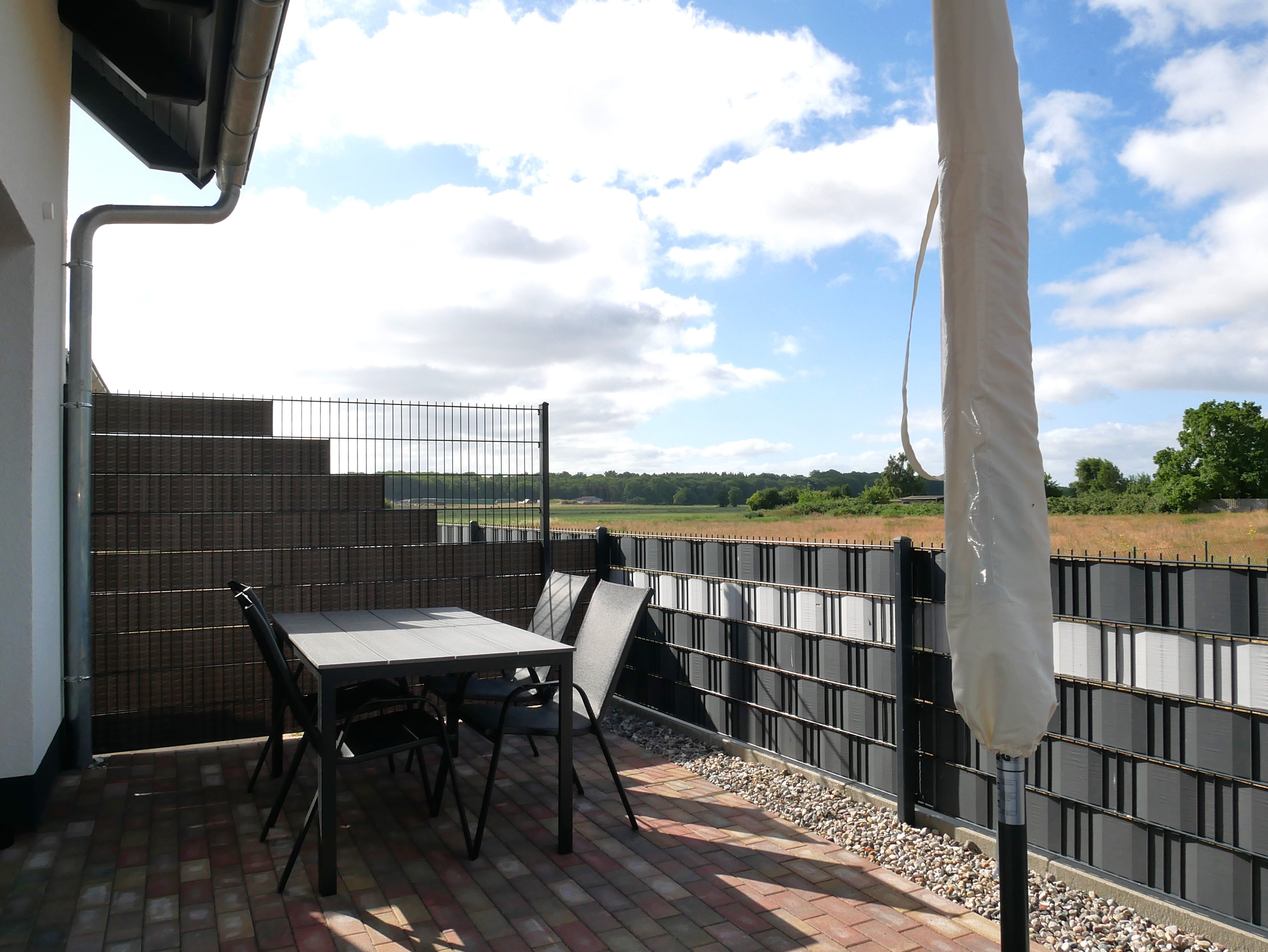 Besonderes Highlight ist die voll eingezäunte Terrasse, die mit Gartenmöbeln und einem Sonnenschirm ausgestattet ist perfekt für entspannte Stunden an der frischen Luft.
