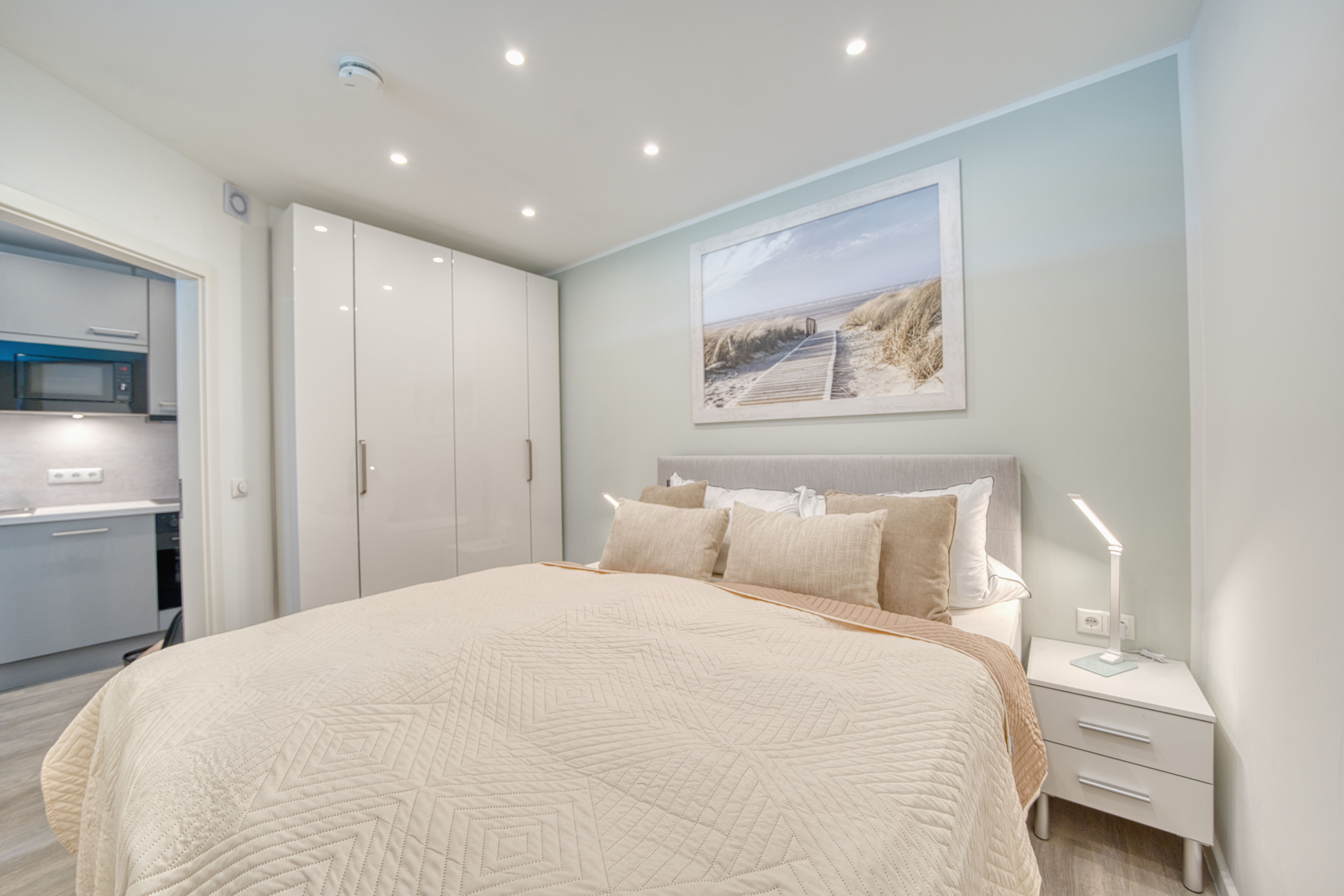 Schlafzimmer mit gemütlichem Doppelbett (160x200?cm)