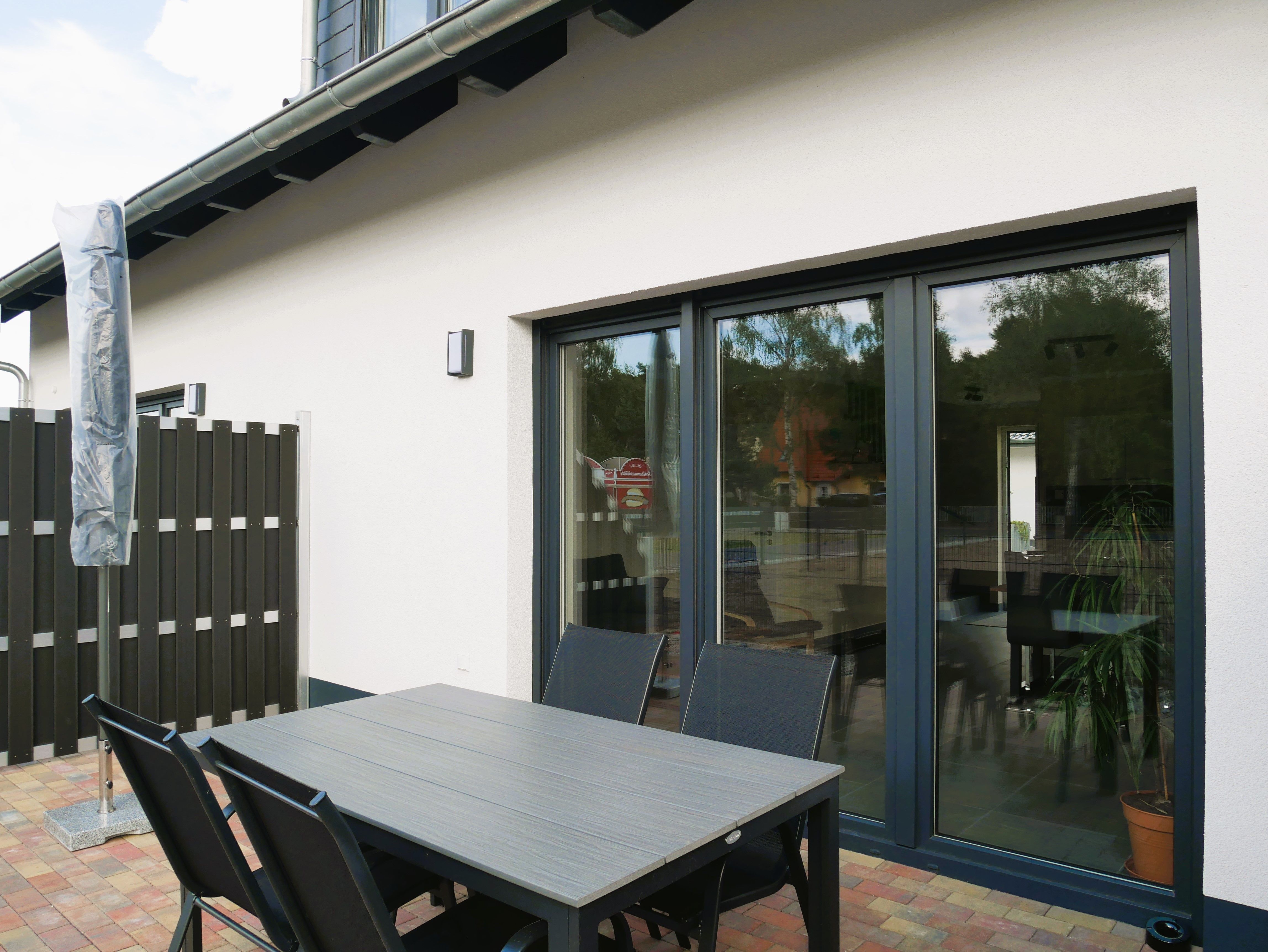 Besonderes Highlight ist die voll eingezäunte Terrasse, die mit Gartenmöbeln und einem Sonnenschirm ausgestattet ist perfekt für entspannte Stunden an der frischen Luft.