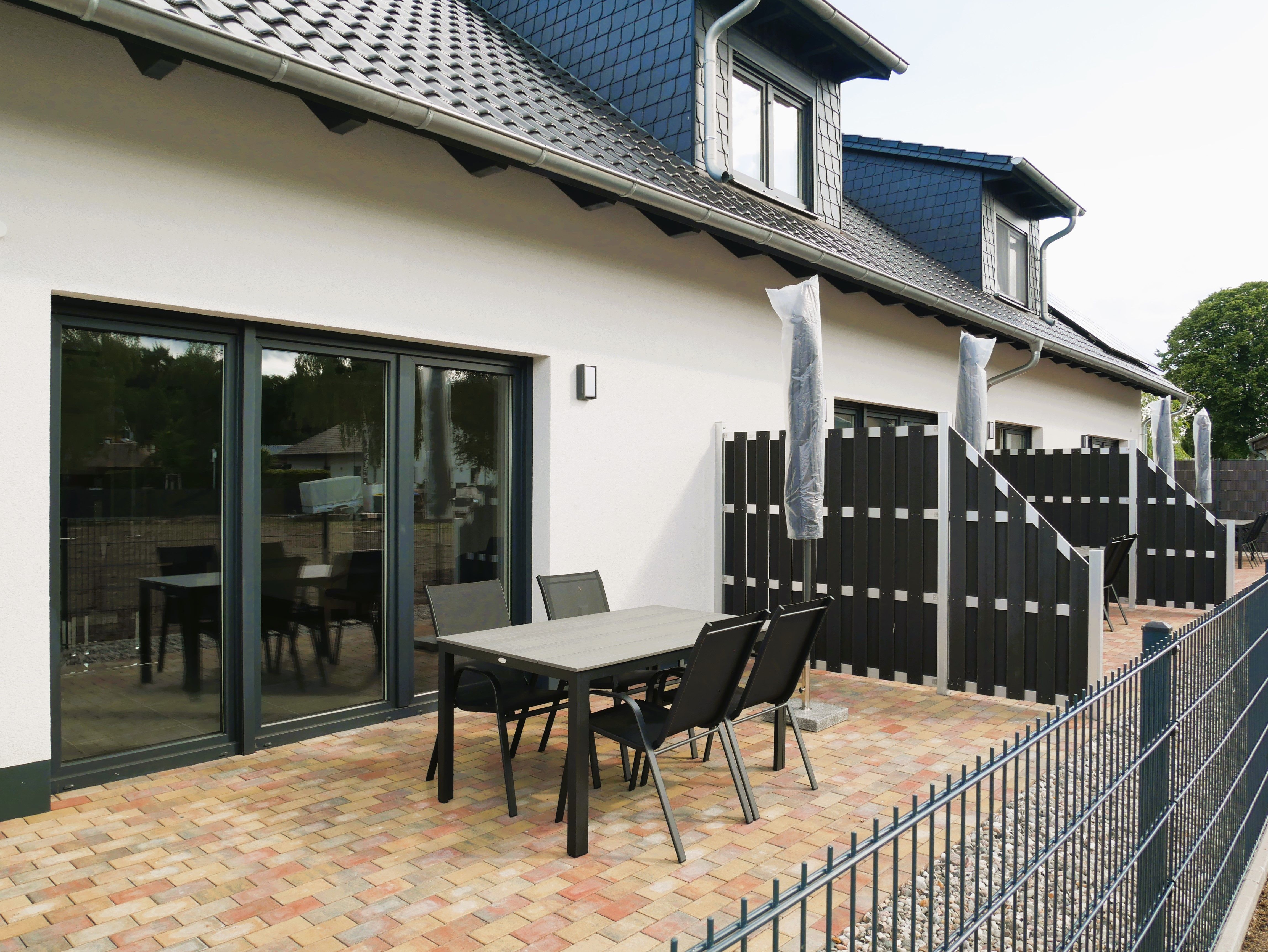 Besonderes Highlight ist die voll eingezäunte Terrasse, die mit Gartenmöbeln und einem Sonnenschirm ausgestattet ist perfekt für entspannte Stunden an der frischen Luft.