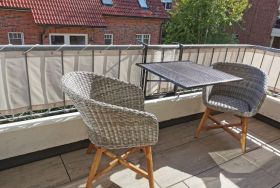 Auf einem Balkon können Sie den Urlaubstag ausklingen lassen. Sie erreichen den Strand und die Seebrücke in wenigen Gehminuten. Zum Appartement gehört ein Balkon und ein für Sie reservierter Parkplatz.