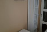 Schlafzimmer mit Doppelbett, moderne Kleideraufhängung, Regal, bezogene Betten bei Anreise.
