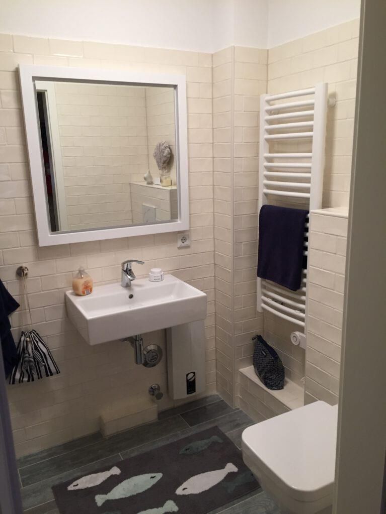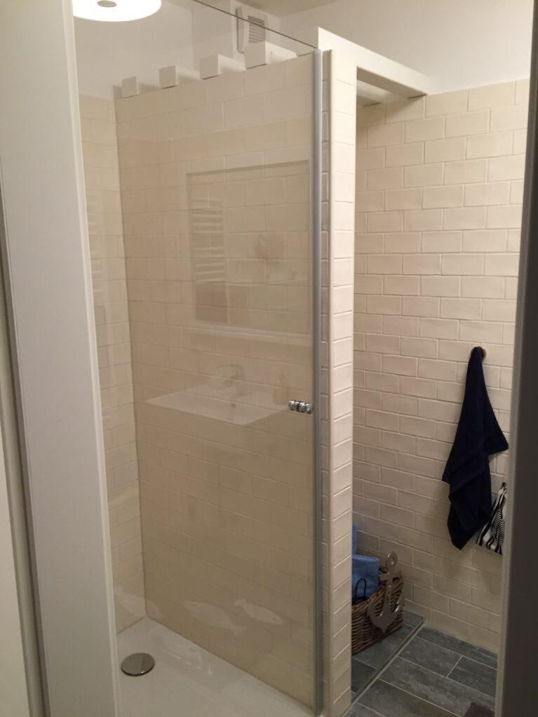 Duschbad mit ebenerdiger Dusche, Handtucherwärmung.