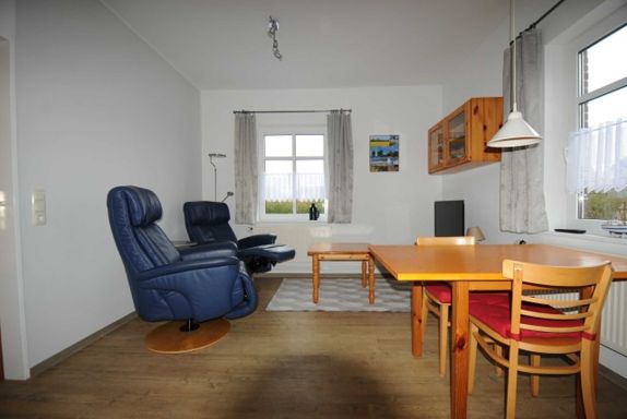 Helle, gepflegte Erdgeschosswohnung, ca. 35 qm für 2 Personen. Wohnzimmer mit Sat- TV, integrierte Küchenzeile. Ein Schlafzimmer mit Doppelbett (Kinderbett zustellbar), Bad mit Dusche. Mit Gartenbenutzung, Sitzecke mit Gartenmöbeln und Strandkorb. Haustiere auf Anfrage.