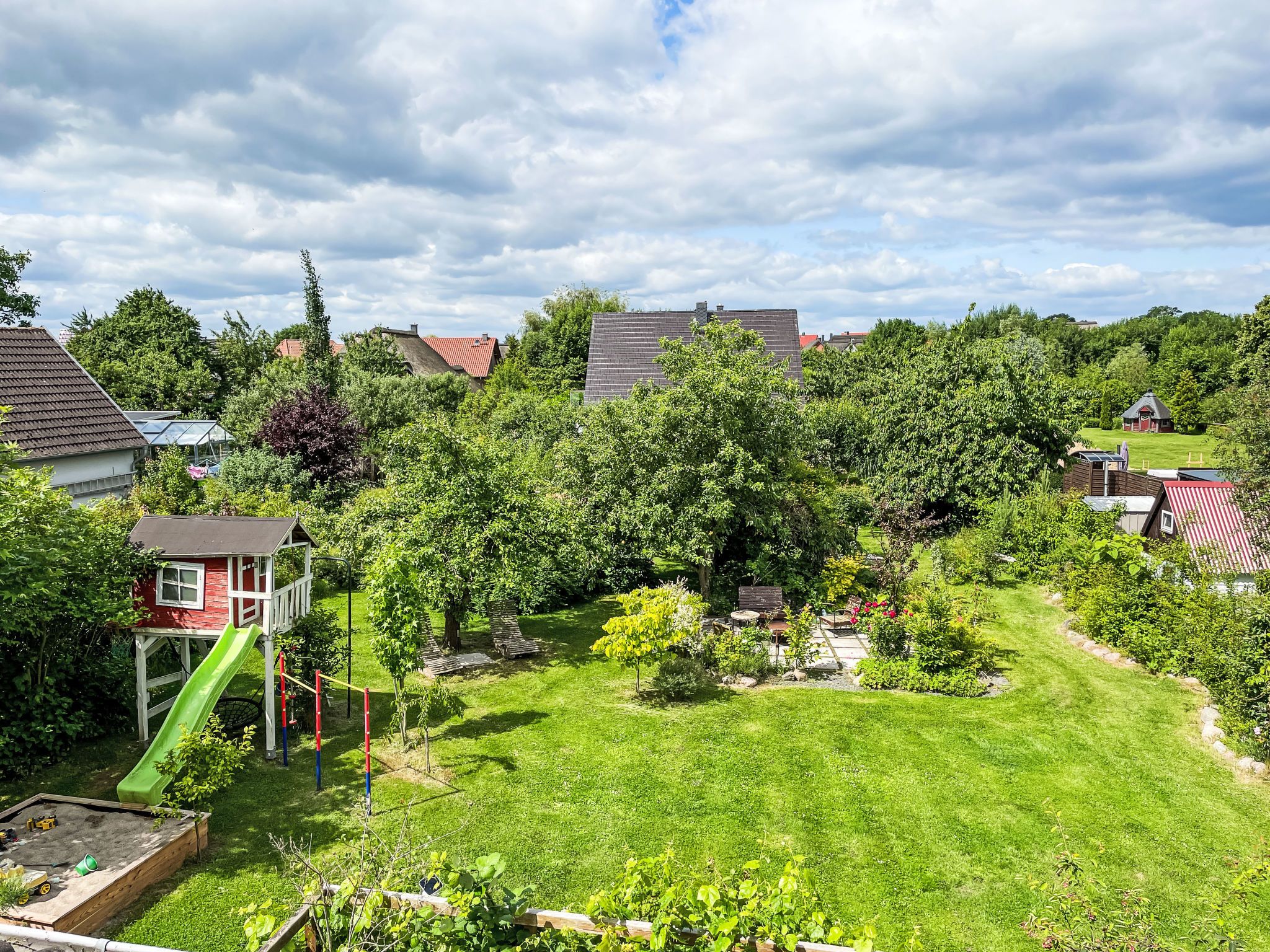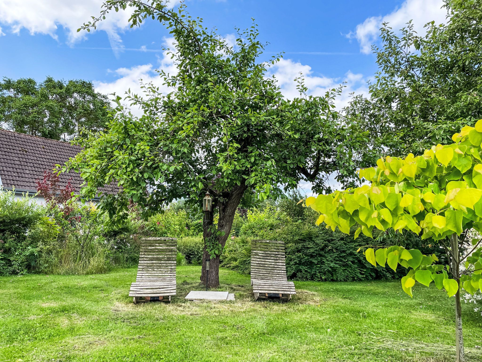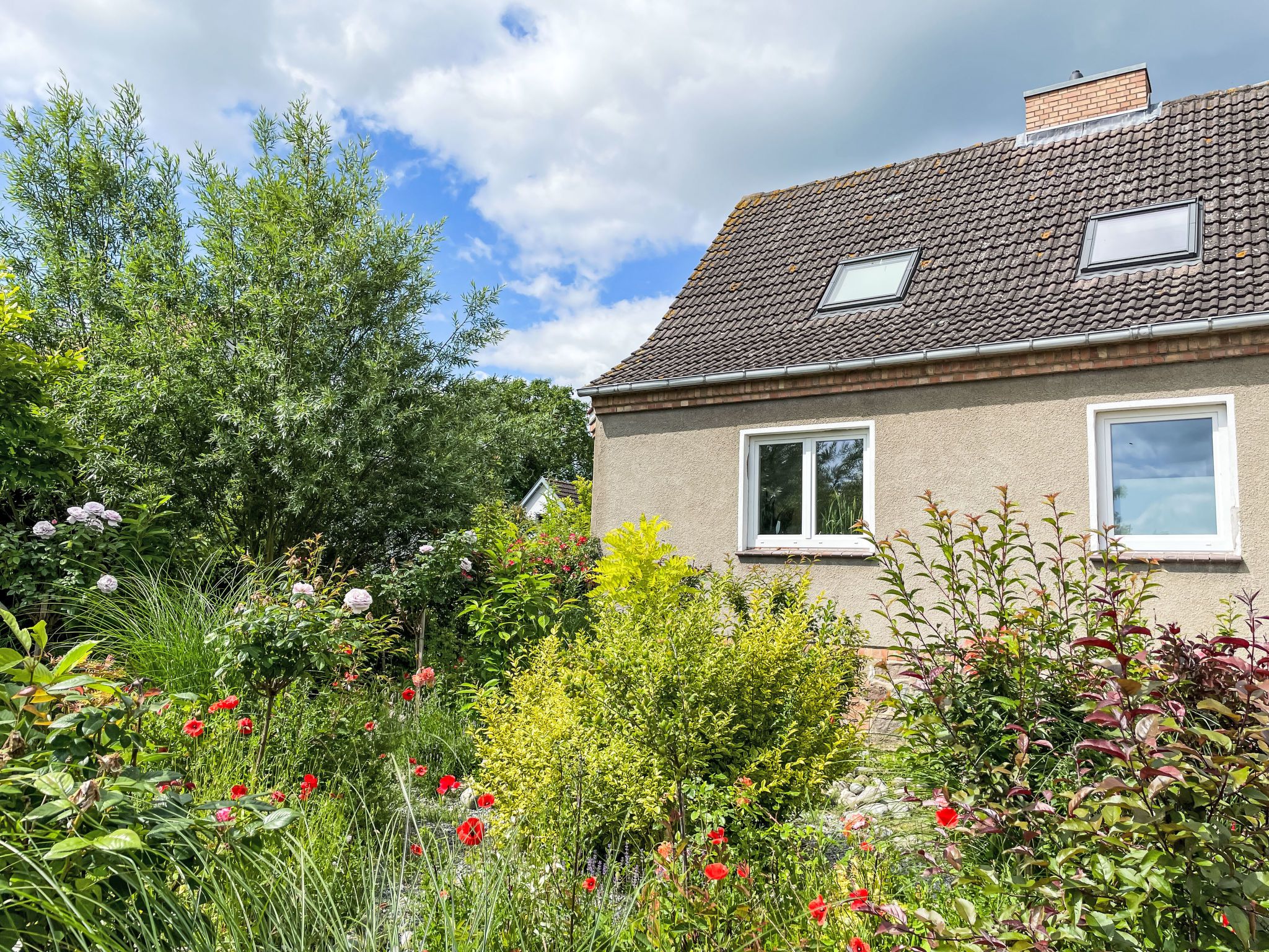 4-Zimmer-Haus 114 m2 auf 2 Stockwerken. Geräumig und hell, modern und gemütlich eingerichtet: Wohnzimmer mit Digital-TV und Radio. Offene Küche (Backofen, Geschirrspüler, 4 Induktionskochplatten, Toaster, Wasserkocher, elektrische Kaffeemaschine) mit Esstisch. Ausgang zum Garten, zur Terrasse. Dusche/WC. Heizung. Obergeschoss: 1 abgeschrägtes Zimmer mit 1 Doppelbett (180 cm, Länge 200 cm). 2 abgeschrägte Zimmer, jedes Zimmer mit 1 Ausziehbett (2 Pers. 2 x 80 cm, Länge 200 cm). Holzdielenboden. Grosse Terrasse. Terrassenmöbel. Schöne Sicht auf den Garten. Zur Verfügung: Waschmaschine, Wäschetrockner, Bügeleisen. Internet (WLAN, gratis). Parkplatz (1 Auto) beim Haus. Bitte beachten: geeignet für Familien. Nichtraucher-Haus. Maximal 2 Haustiere/Hunde erlaubt. Rauchmelder. Im Wohnzimmer gibt es einen hellen Erker als Leseecke. BORA Kochfeld in der Küche und Quooker Wasserhahn.