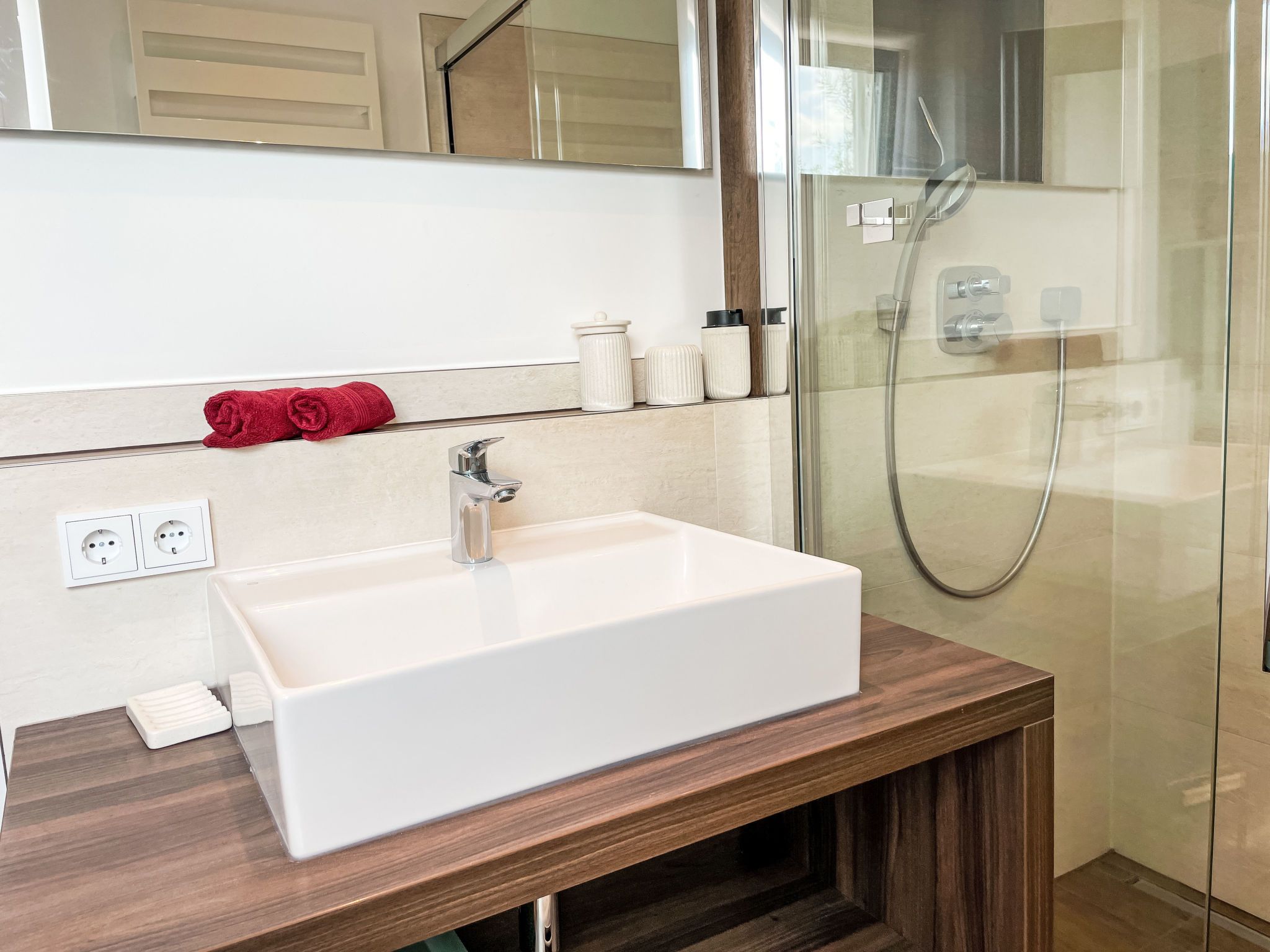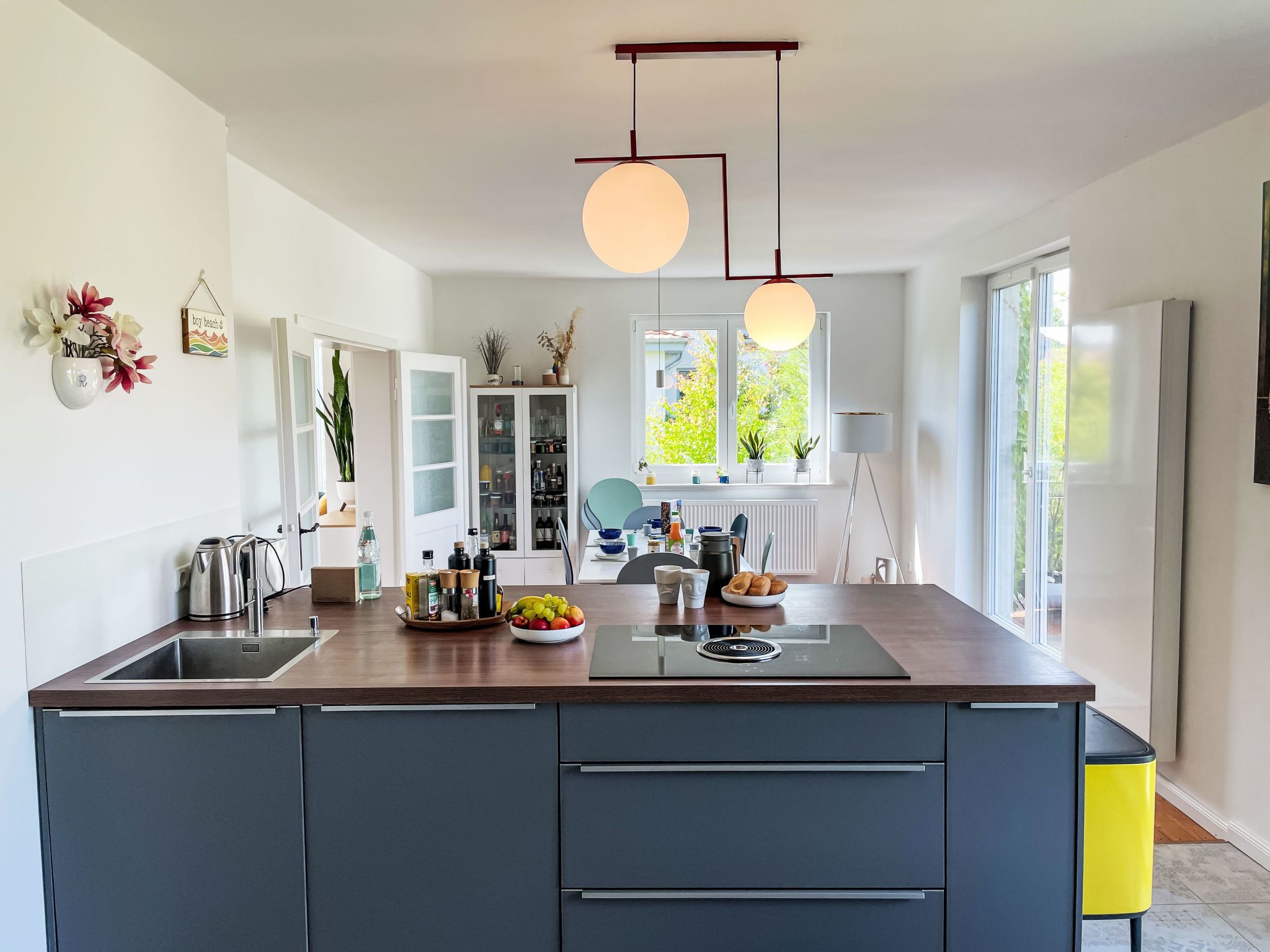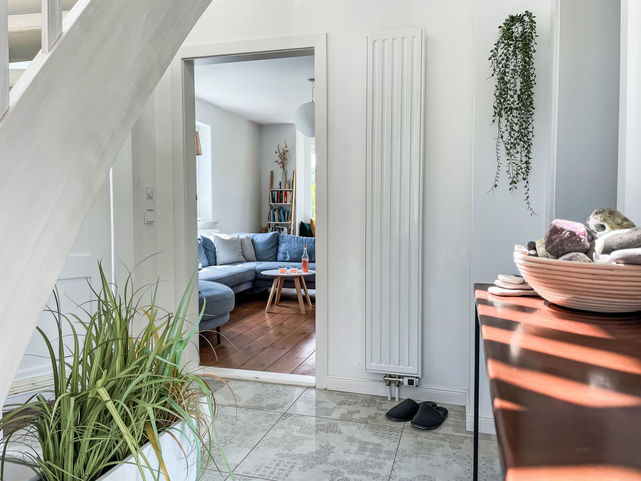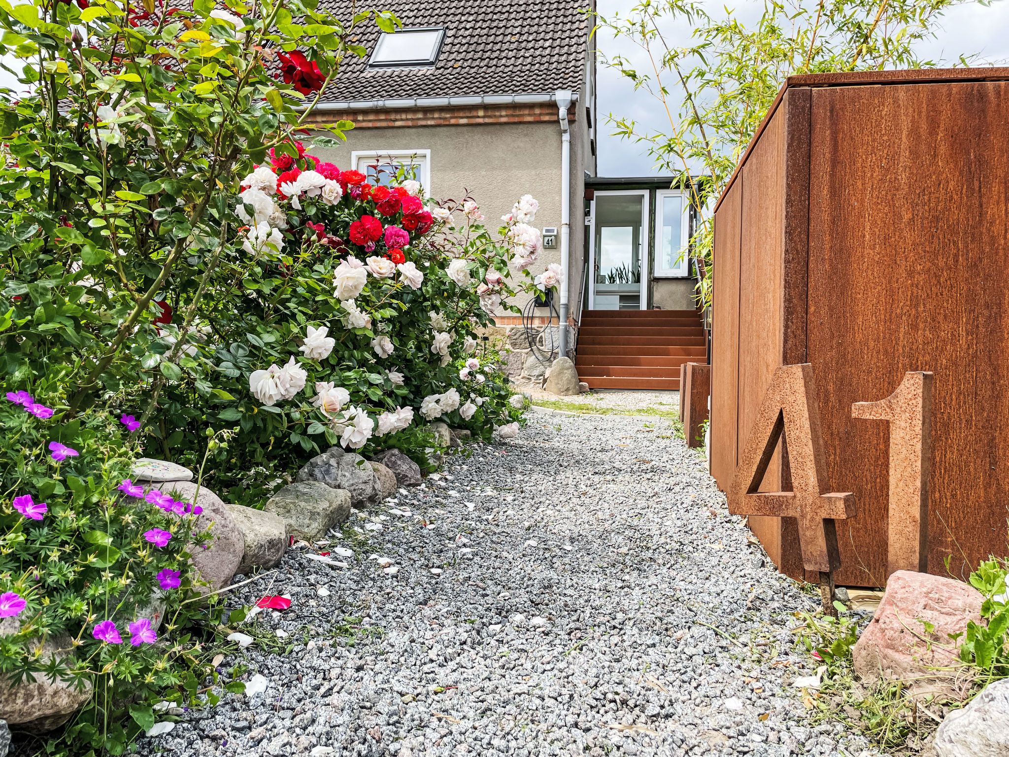 4-Zimmer-Haus 114 m2 auf 2 Stockwerken. Geräumig und hell, modern und gemütlich eingerichtet: Wohnzimmer mit Digital-TV und Radio. Offene Küche (Backofen, Geschirrspüler, 4 Induktionskochplatten, Toaster, Wasserkocher, elektrische Kaffeemaschine) mit Esstisch. Ausgang zum Garten, zur Terrasse. Dusche/WC. Heizung. Obergeschoss: 1 abgeschrägtes Zimmer mit 1 Doppelbett (180 cm, Länge 200 cm). 2 abgeschrägte Zimmer, jedes Zimmer mit 1 Ausziehbett (2 Pers. 2 x 80 cm, Länge 200 cm). Holzdielenboden. Grosse Terrasse. Terrassenmöbel. Schöne Sicht auf den Garten. Zur Verfügung: Waschmaschine, Wäschetrockner, Bügeleisen. Internet (WLAN, gratis). Parkplatz (1 Auto) beim Haus. Bitte beachten: geeignet für Familien. Nichtraucher-Haus. Maximal 2 Haustiere/Hunde erlaubt. Rauchmelder. Im Wohnzimmer gibt es einen hellen Erker als Leseecke. BORA Kochfeld in der Küche und Quooker Wasserhahn.