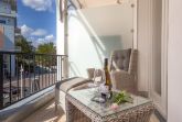 Die Ferienwohnung [at] HOME verspricht viel. Es lädt durch seine überdachte Loggia, bequemen Gartenmöbel und einem traumhaften seitlichen Meerblick zum Verweilen ein. Das 90 qm große Appartement überzeugt durch den offenen Wohnbereich und eine hochwertige Einbauküche. Das Schlafzimmer lädt mit seinem 180x200 cm großen Boxspringbett zum Träumen ein. Hier besteht die Möglichkeit einer Aufbettung zur dritten Person durch ein separates Boxbett (90x200 cm). Selbstverständlich lässt das angrenzende Badezimmer mit bodentiefer Dusche und Badewanne keine Wünsche offen.