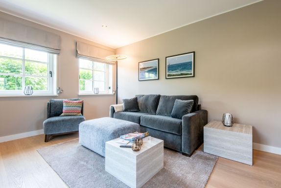 Zwei gemütliche Schlafzimmer sorgt für erholsame Nächte. Geschmackvoll eingerichtet bieten sie Ihnen einen idealen Rückzugsort zum Entspannen. Das Wohnzimmer mit Boxspring-Schlafsofa bietet zusätzlichen Schlafplatz für zwei Kinder.