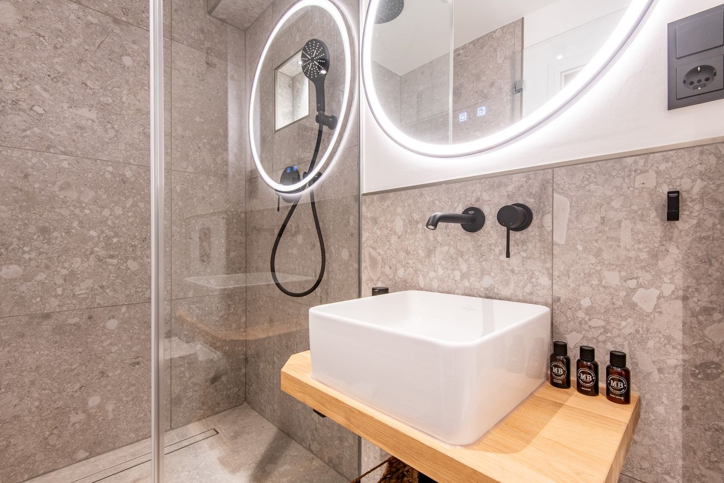 Die zwei modernen Badezimmer sind mit ebenerdigen Duschen ausgestattet. Ein zusätzliches Gäste-WC sorgt für noch mehr Komfort. Highlight ist der gemeinschaftlich nutzbare Wellnessbereich mit Sauna und Fitnessgeräten, der Ihnen pure Entspannung bietet.
