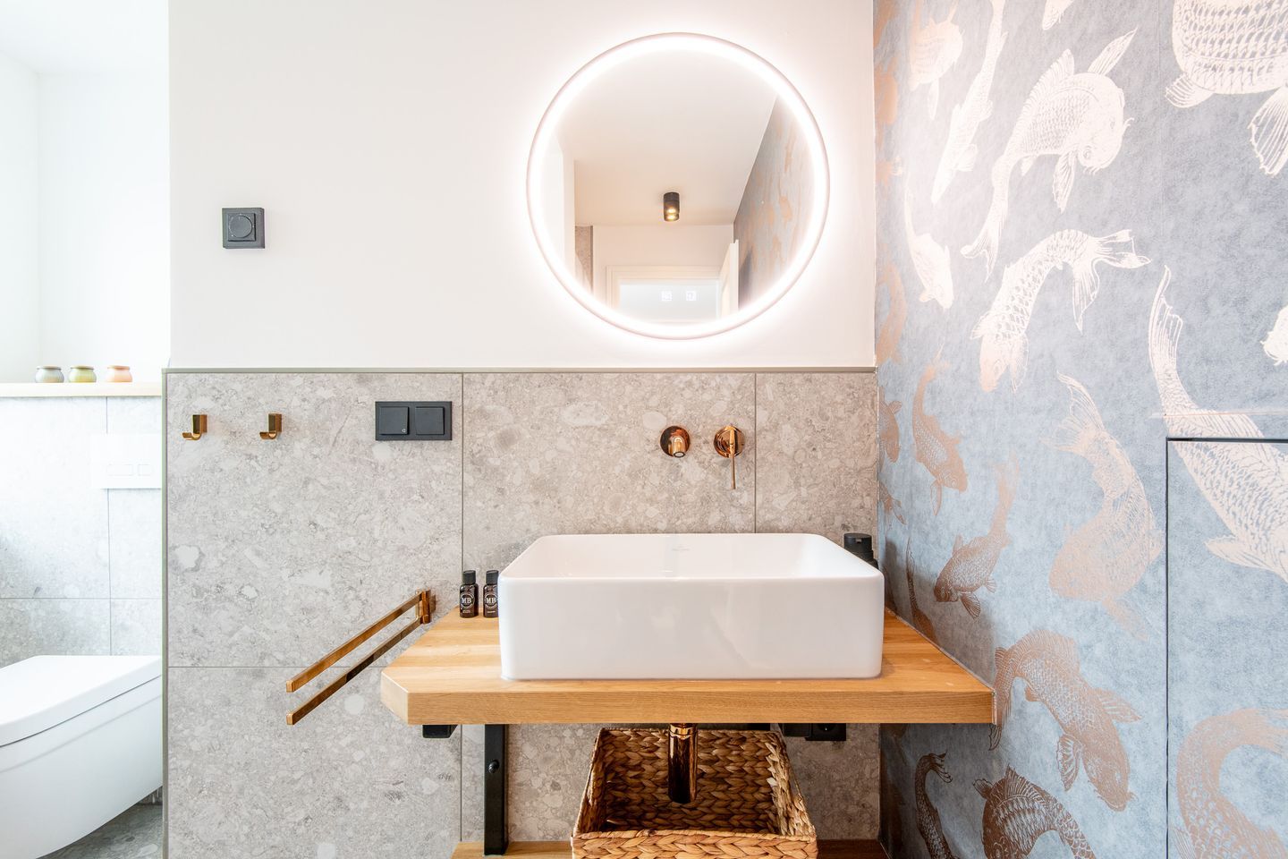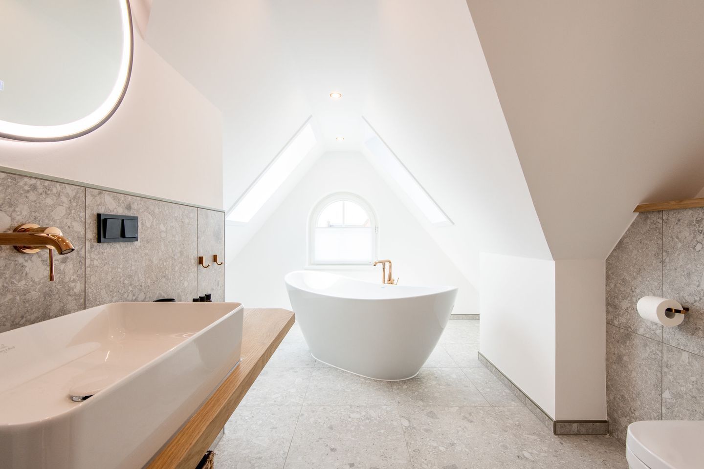 Die zwei modernen Badezimmer sind mit ebenerdigen Duschen ausgestattet. Ein zusätzliches Gäste-WC sorgt für noch mehr Komfort. Highlight ist der gemeinschaftlich nutzbare Wellnessbereich mit Sauna und Fitnessgeräten, der Ihnen pure Entspannung bietet.