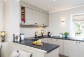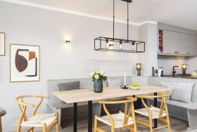 Das ganze Quartier ist in modernen Naturtönen gehalten mit Holzfußboden und sehr schönen Tischlereinbauten ausgestattet.