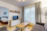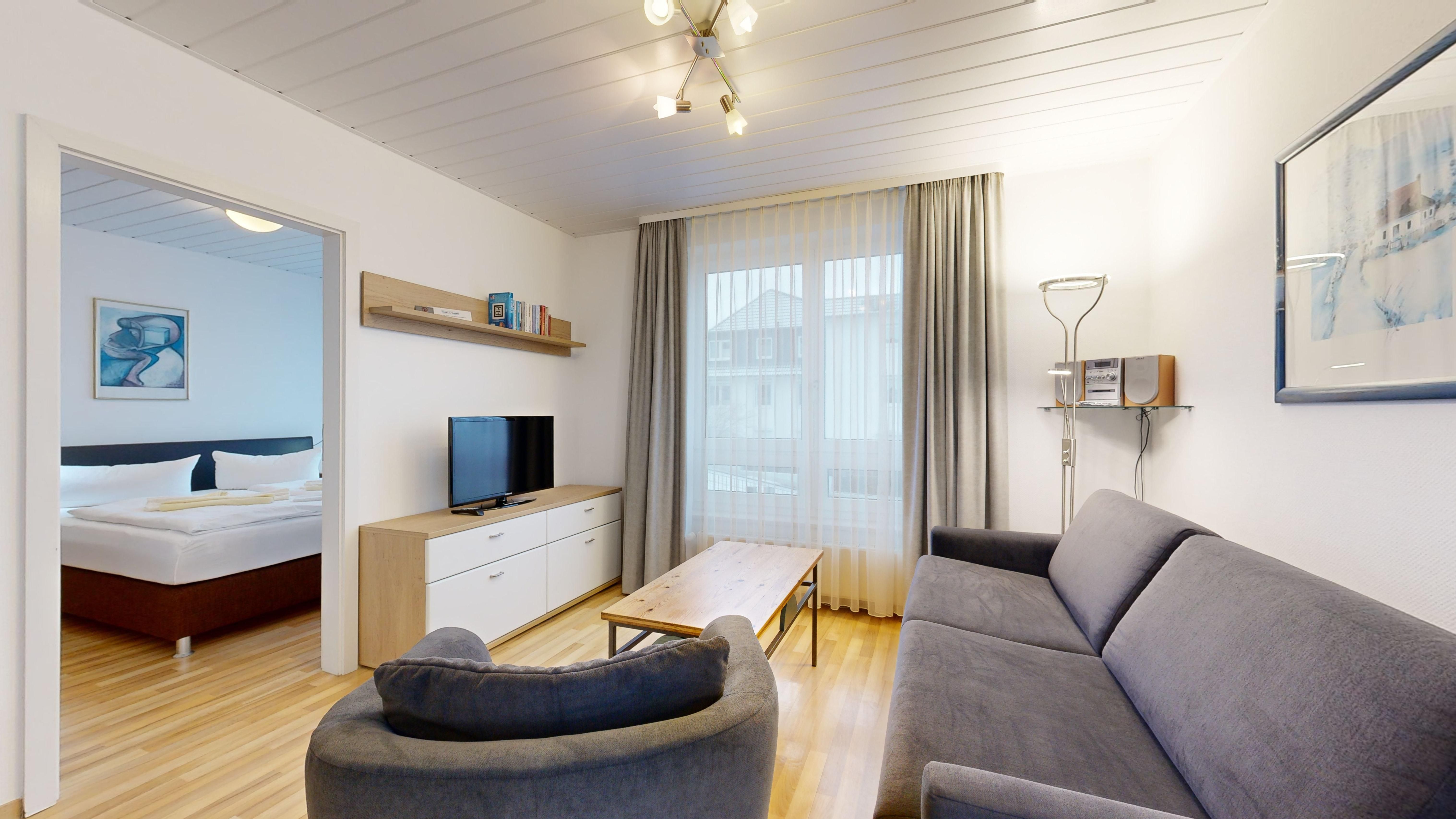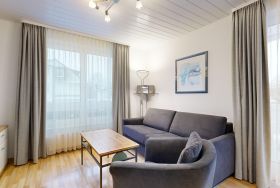 Ferienwohnung Binzer Sterne 02 für bis zu 4 Personen im Erdgeschoss (2 Zimmer / 45 m²) des Appartementhauses Binzer Sterne, 1 Schlafzimmer, Parkplatz (gegen Gebühr) und freies WLAN.