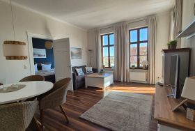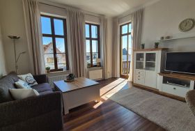 Die Ferienwohnung mit dem Namen Kaiserliches Postamt Fewo 5 bietet auf 63 m² Platz für maximal 3 Personen und befindet sich im 1. Obergeschoss des Hauses Kaiserliches Postamt in Kühlungsborn. Die Wohnung verfügt über ein gemütliches Wohnzimmer, ein Schlafzimmer und ein großes Badezimmer. Zur Ausstattung gehört ein Tiefgaragenstellplatz, ein Fahrradstellplatz, WLAN/Internet, sowie ein Balkon.