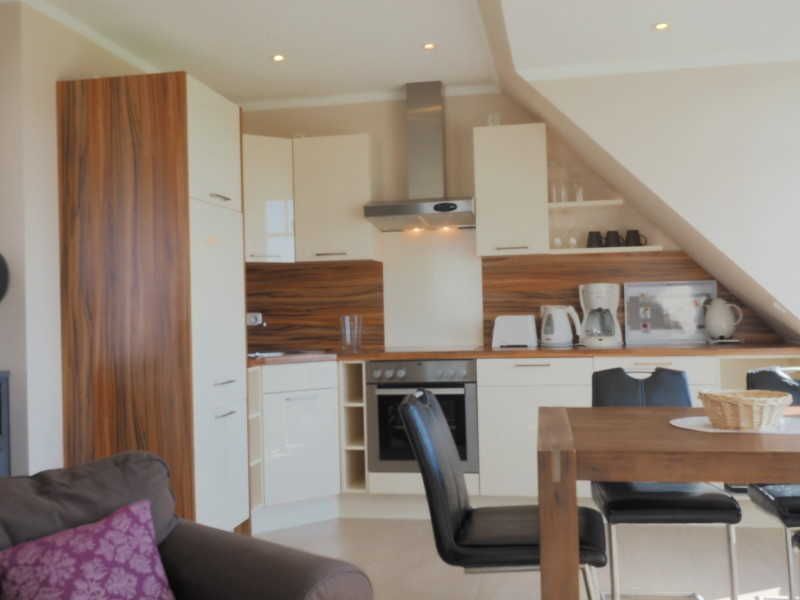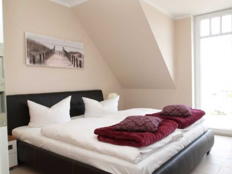 Die Ferienwohnung auf 65 Quadratmetern im Obergeschoss rechts hat einen großen Wohnbereich und zwei separate Schlafzimmer mit je einem großen Doppelbett und Kleiderschrank. Das zweite Schlafzimmer der Maisonette-Wohnung liegt in der oberen Ebene, die Sie über die innen liegende Treppe erreichen. Die Küche ist mit Geschirrspüler, Backofen, Kaffeemaschine ausgestattet. Vom Wohnbereich mit Küche und Couchecke betreten Sie den Balkon mit Gartenmöbeln. Von der Ferienwohnung bis zum Strand sind es nur 150 Meter. Für Wohlfühlatmosphäre sorgt außerdem der schöne Kaminofen, besonders in der kalten Jahreszeit oder bei gemütlichen Abenden. Das kinderfreundliche Ferienhaus liegt an einer Anliegerstraße mit sehr wenig Verkehr. Börgerende, ein romantisches Fischerdorf direkt an der Ostsee, unweit von Warnemünde liegt zwischen Heiligendamm und Nienhagen. Auch Bad Doberan mit seinem Doberaner Münster ist immer einen Ausflug wert.