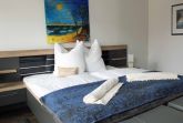Ein 20 m² großes Schlafzimmer mit Doppelbett, 180 x 200 cm und geräumigem Schrank bietet auch Platz für ein Kinderreisebett, dass optional gebucht werden kann.