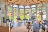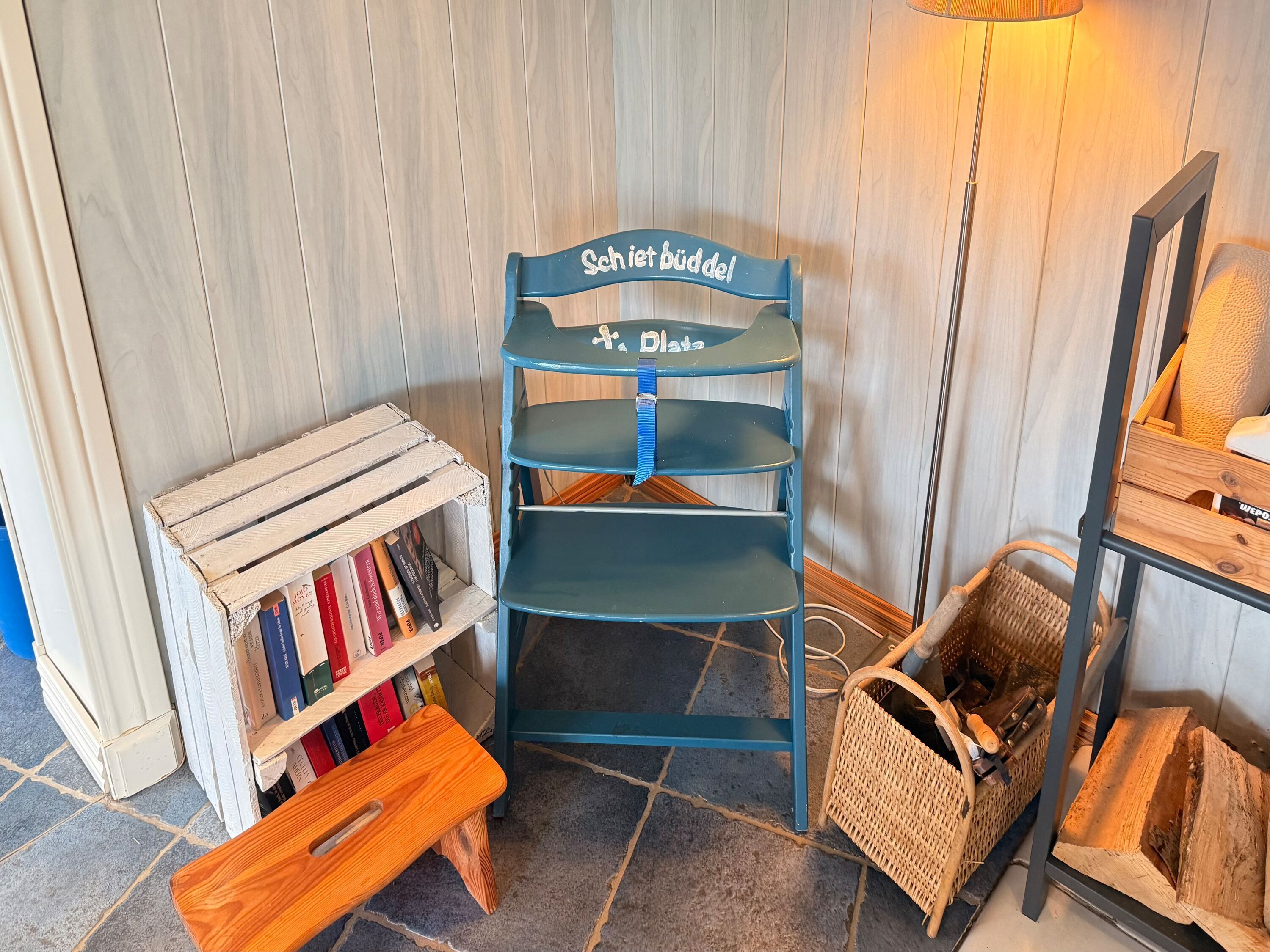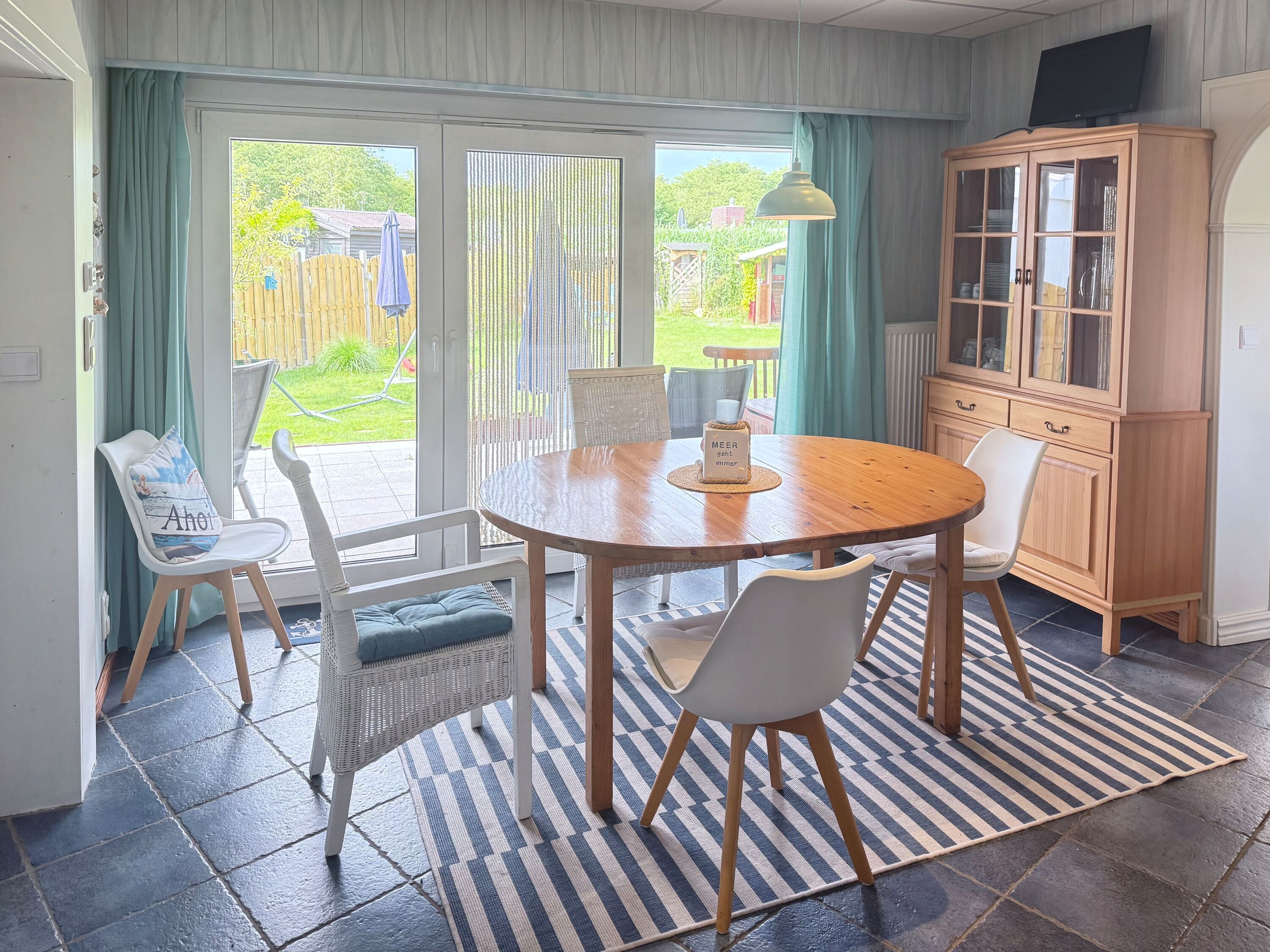 Außenbereich: Im Garten und auf der Terrasse befinden sich verschiedene Sitz- und Liegemöglichkeiten. Bitte beachten Sie: In unserer Feriensiedlung kann es bei starkem Regen zu Wasseransammlungen auf dem Rasen kommen, sodass dieser zeitweise nur eingeschränkt nutzbar ist Gummistiefel (vor allem auch für Kinder) sind daher empfehlenswert.