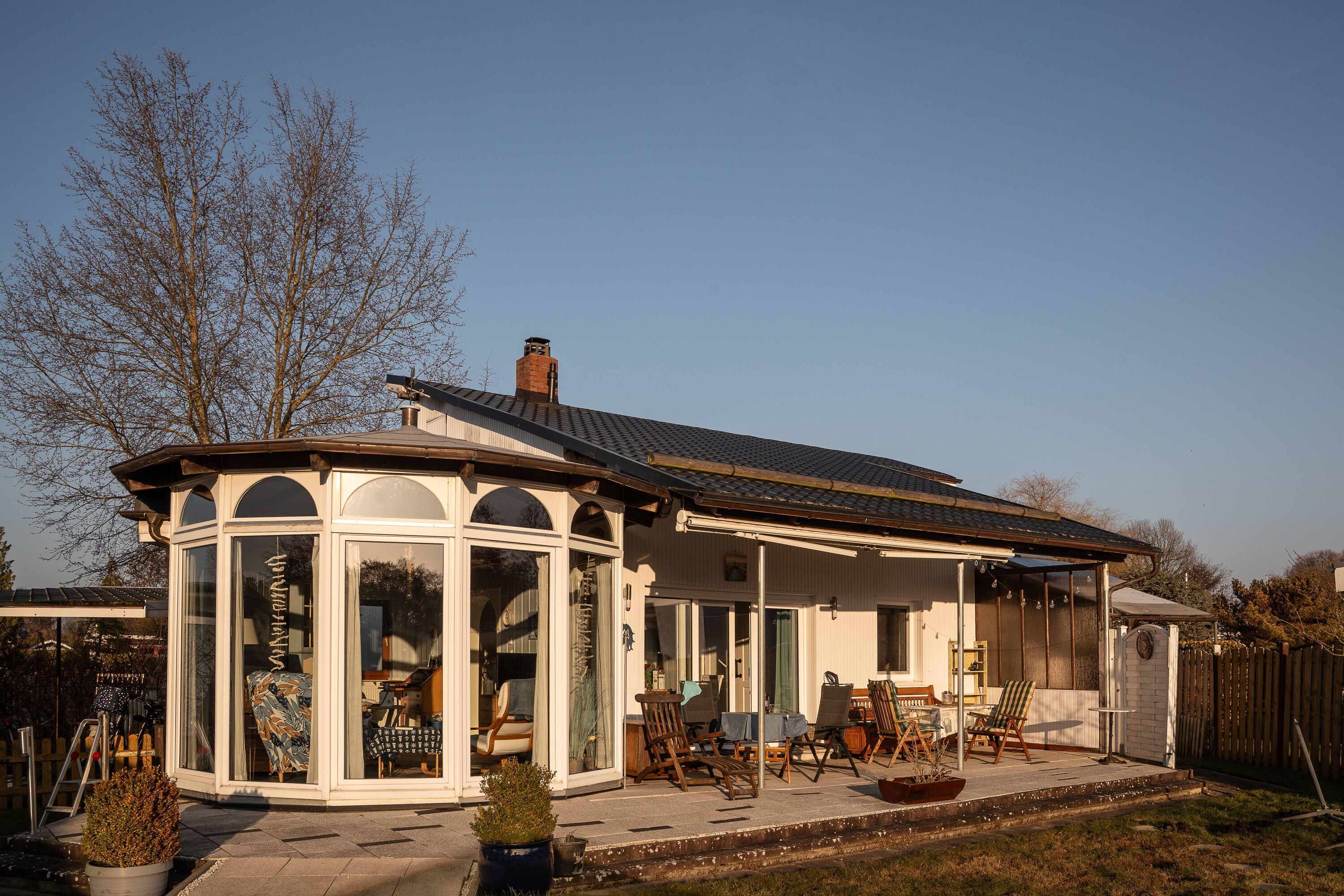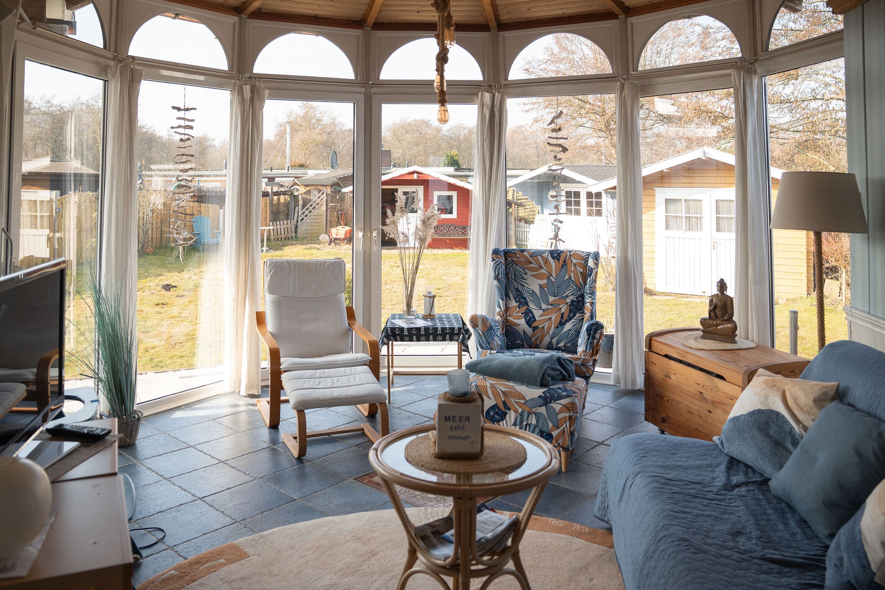 Schlafmöglichkeiten: Es stehen drei Schlafzimmer mit Betten (jeweils 140x200 cm), eines davon ist ein Durchgangszimmer, sowie ein Schlafsofa im Wintergarten zur Verfügung.
