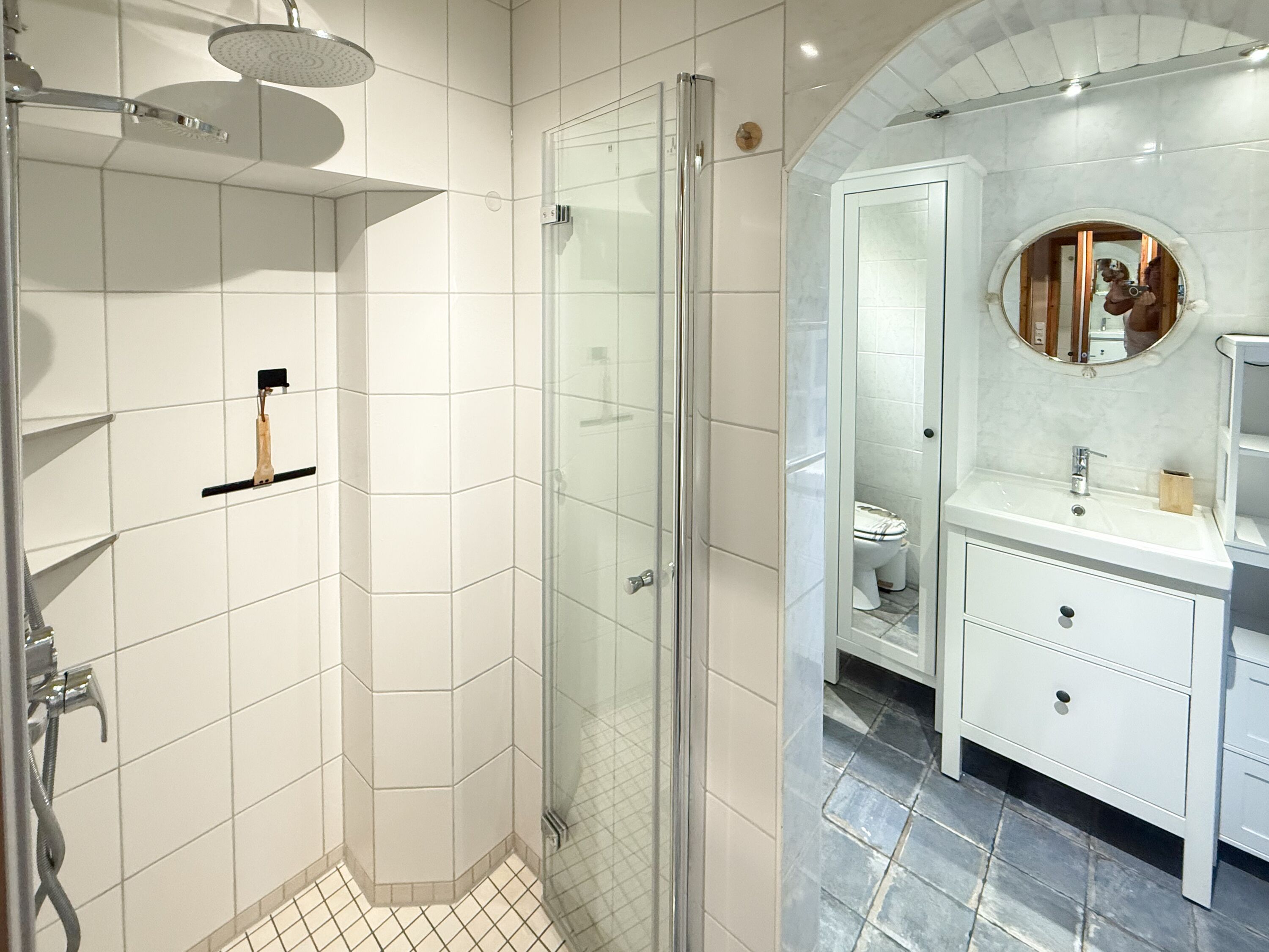 Waschmöglichkeiten: Im Hauswirtschaftsraum (hinter dem Badezimmer) befinden sich eine Waschmaschine und ein Trockner.