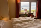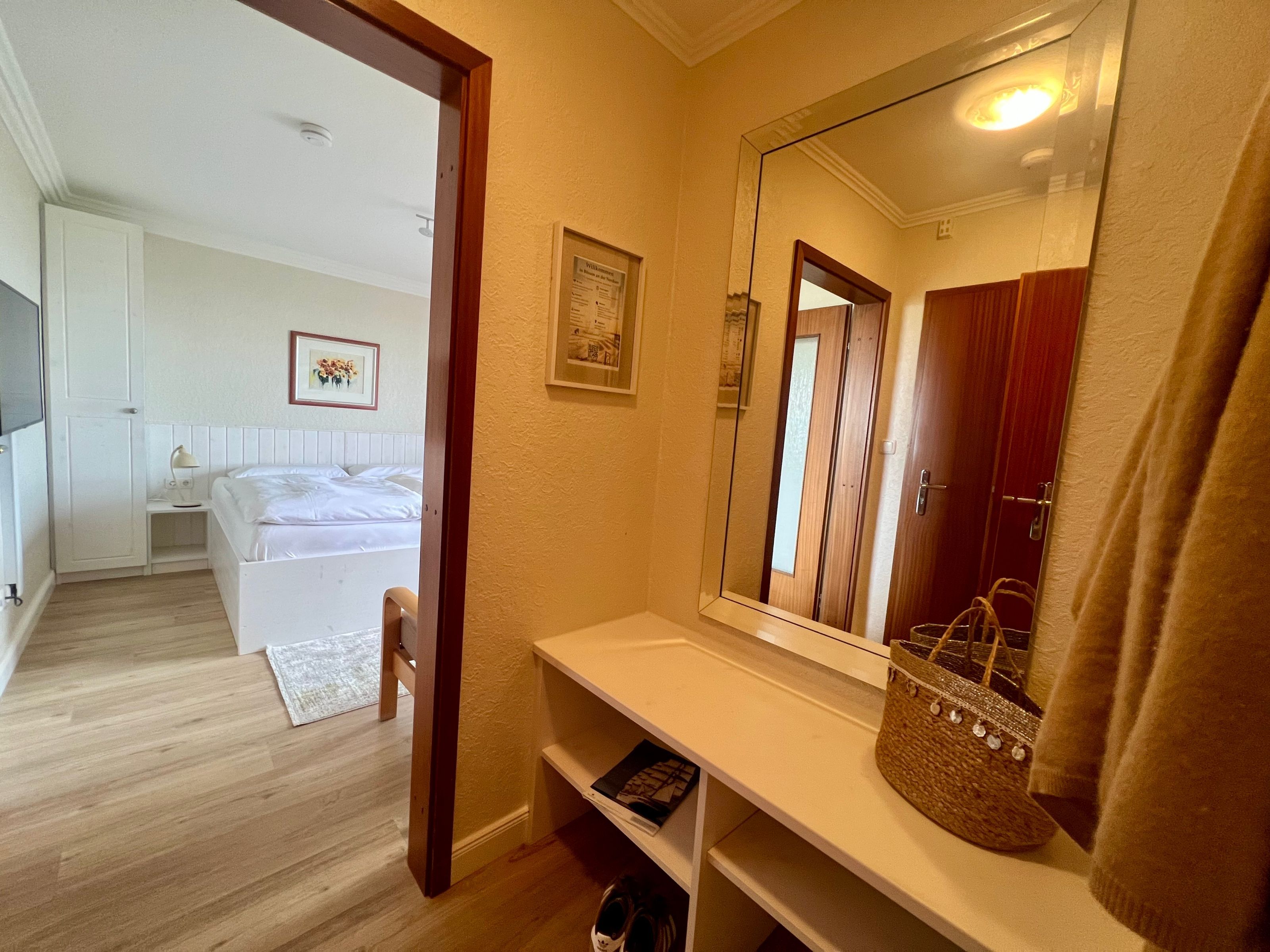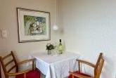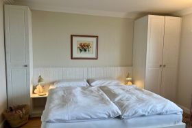 • Kombinierter Wohn-Schlafraum mit großem Doppelbett, 2 Sesseln, Esstisch mit Stühlen, SAT-TV, Stereoanlage, Balkon nach Südwesten mit Gartenmöbeln.