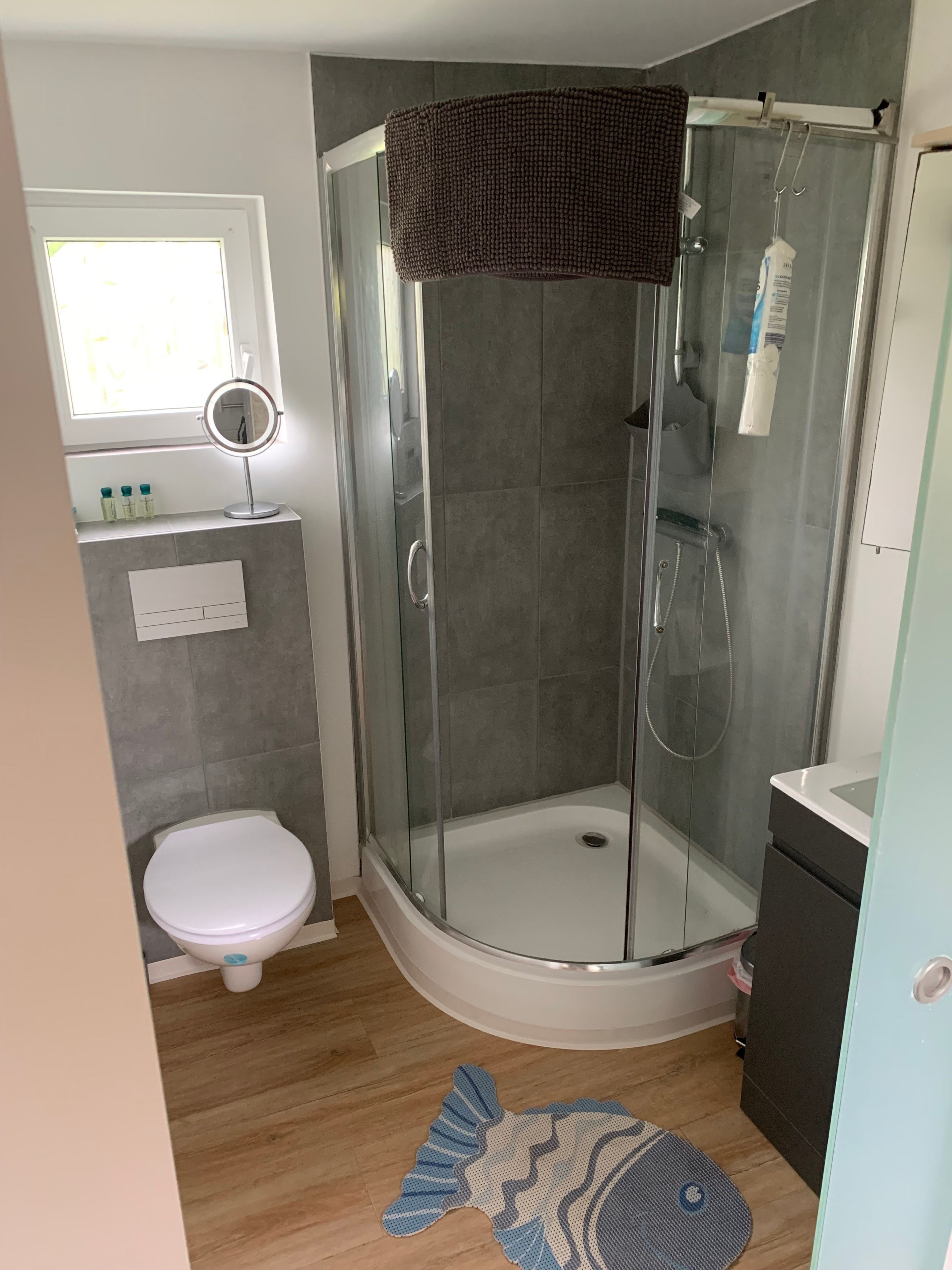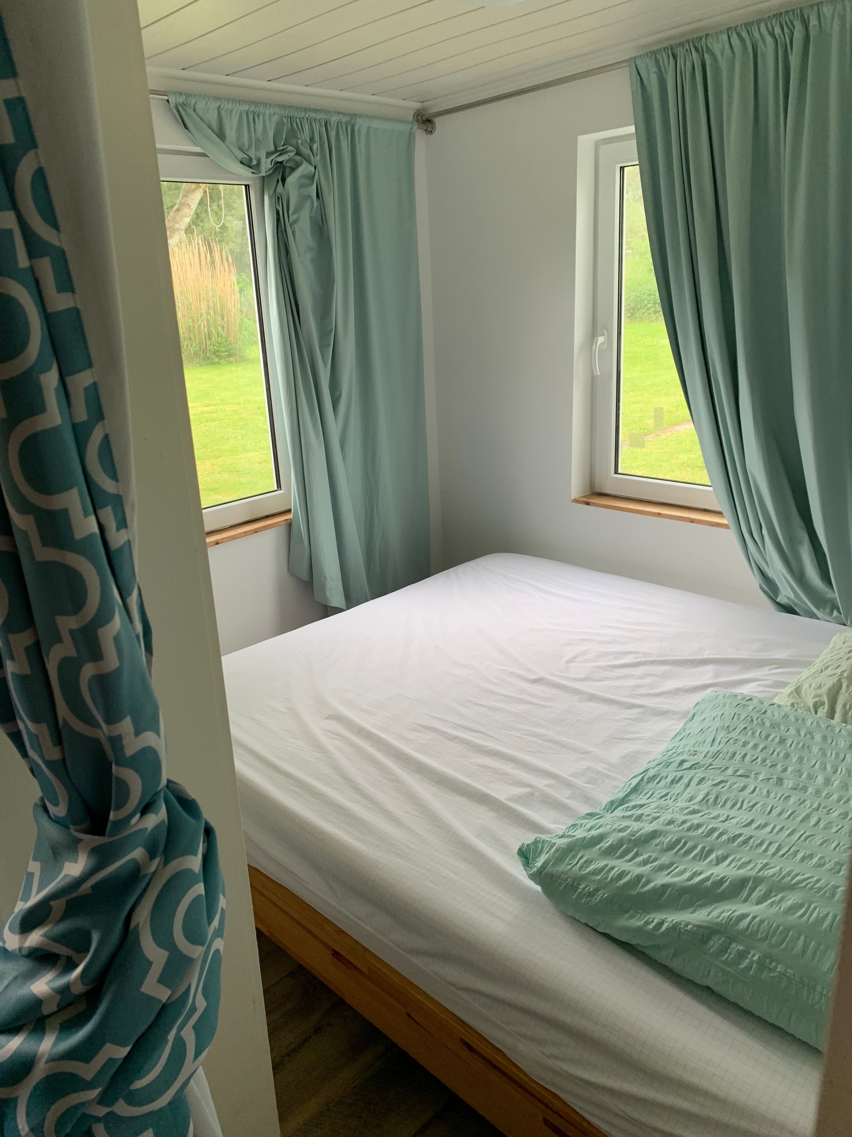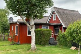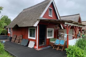 Wir vermieten hier ein kleines charmanten Ferienhaus, das direkt am Fluss Recknitz liegt. Es bietet auf etwa 45 Quadratmetern viel Platz zum Entspannen, inklusive eines großen Grundstücks. Im Erdgeschoss gibt es ein gemütliches Wohnzimmer mit einer großen Schlafcouch, eine Küche, ein Bad mit Dusche und ein kleines Schlafzimmer mit Doppelbett. Im Obergeschoss, das über eine kleine Wendeltreppe erreichbar ist, befindet sich ein großer Schlafraum mit zwei Einzelbetten. Das Haus ist mit einer Elektroheizung und einer mobilen Klimaanlage ausgestattet, sodass es immer angenehm temperiert ist.